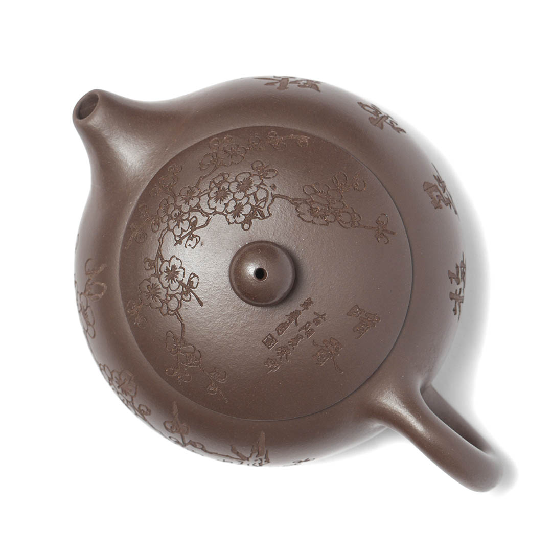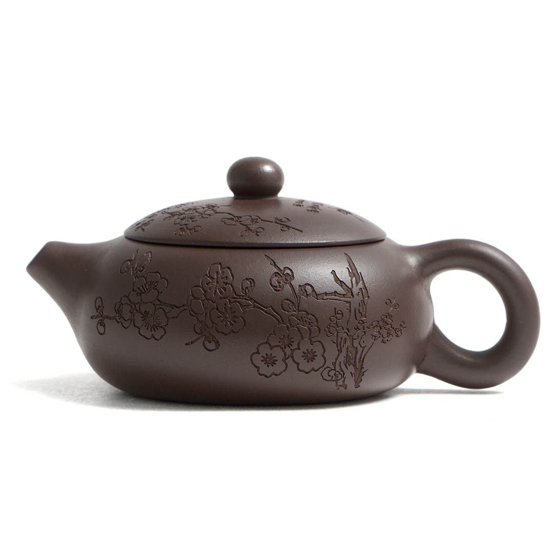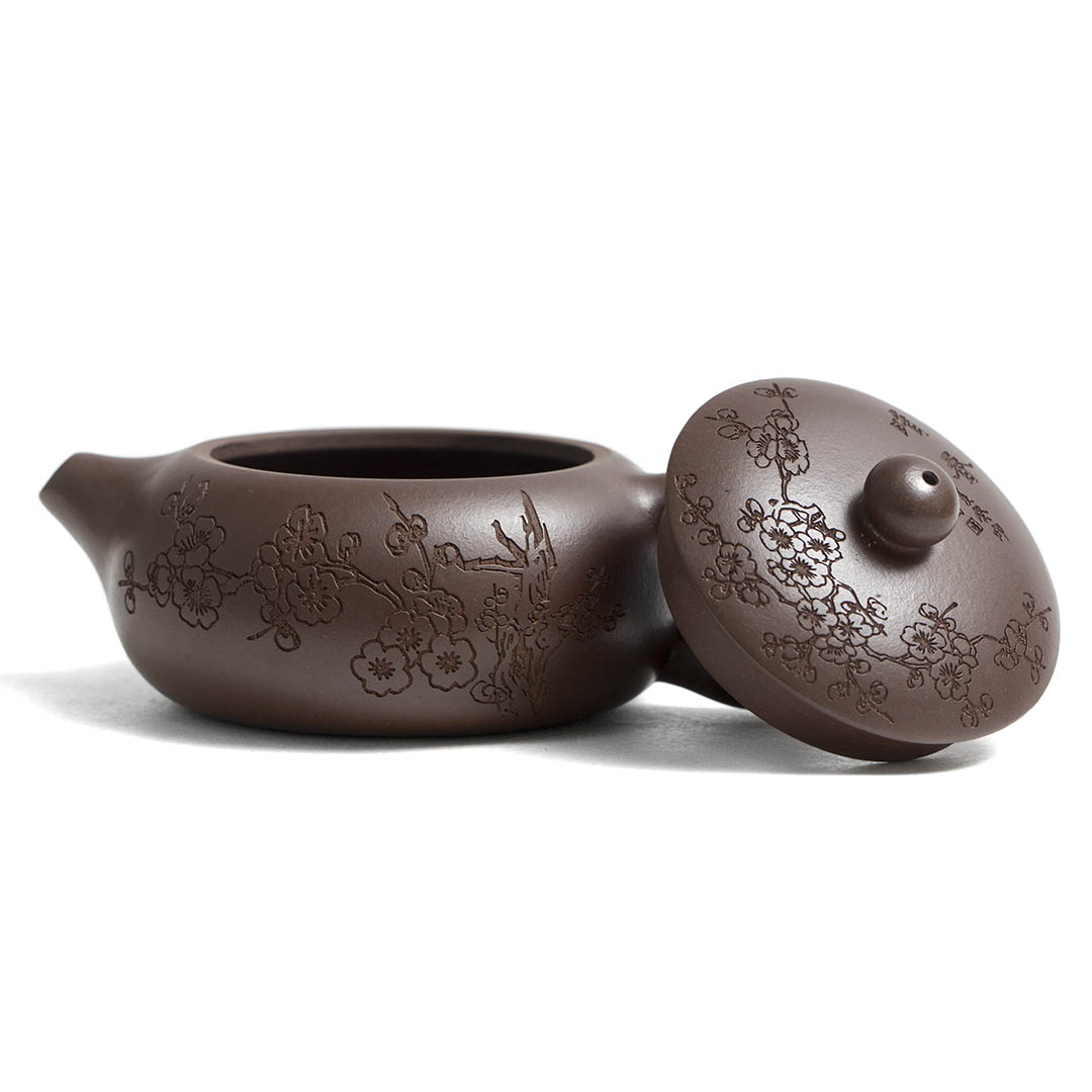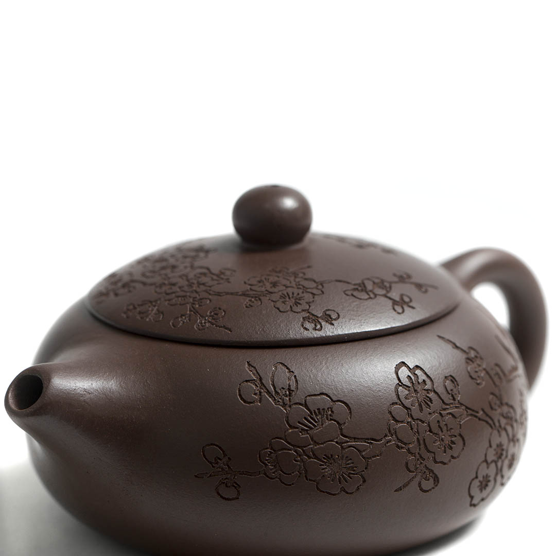 Тело чайника украшено резным изображением Цветущей Сливы, которая символизирует жизнелюбие, выносливость, возрождение жизни. Является одним из четырех благородных растений Китая.