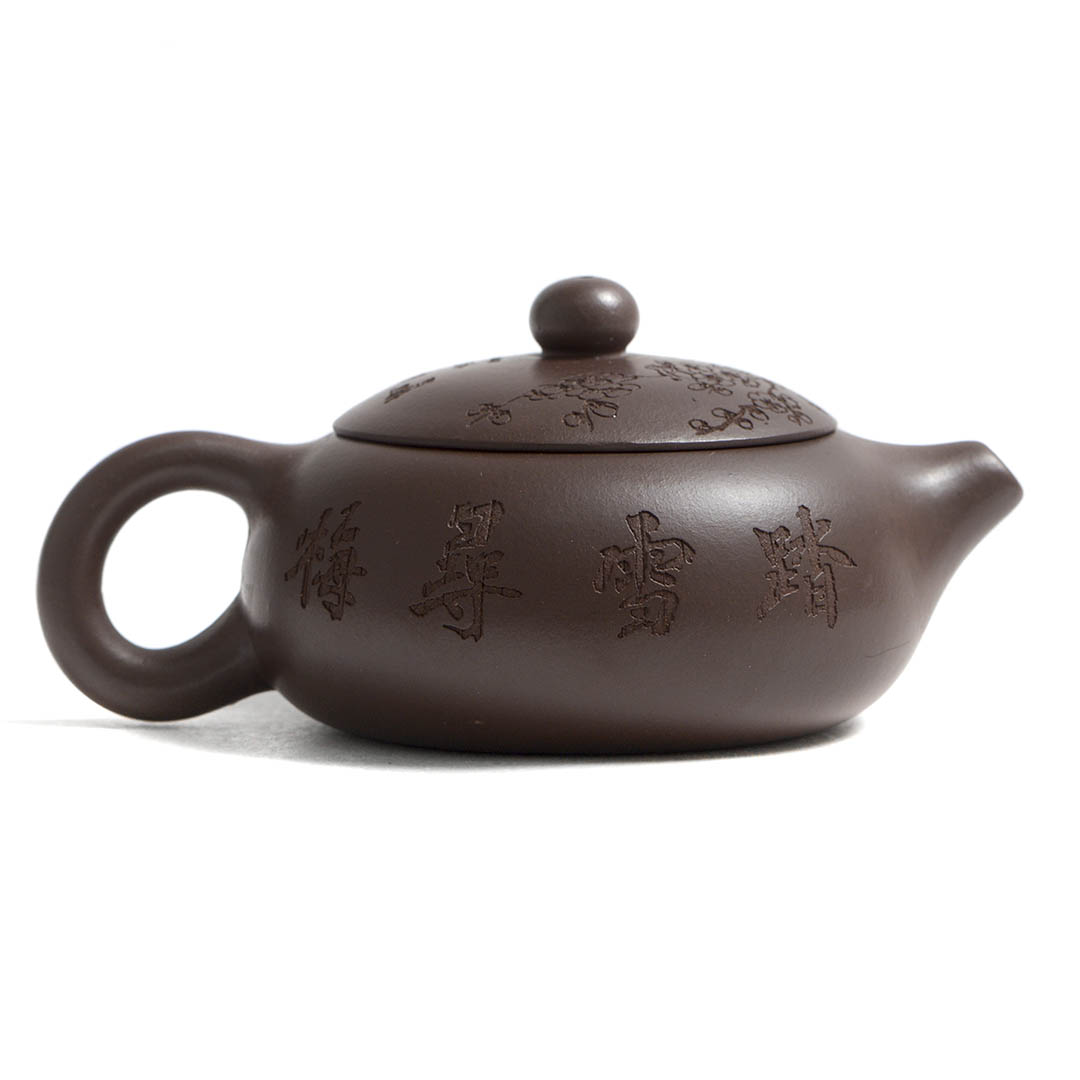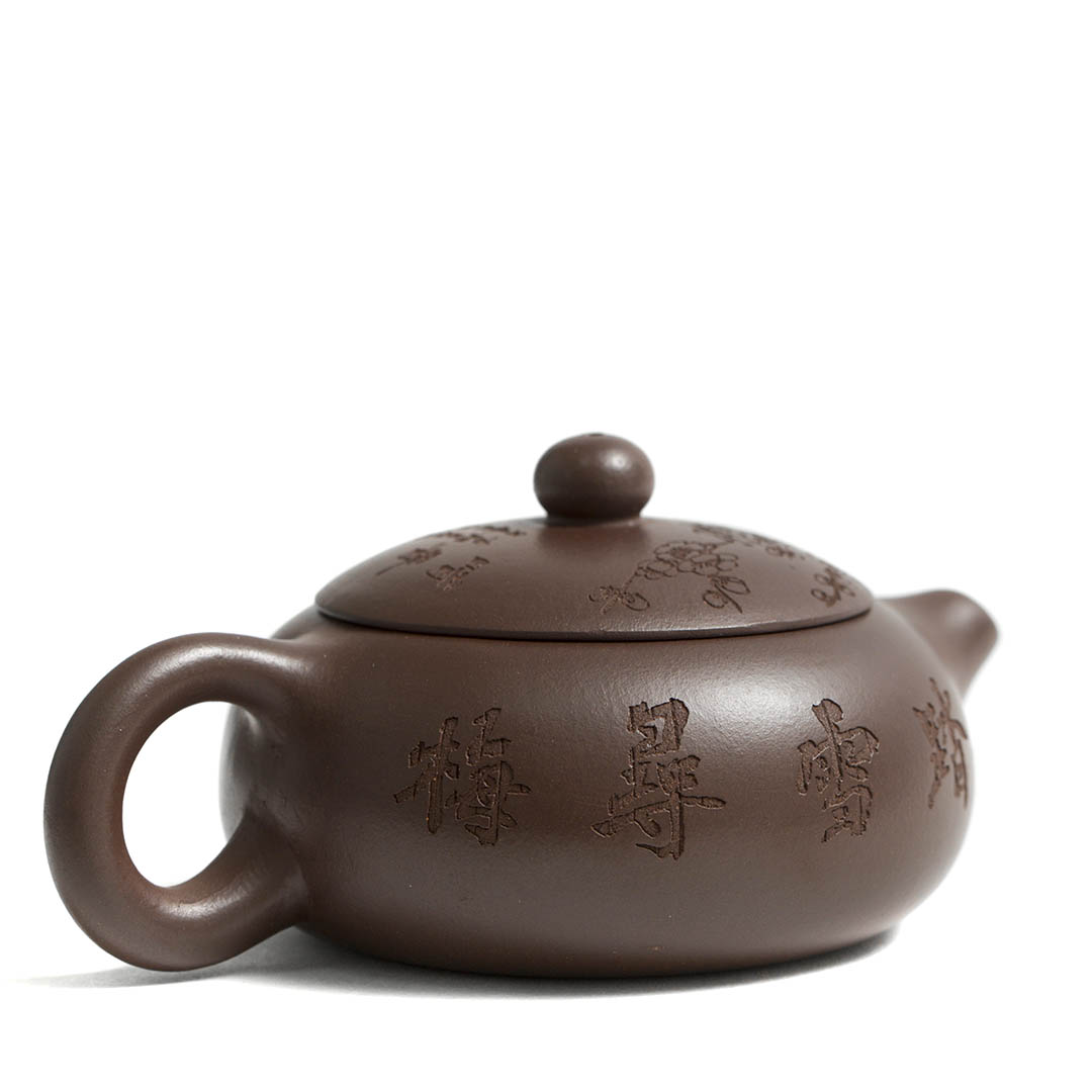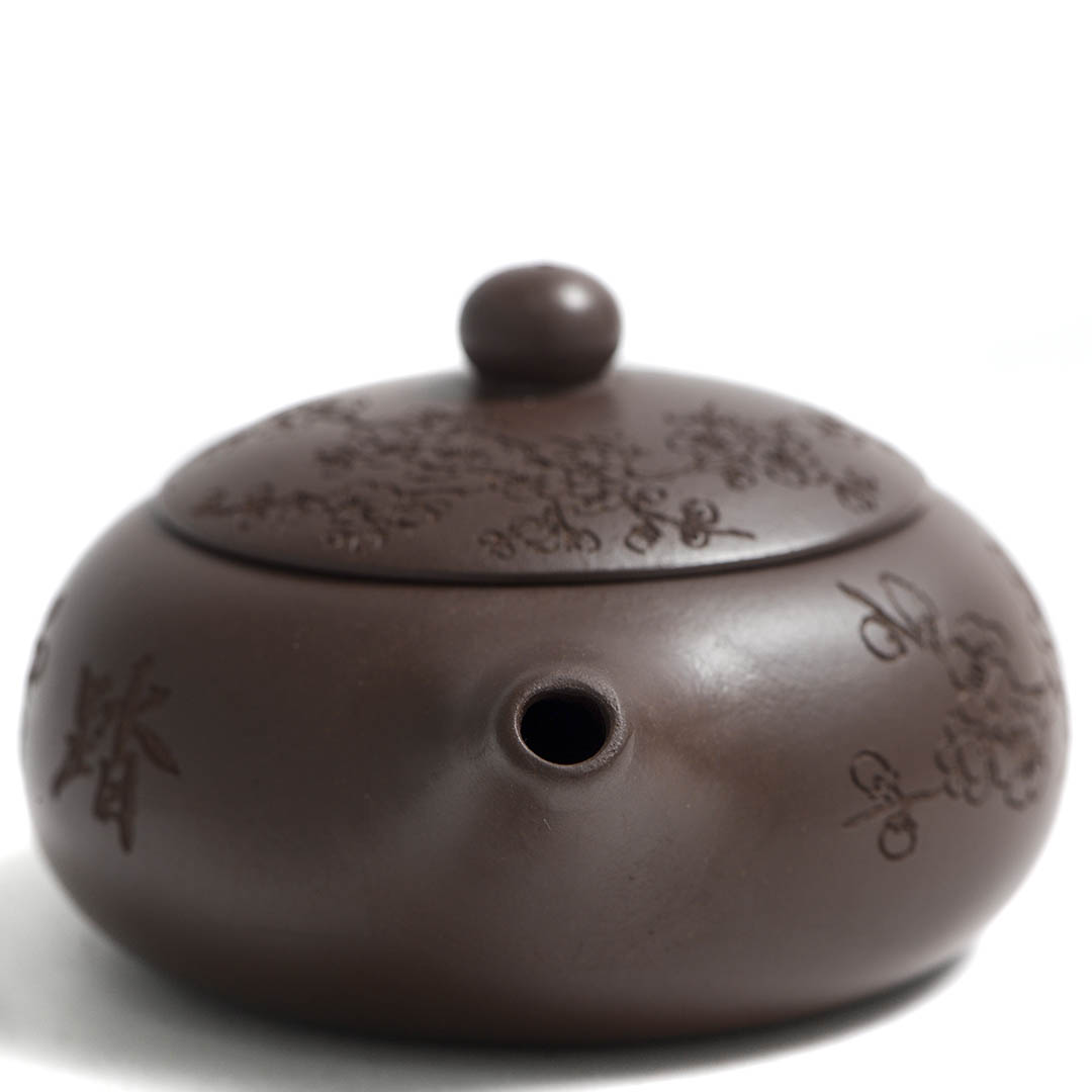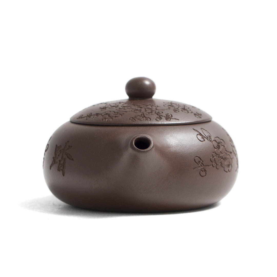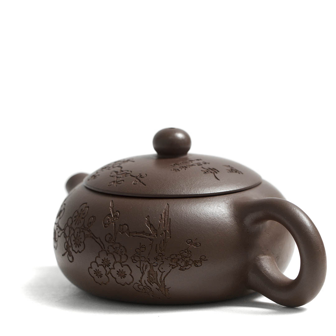 Тело чайника украшено резным изображением Цветущей Сливы, которая символизирует жизнелюбие, выносливость, возрождение жизни. Является одним из четырех благородных растений Китая.