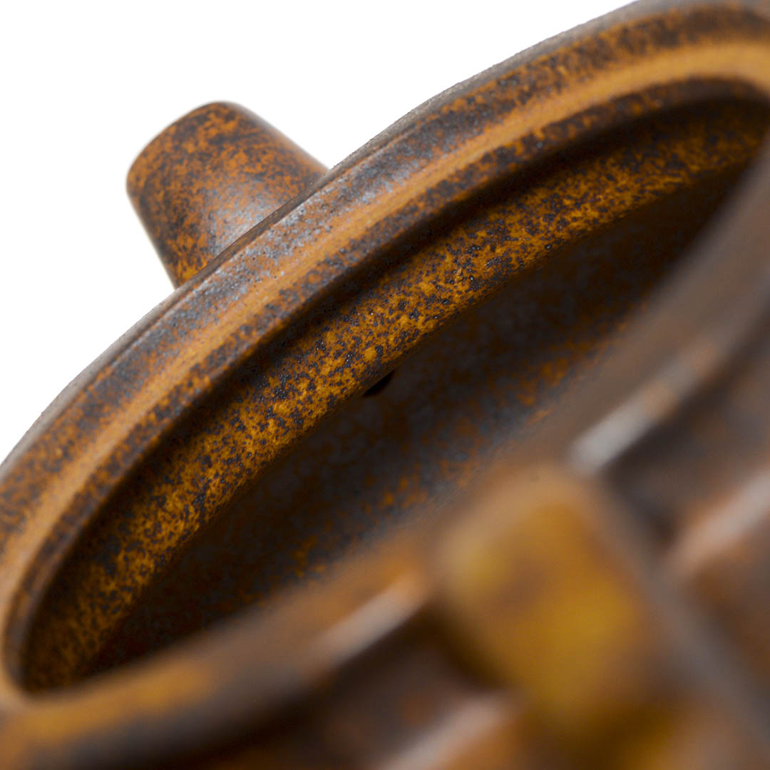 Чайник из исинской глины Дуань Ни. Авторская, неканоничная форма, где Фан Гу — "Подражание древности" а Ба Фан – “Восемь Сторон”. Работа высокого качества, оставляет очень приятные впечатления. При изготовлении чайника использован высокотемпературный обжиг. Благодаря этой технологии обжига самые легкоплавкие фракции испарилась, что придало чайнику большую пористость и меньший вес.