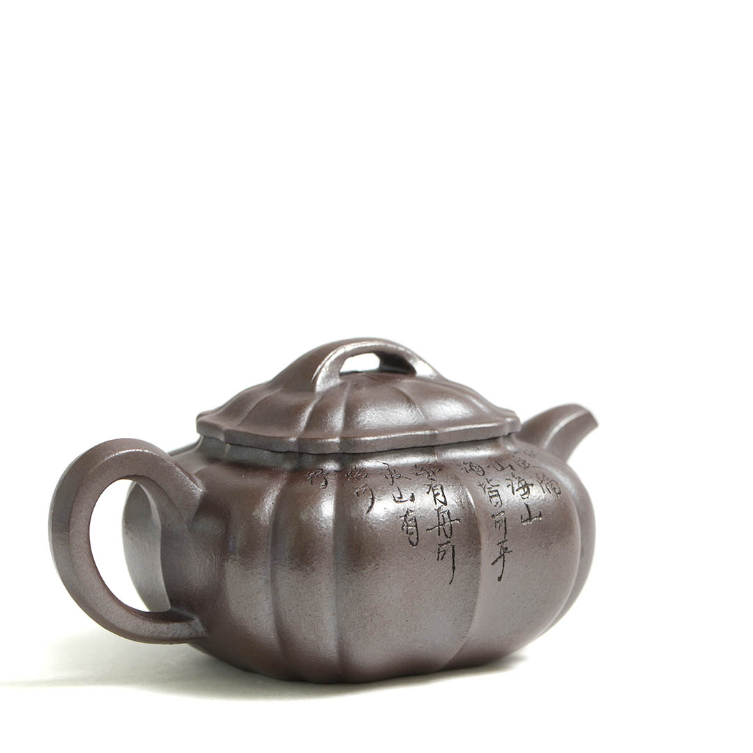 Чайник из исинской глины Цзы Ша. Авторская, неканоничная форма, где Фан Гу — "Подражание древности" а Сы Фан - “Четырехугольник”. Отличная ручная работа за авторством Чжу Фэнмэй.
