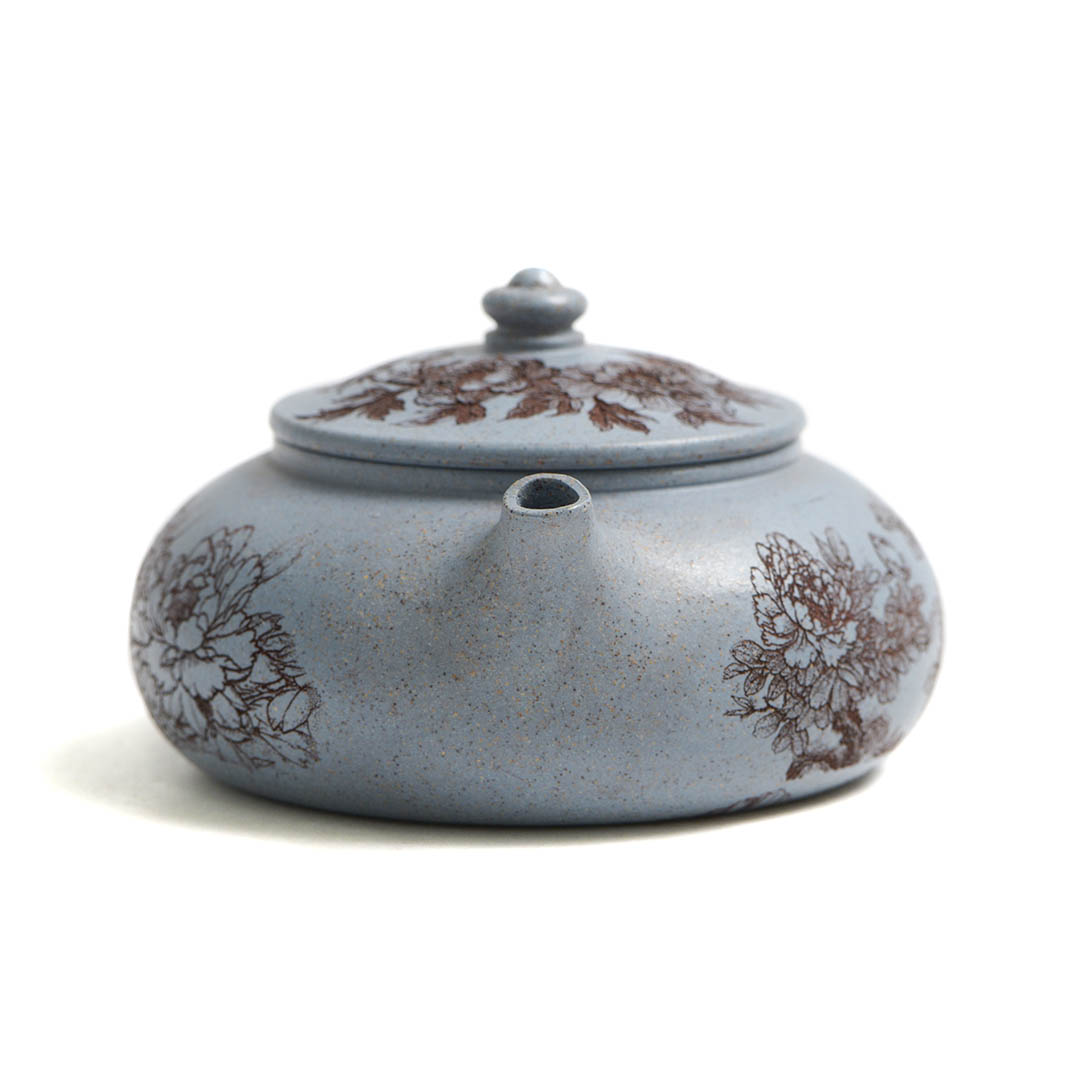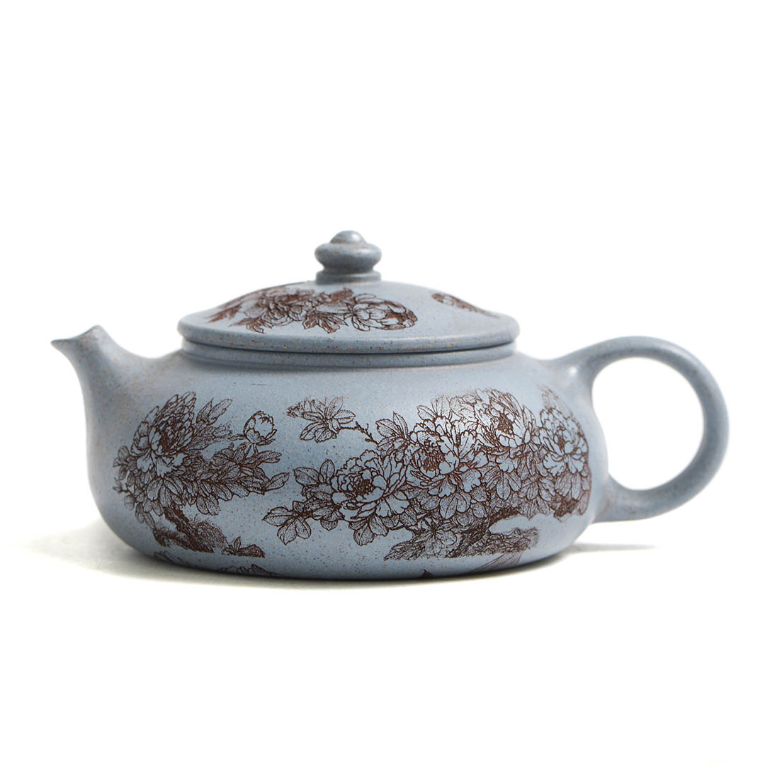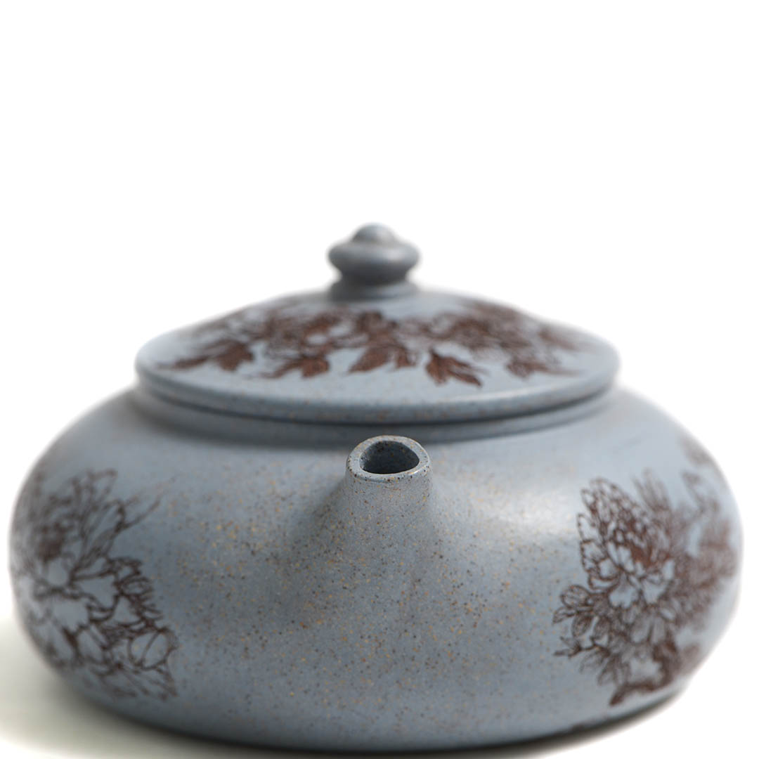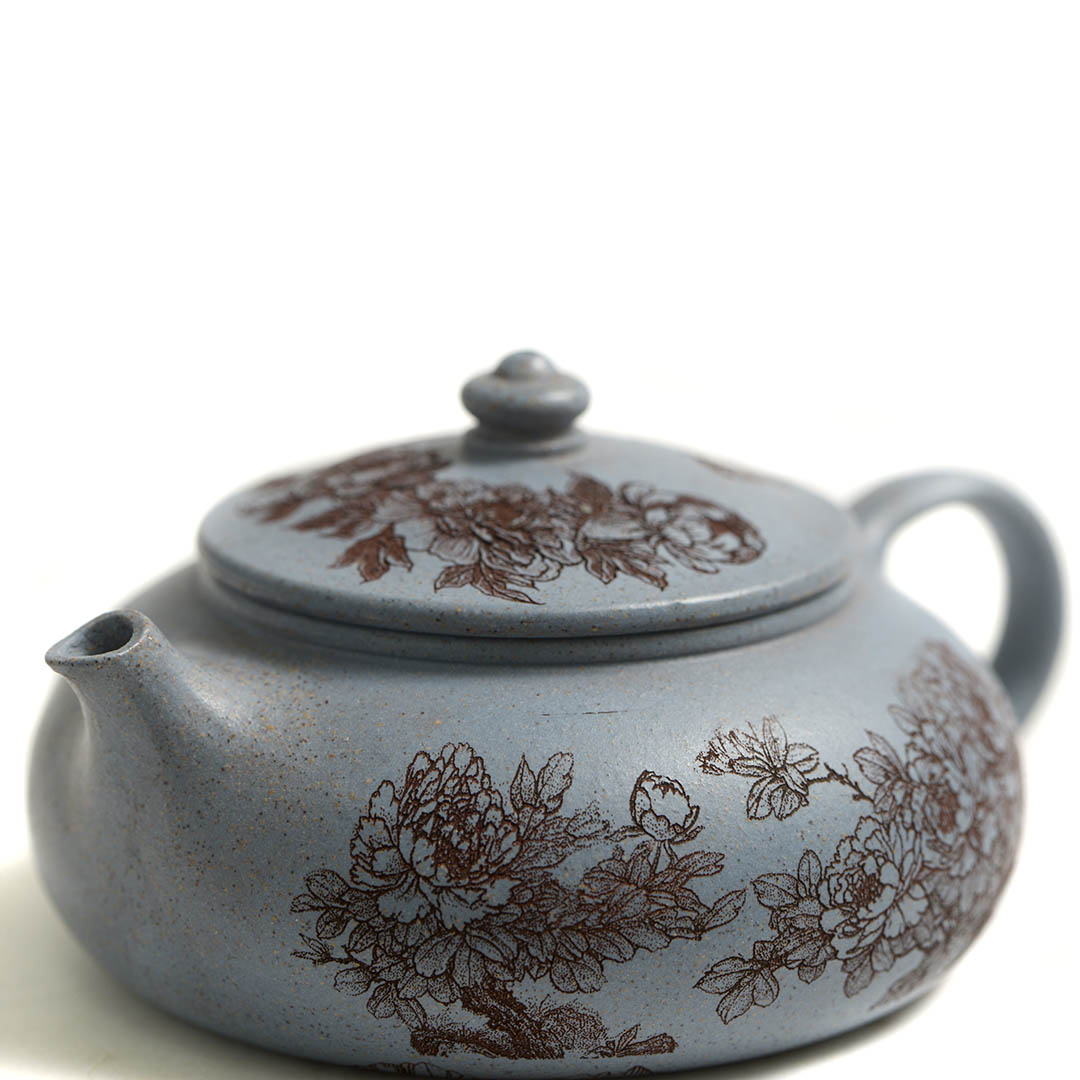 Чайник украшен резными изображениями Пиона. Символ Поднебесной, императорский цветок, олицетворение богатства и утонченной роскоши.