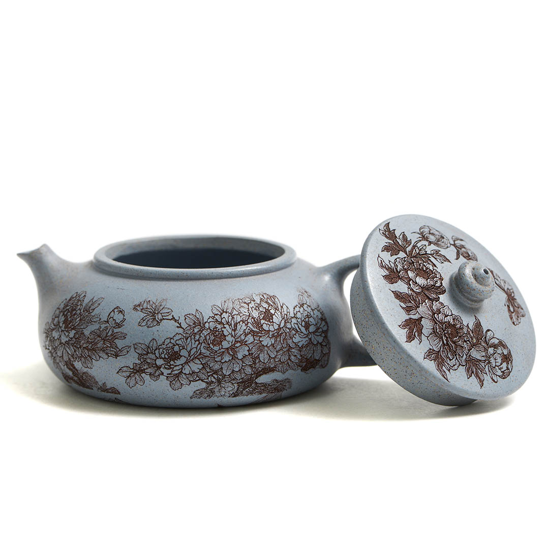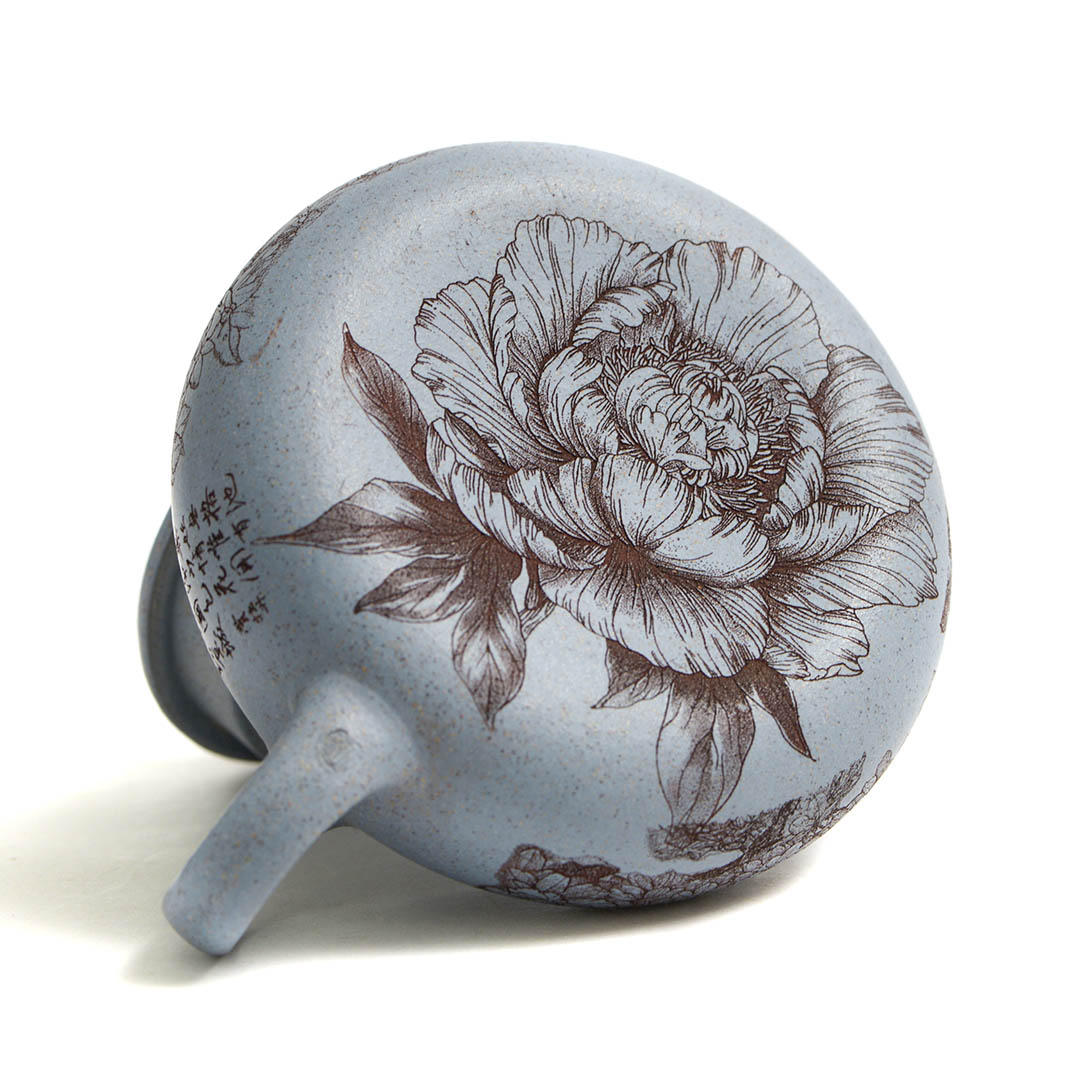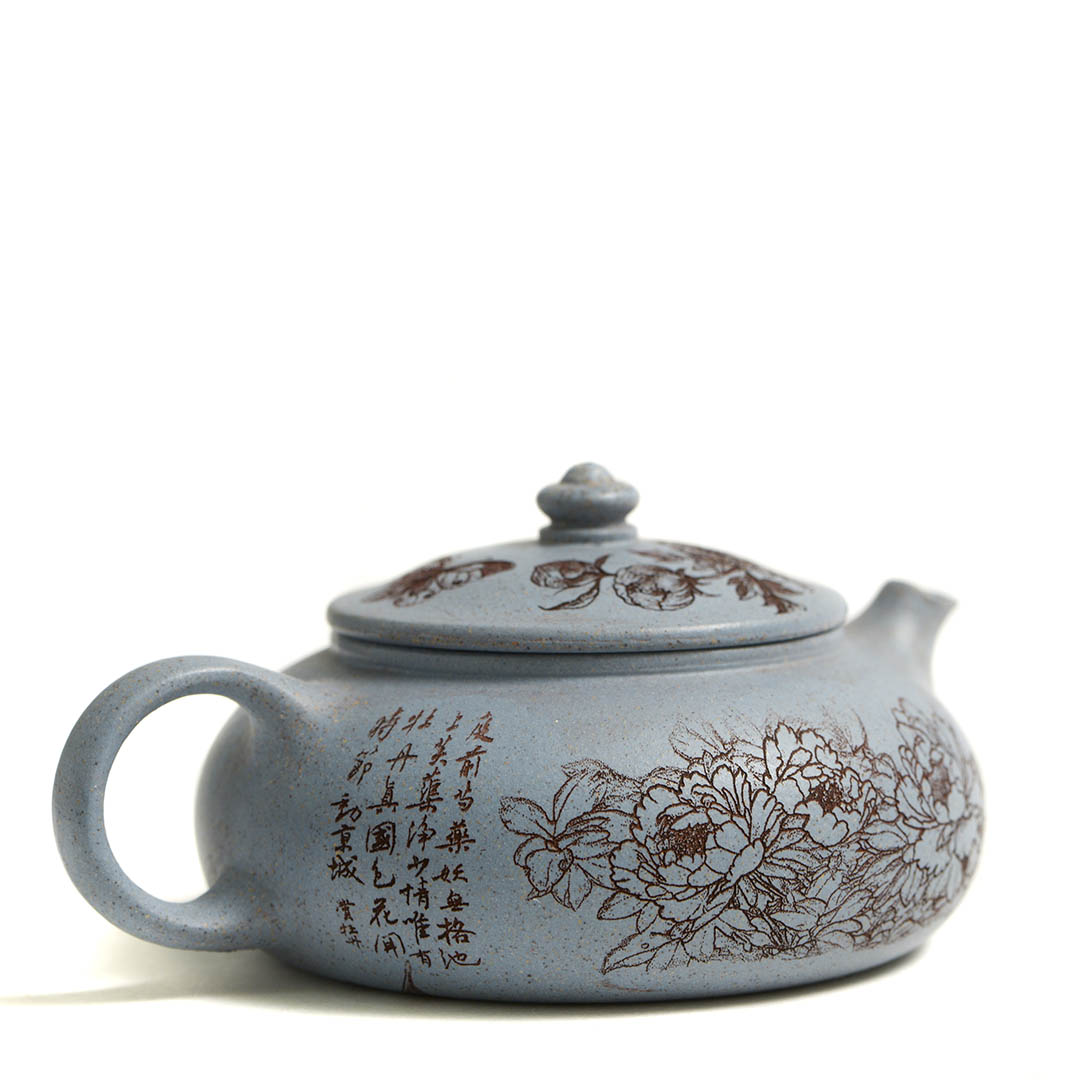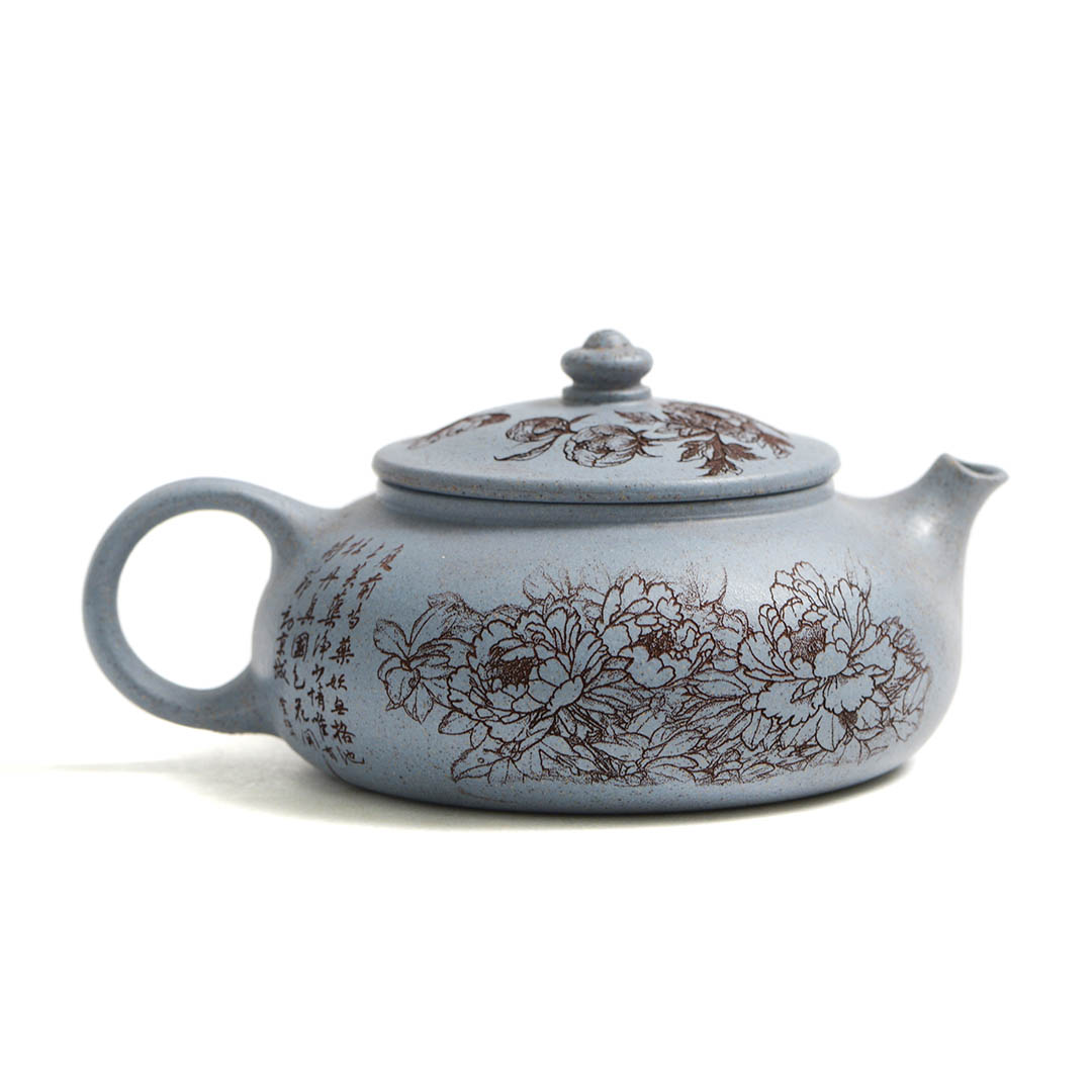 Чайник украшен резными изображениями Пиона. Символ Поднебесной, императорский цветок, олицетворение богатства и утонченной роскоши.