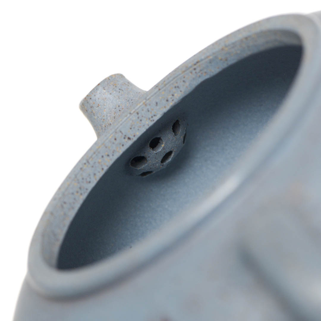 Чайник из исинской глины Бао Лянь Дуань Ни — “Небесно-Голубая Дуань Ни”. Вариация классической формы Хань Цзян – “Одинокий рыбак на холодной реке”. Образ вдохновлен классическими китайскими пейзажами и поэзией, где одинокий рыбак символизирует созерцание и гармонию с природой, а также является отсылкой к стихам, например, строке “孤舟蓑笠翁” (одинокий рыбак в плаще и шляпе) из поэмы Лю Цзунъюаня “Река в снегу”. Отличная ручная работа за авторством Цю Хуа (邱华).
