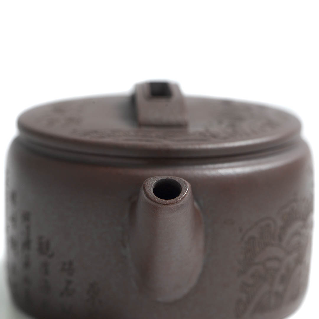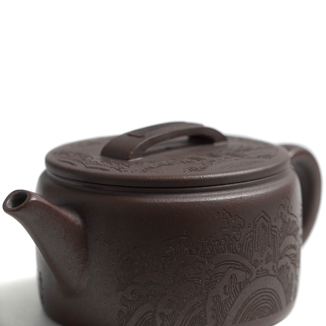 Чайник из исинской глины Гу Хун Ни — “Старая красная глина”. Вариация формы Хань Ва Ху - "Ханьская черепица". Отличная ручная работа.Объем 230 мл. На донышке присутствует печать мастера. Стенки средней толщины. Классическое сито, 10 отверстий.Тело чайника украшено резным изображением морских волн. Они могут символизировать силу, устойчивость и преодоление препятствий, так как даже самые мощные волны могут быть результатом малейшего движения воды.В комплекте подарочная коробка и паспорт чайника.П Читать полностью