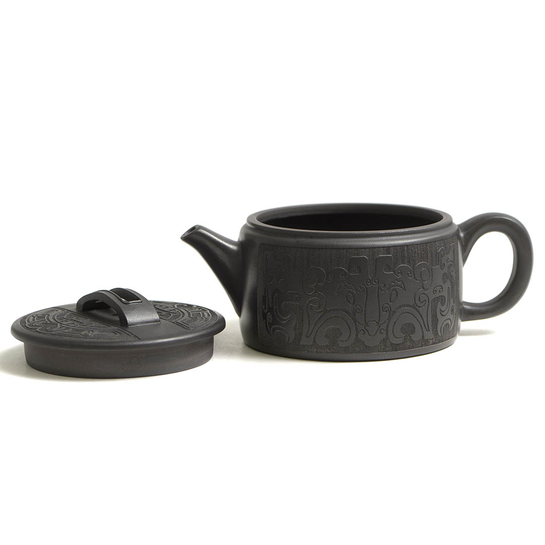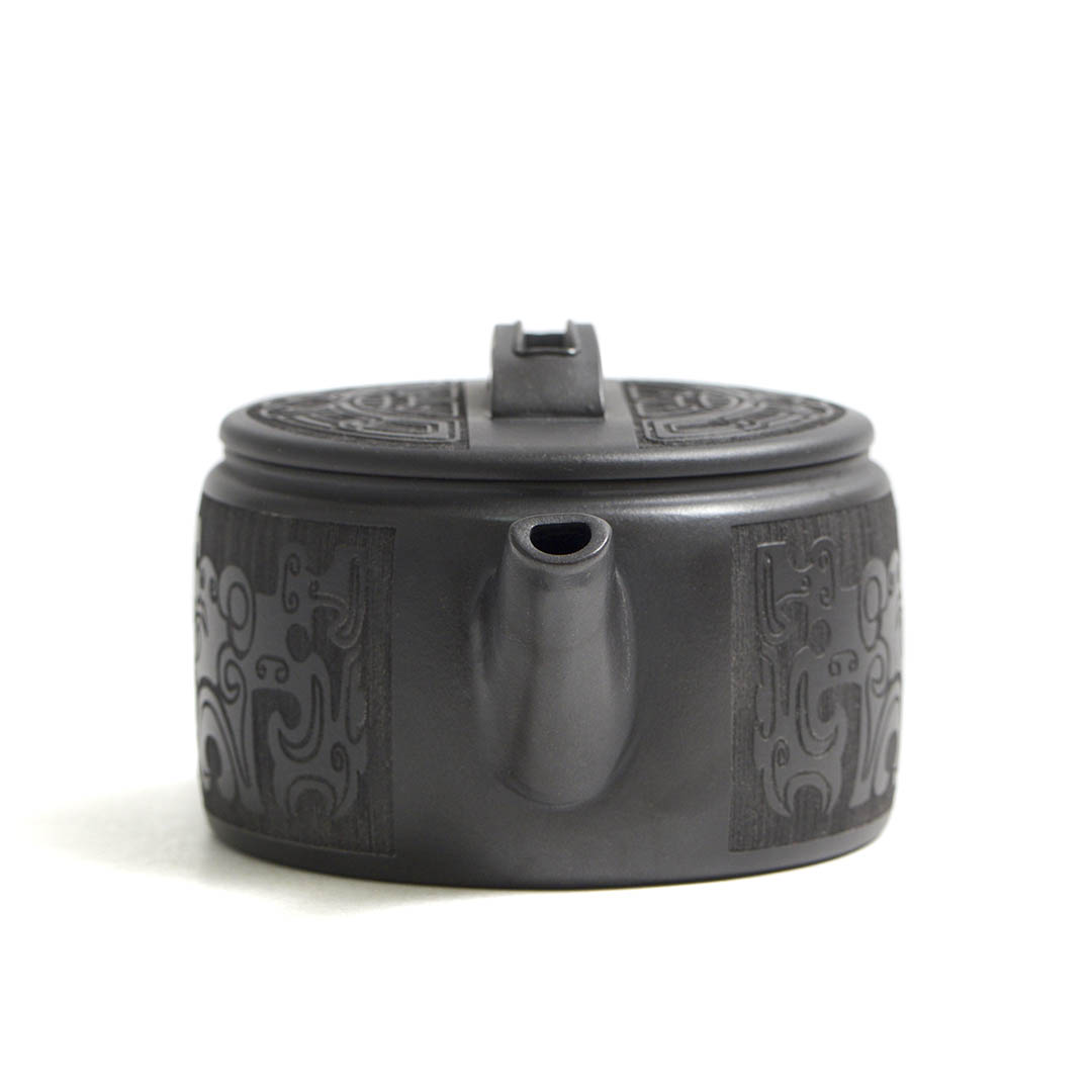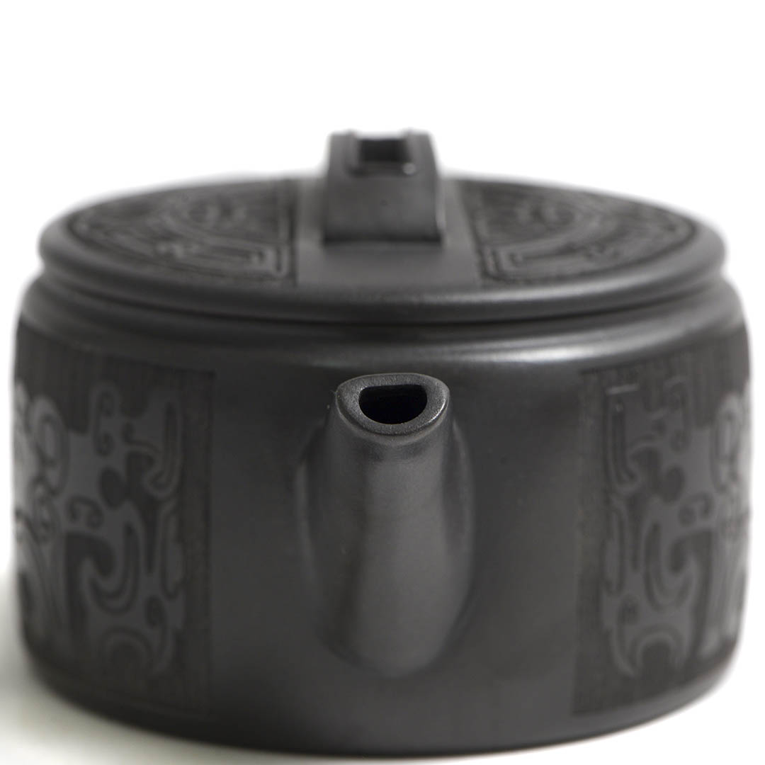 Тело чайника украшено образом Таоте. Самая популярная легенда гласит, что Таоте был настолько ненасытен, что сожрал все вокруг, а когда есть стало нечего, начал пожирать самого себя. В итоге от него осталась только голова и гигантская пасть. Это делает его идеальным символом абсолютной, самоуничтожающейся жадности. Со временем, легенда о Таоте эволюционировала. Страшная морда чудовища должна была отпугивать злых духов от жертвенной пищи и питья, чтобы те не осквернили подношения предкам и богам. Чем страшнее, тем лучше защита.