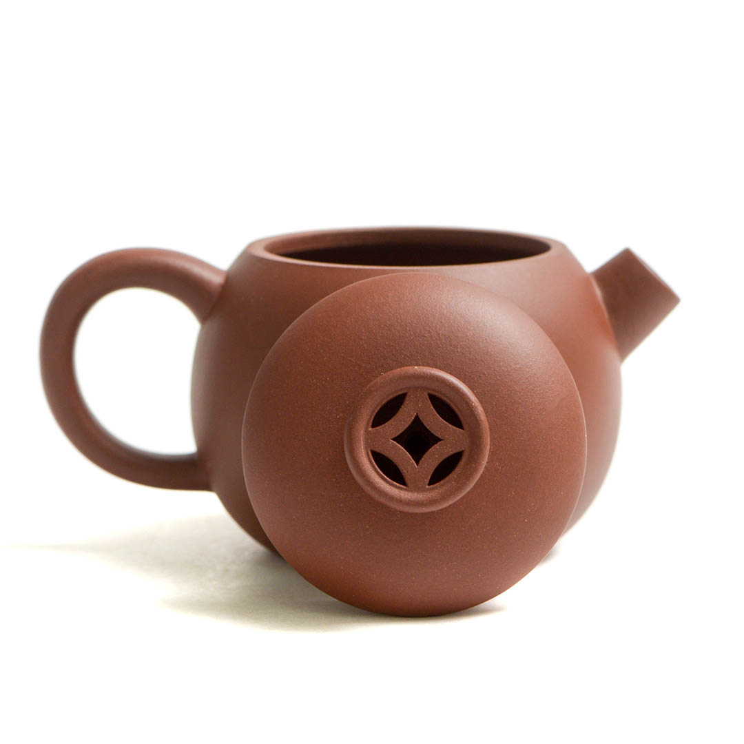На крышке чайника красуется ручка в форме традиционной китайской монеты — символ, превращающий каждое чаепитие в пожелание благополучия.