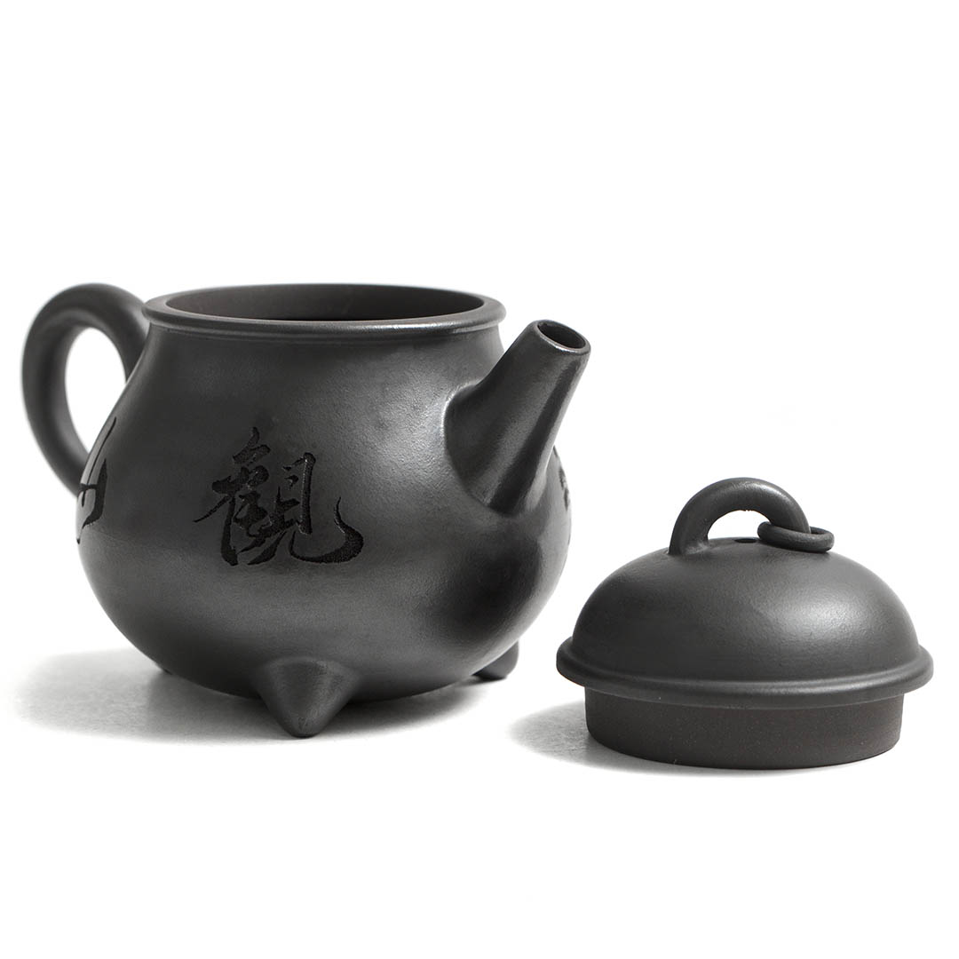 Чайник из исинской глины Хэй Ни. Авторская, неканоническая форма - Сан Зу Ру Дин - "Трехногий молочный горшок" Отличная ручная работа за авторством Цю Хуа (邱华).