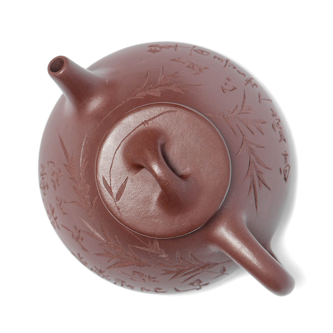 Чайник украшен резными изображениями бамбука, который является символом долголетия и стойкости к жизненным невзгодам.