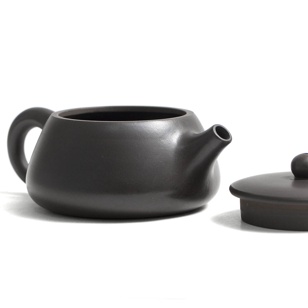 Чайник из исинской глины Хэй Чжу Ни. Трансформация классической формы. "Ши Пяо Да Коу" — Каменный ковш с большим ртом. Отличная ручная работа.