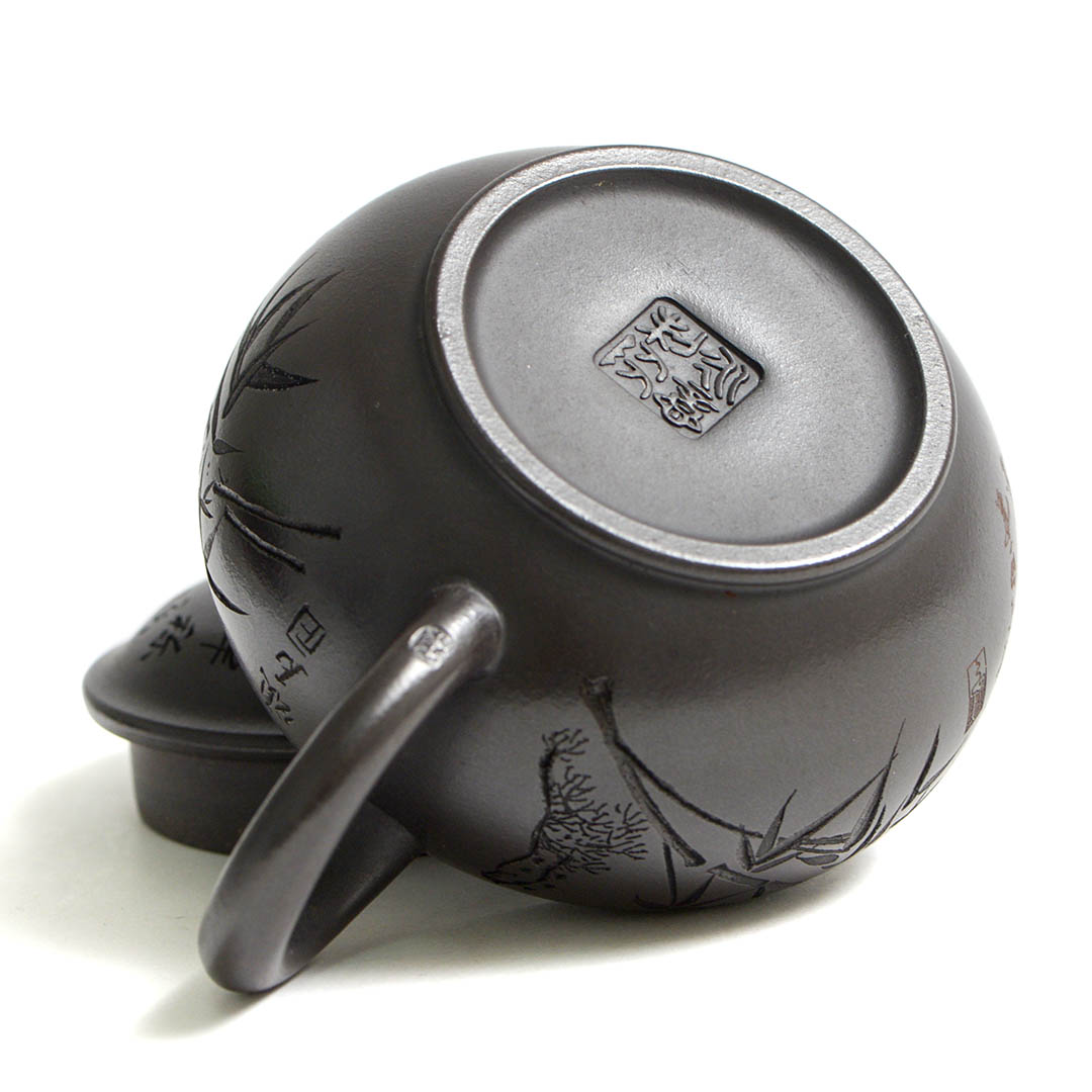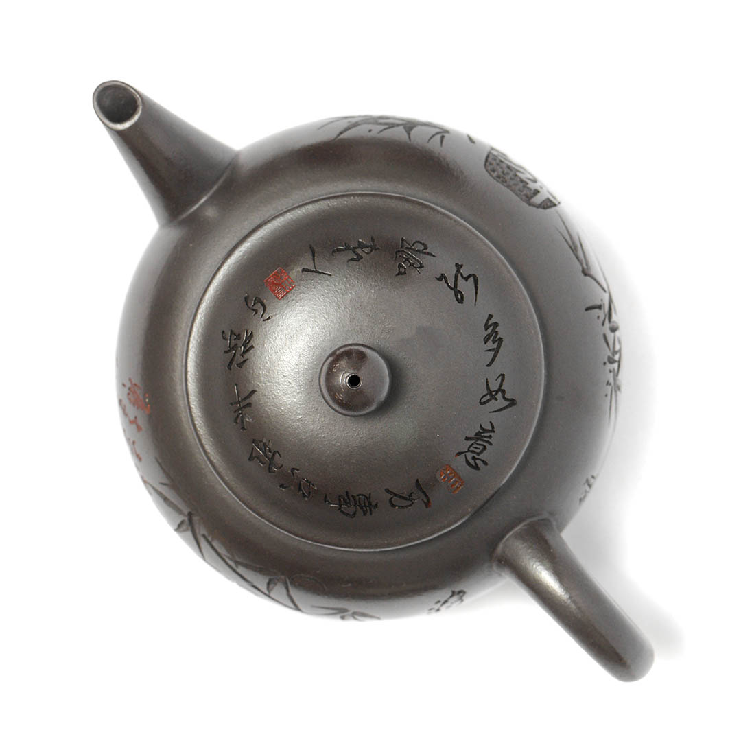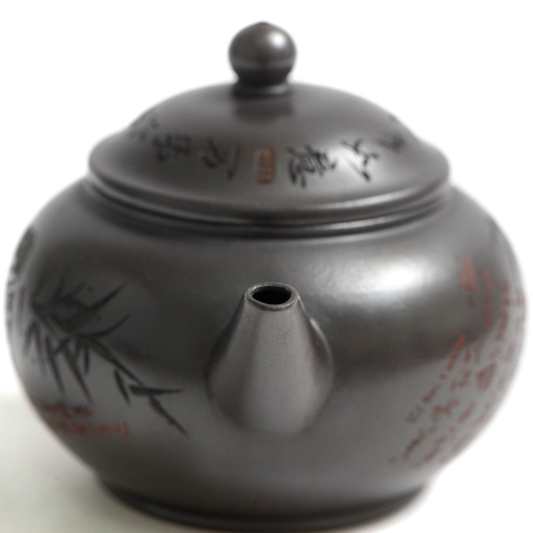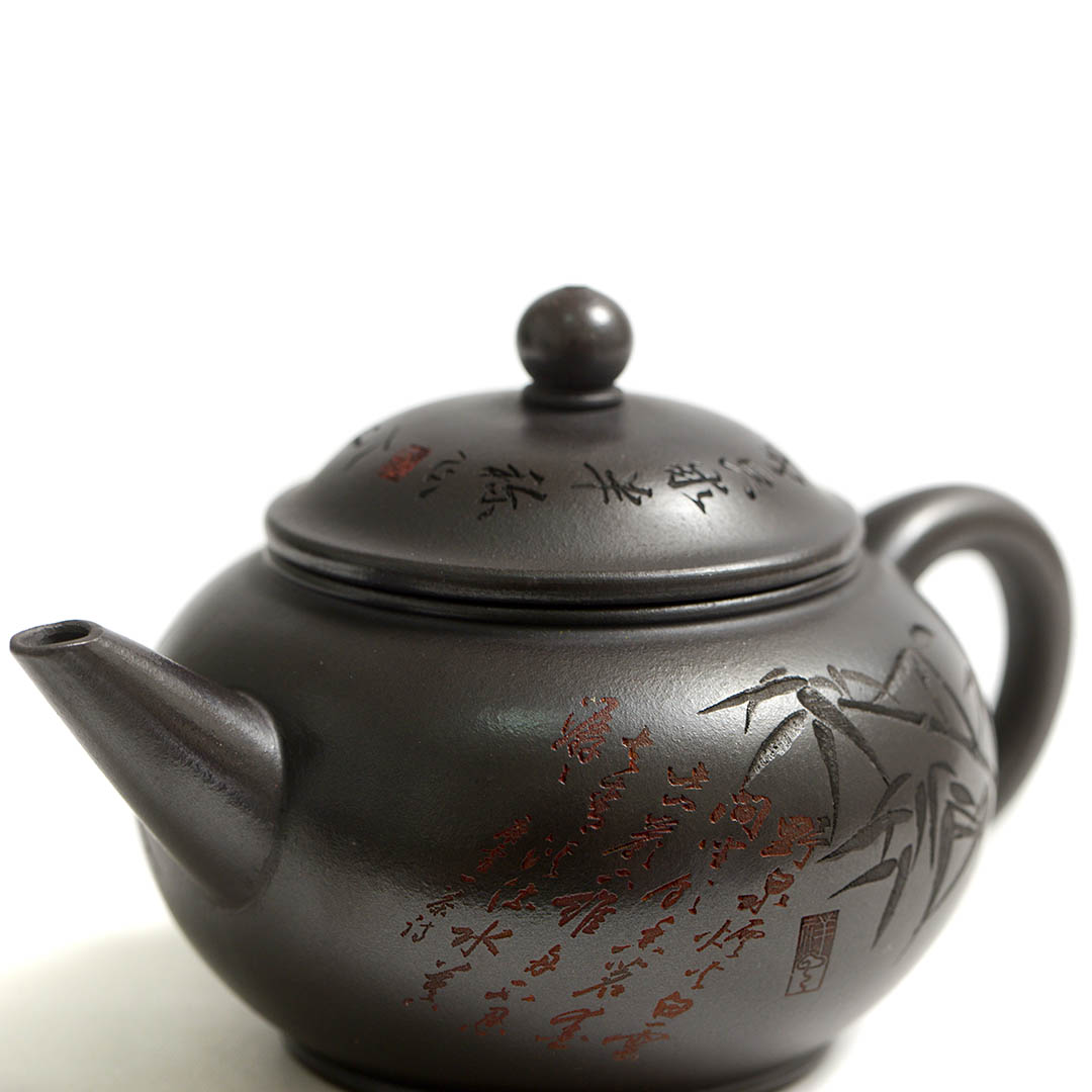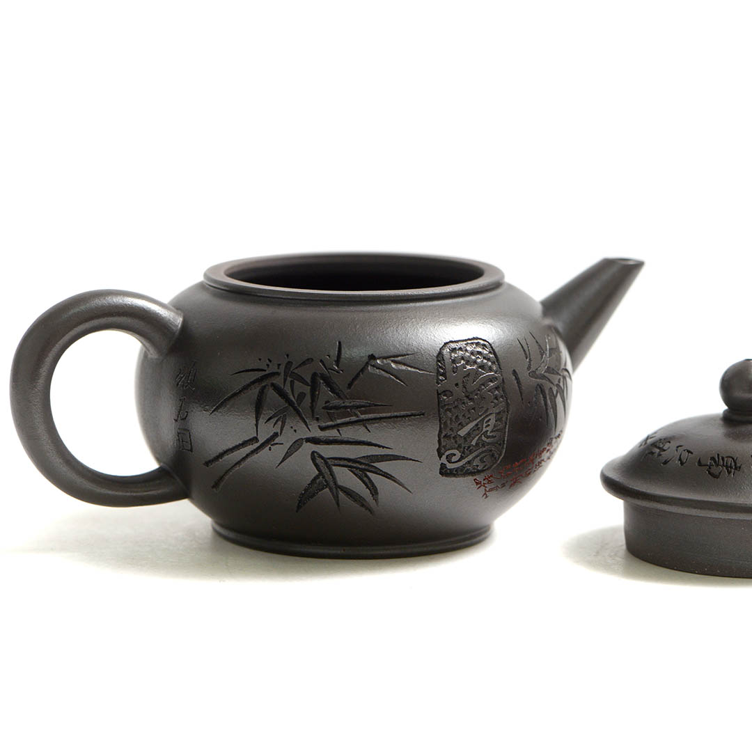 Тело чайника украшено резными изображениями бамбука, который является символом долголетия и стойкости к жизненным невзгодам.