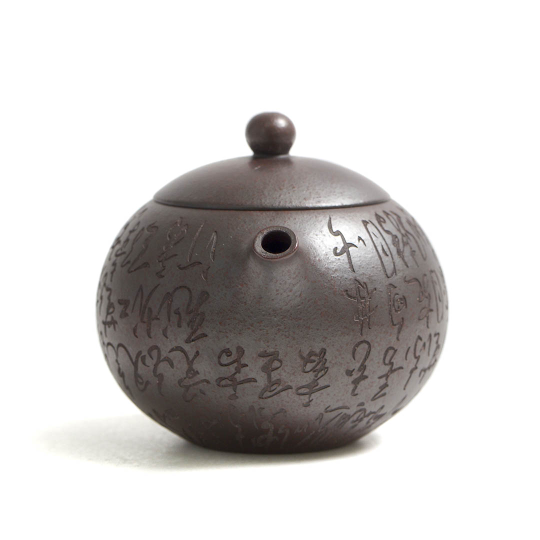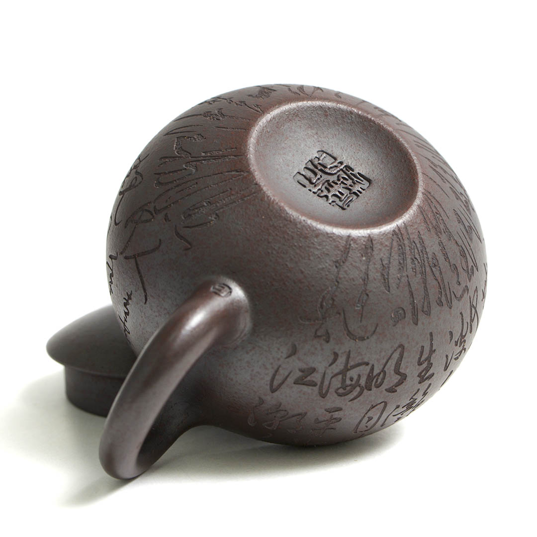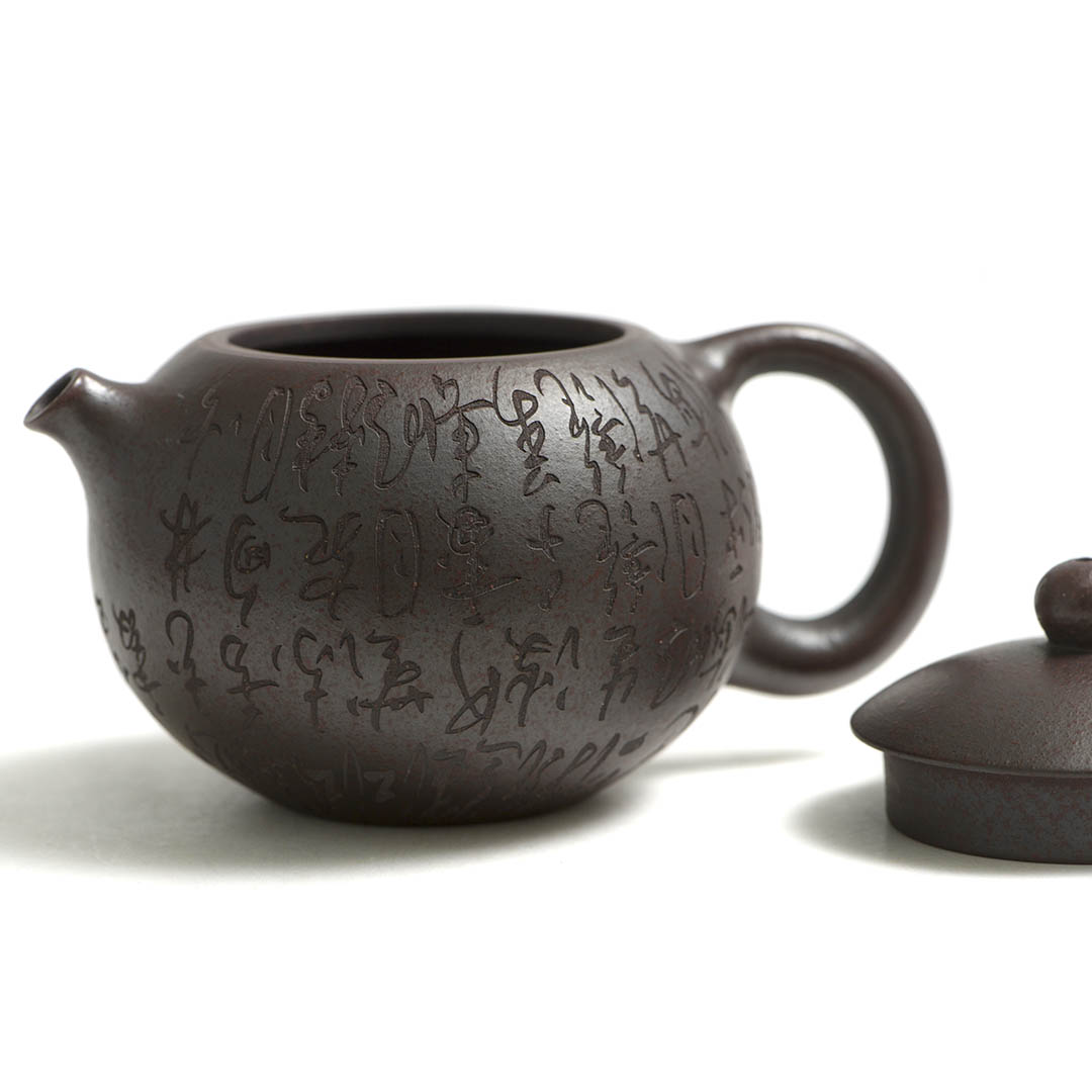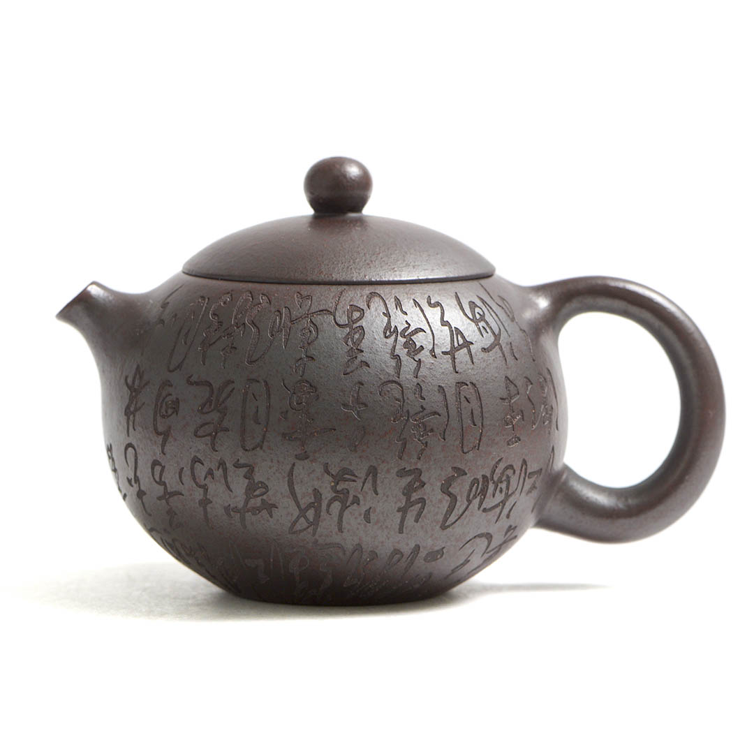 Название чайника отсылает к стилю написания иероглифов, изображенных на нем. Это 草书 — “Скоропись”, или же очень свободная каллиграфия. Это высшая ступень китайской каллиграфии, где главными становятся не четкость иероглифов, а динамика, эмоция и индивидуальность мастера. Это искусство «танцующей кисти», где линии связываются в единый стремительный поток, подобный порыву ветра.
