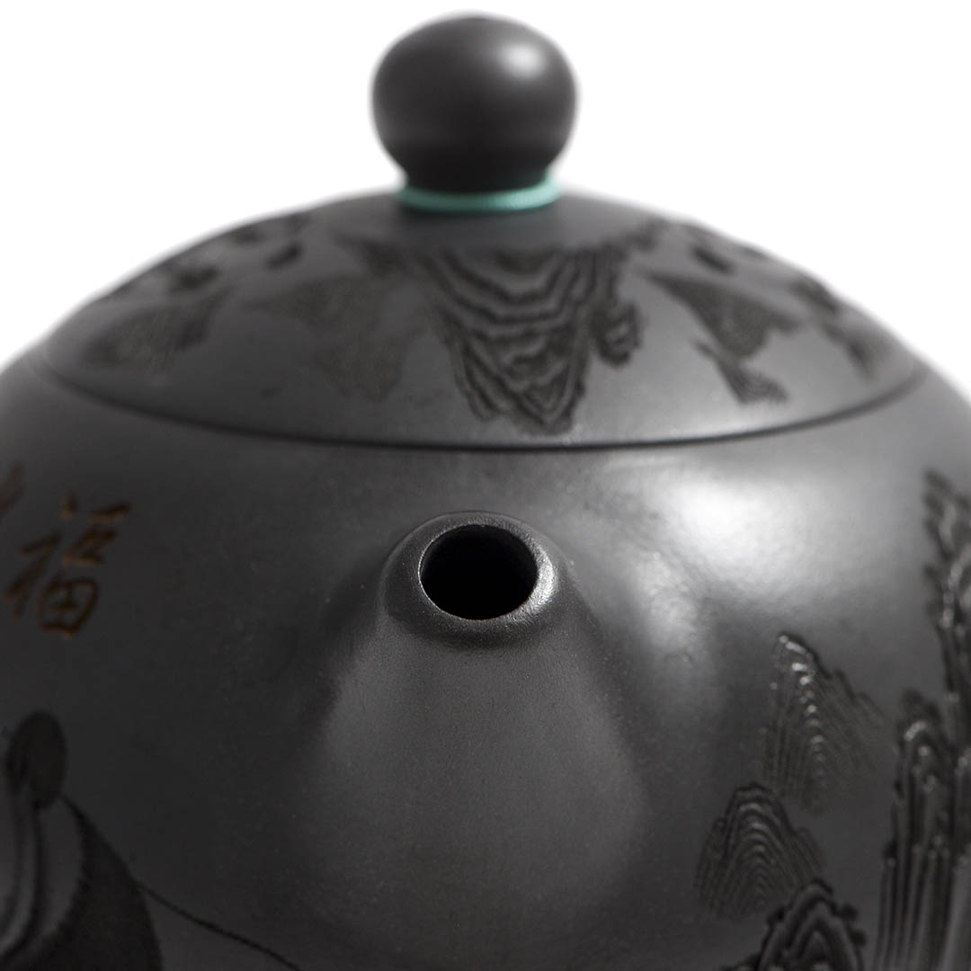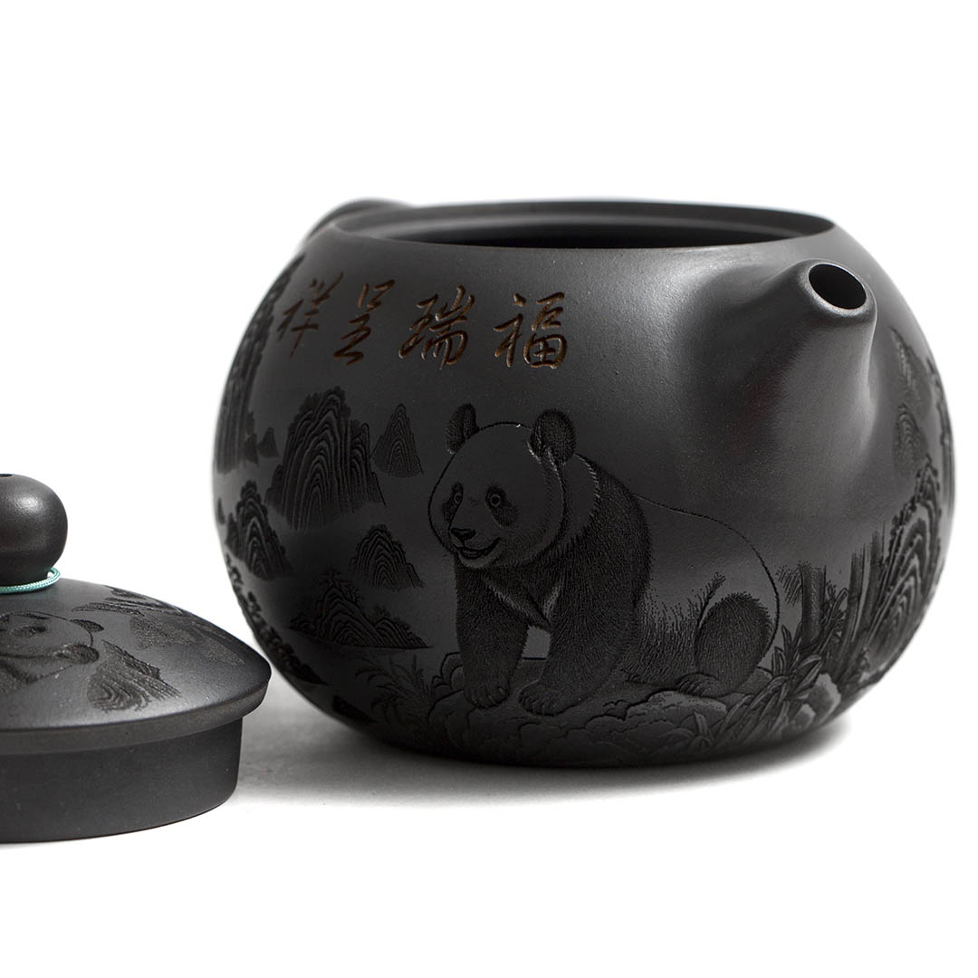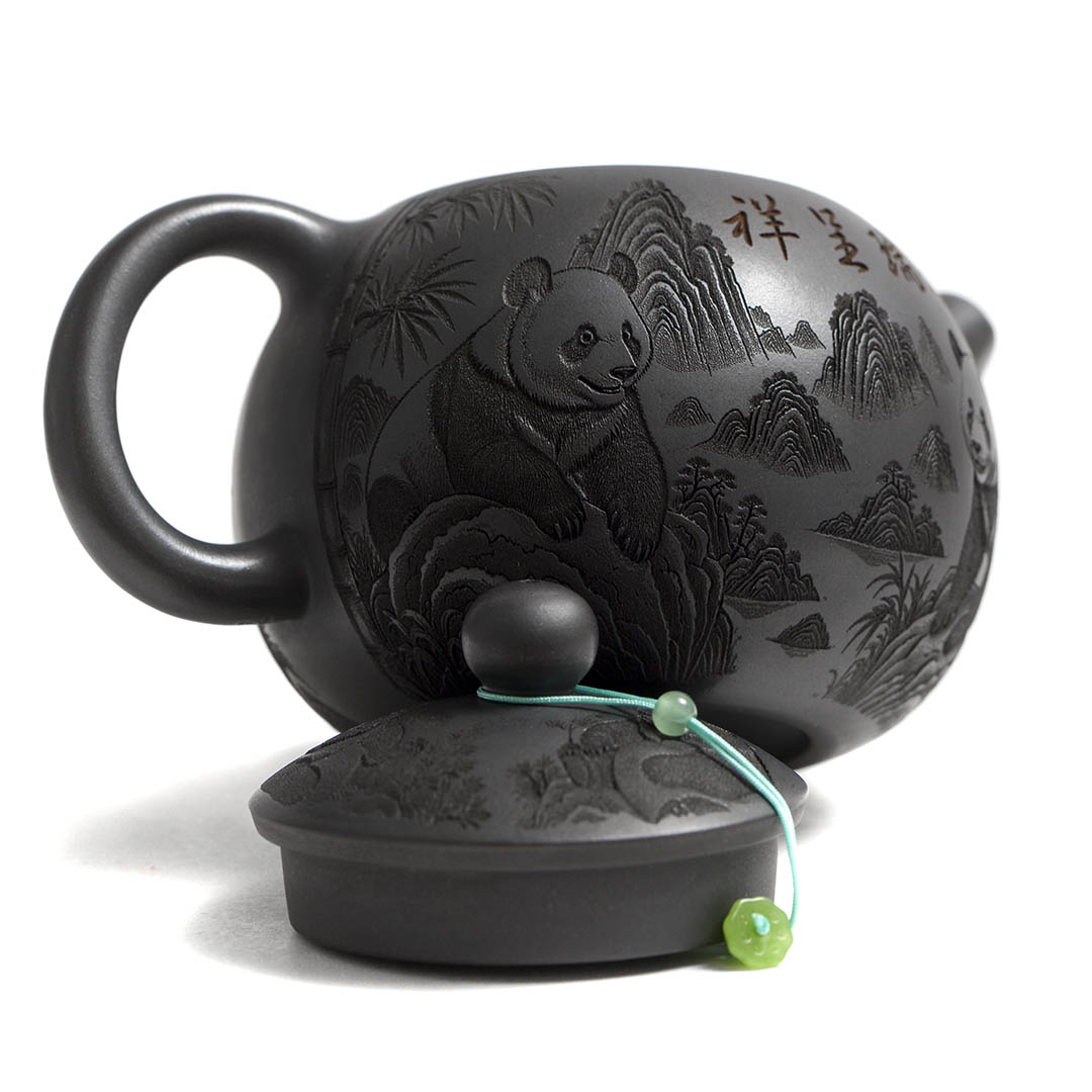 Чайник и крышка украшены рельефным изображением двух Панд, сидящими в тени Бамбука. Панда является национальным символом Китая. Она символизирует мир и дружелюбие. Бамбук - символ долголетия и стойкости к жизненным невзгодам.