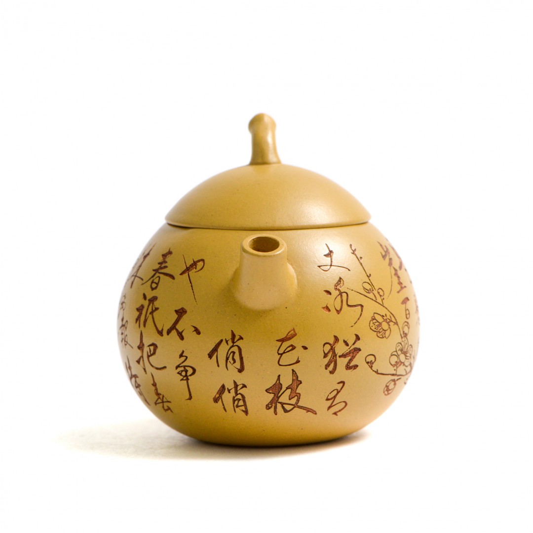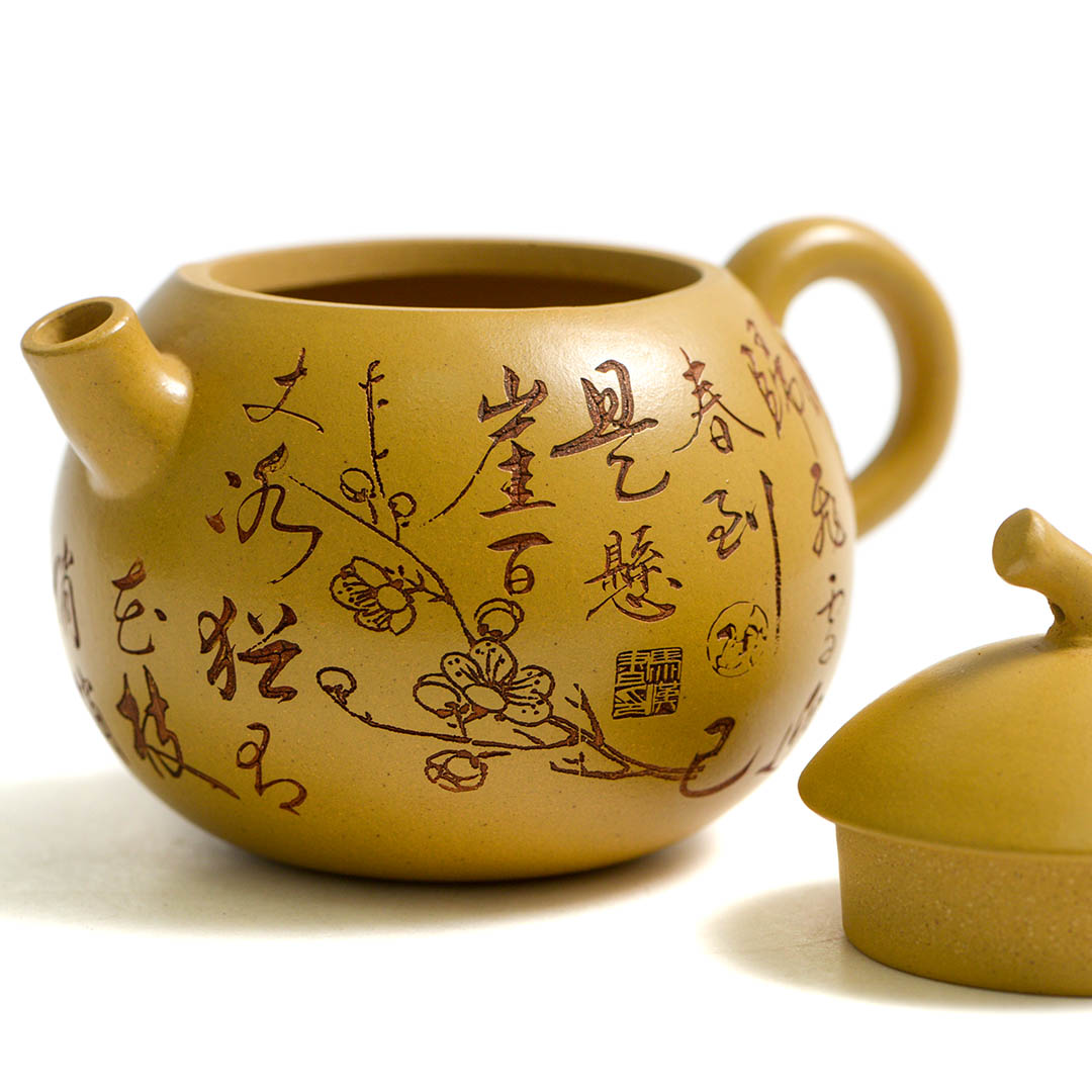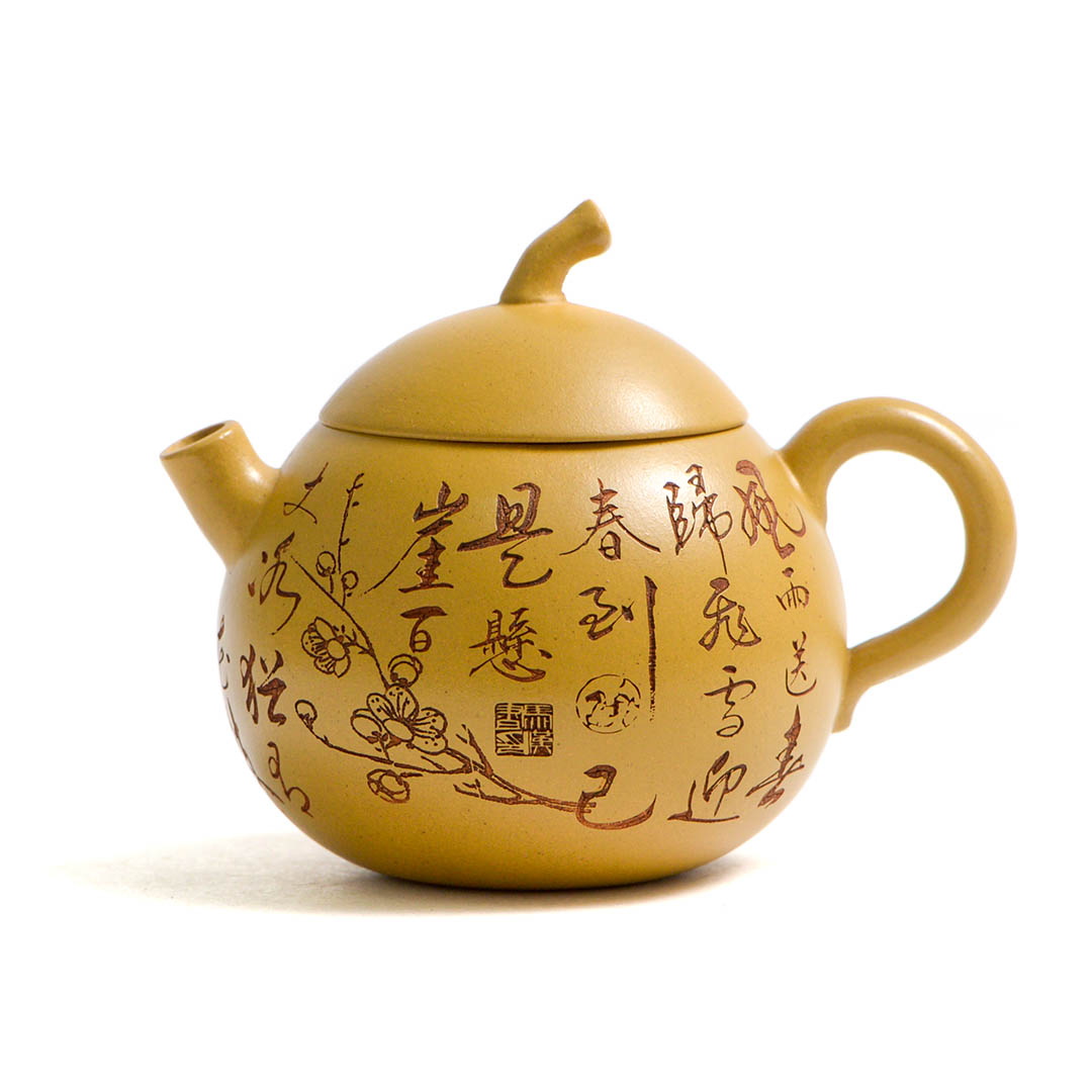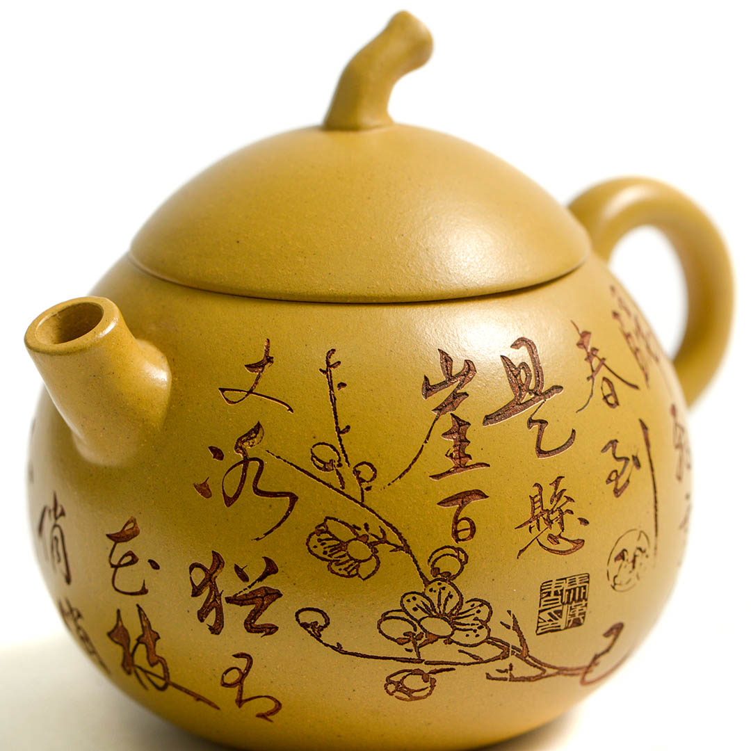 Тело чайника украшено резными изображениями Ветки Сливы, которая символизирует жизнелюбие, выносливость, возрождение жизни. Является одним из четырех благородных растений Китая.