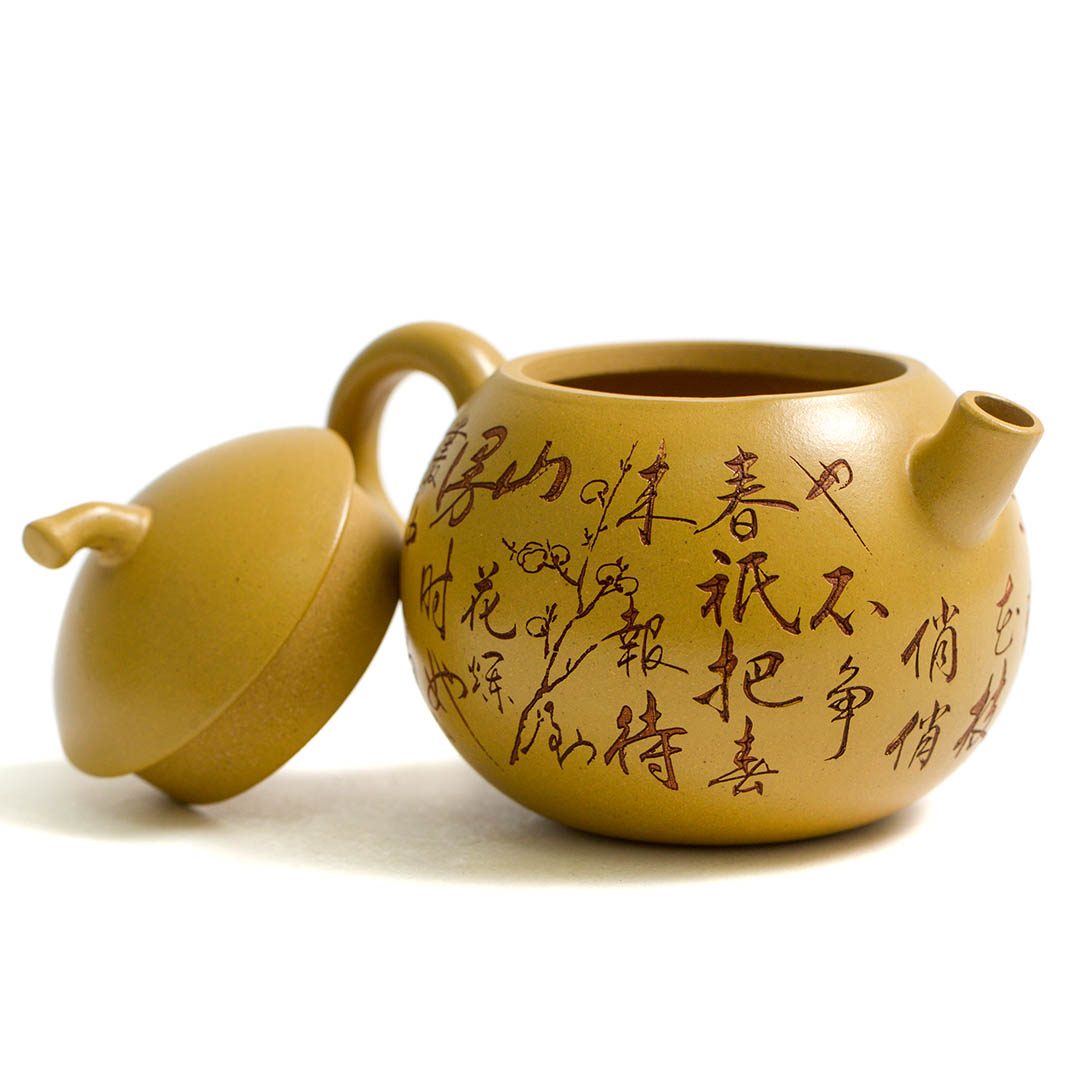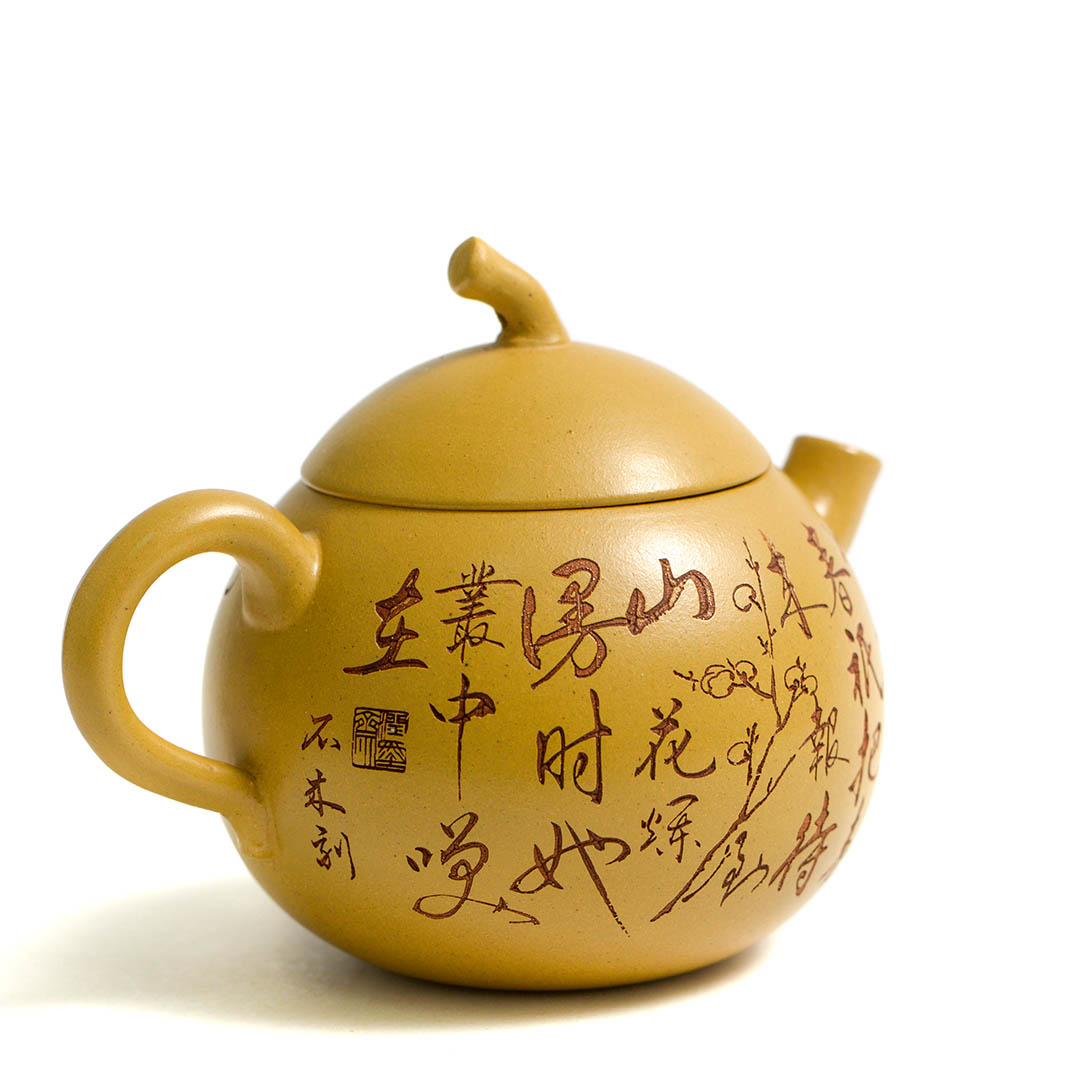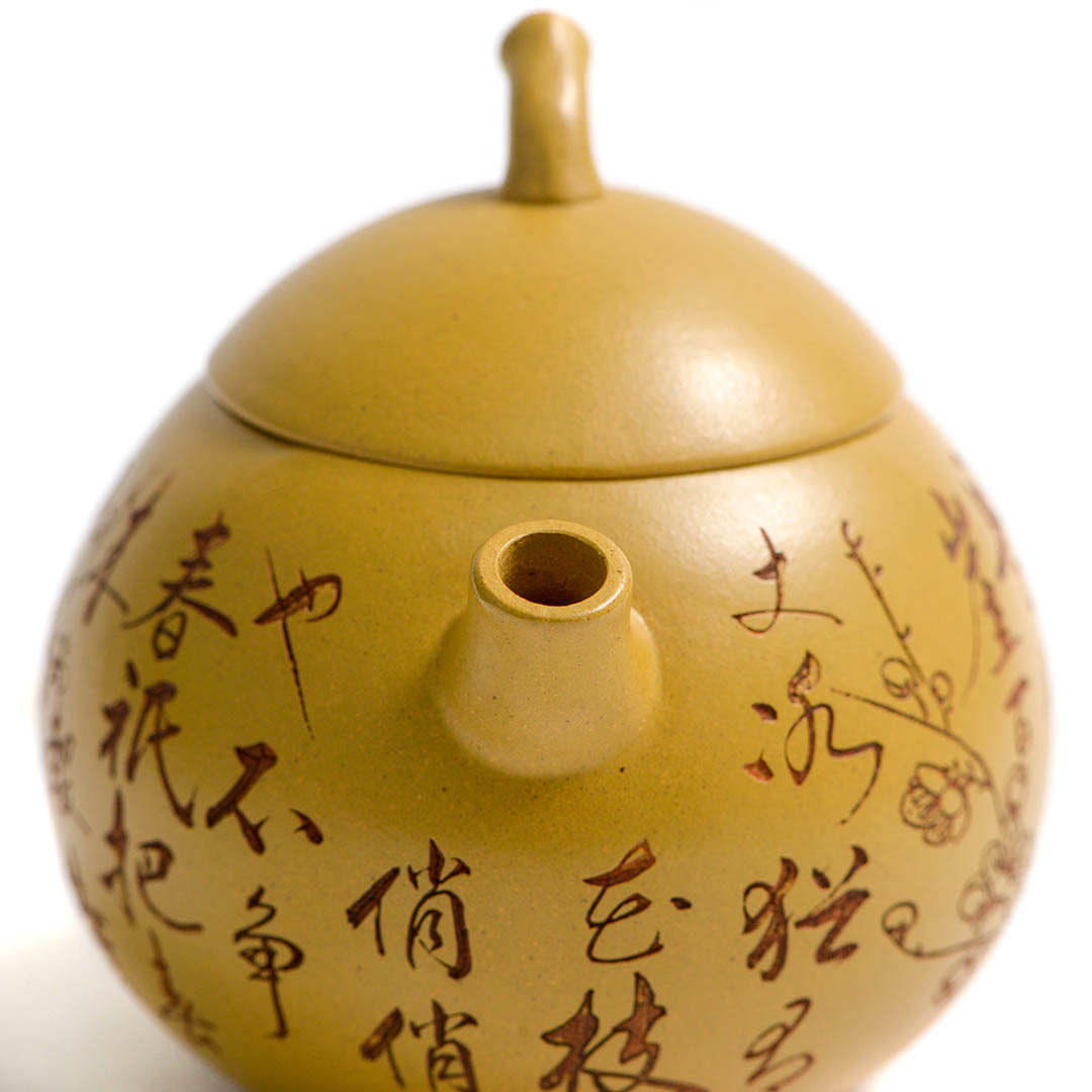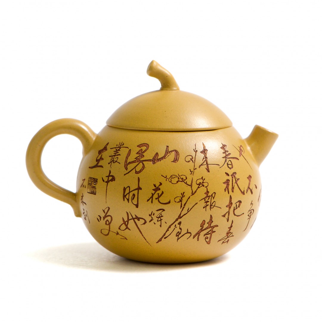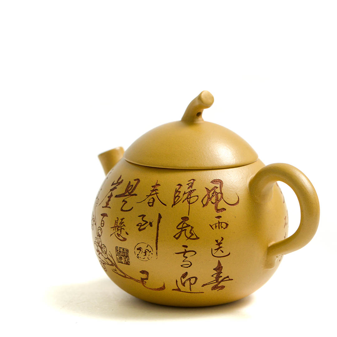 Тело чайника украшено резными изображениями Ветки Сливы, которая символизирует жизнелюбие, выносливость, возрождение жизни. Является одним из четырех благородных растений Китая.