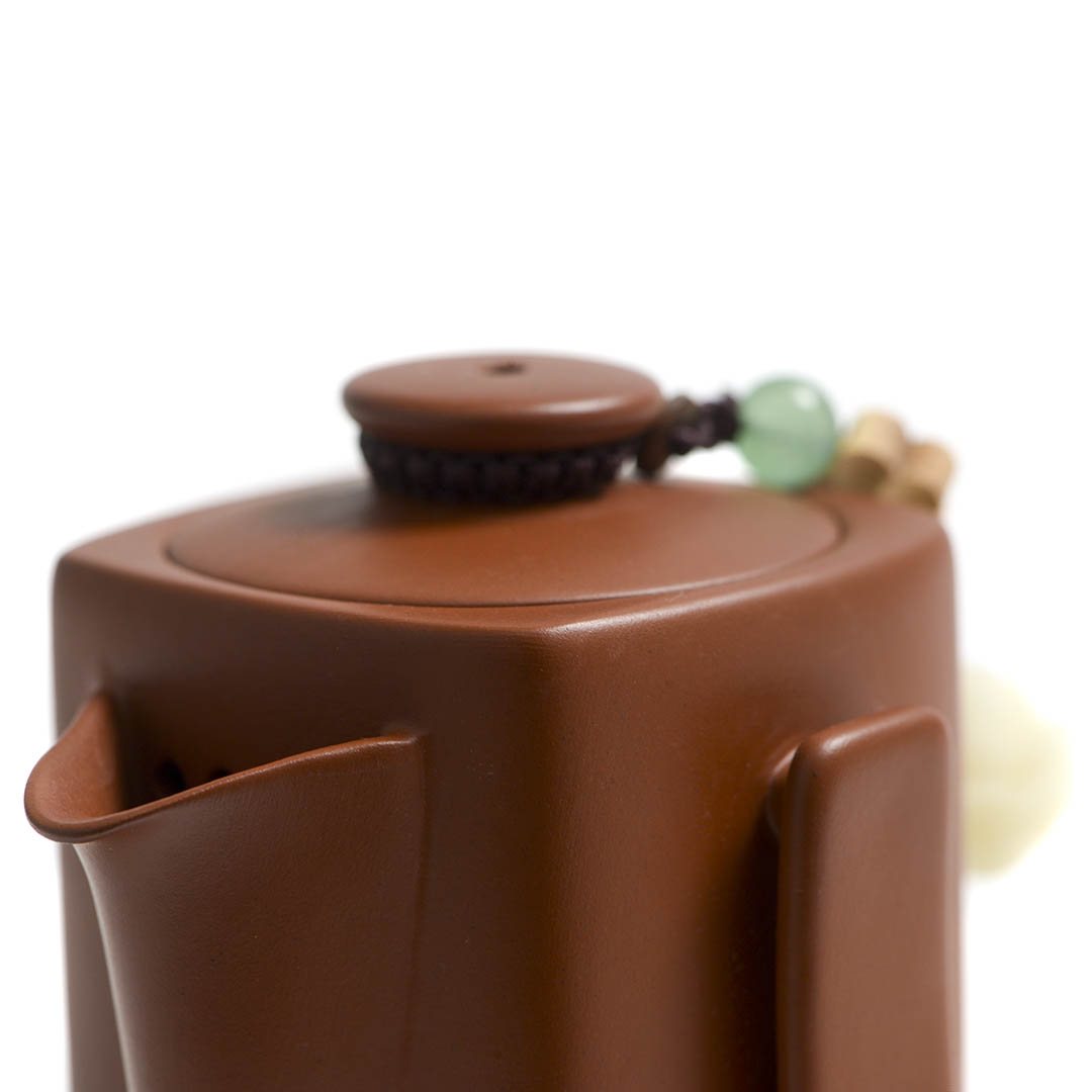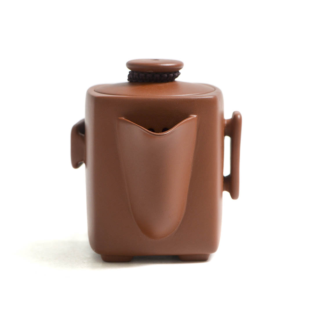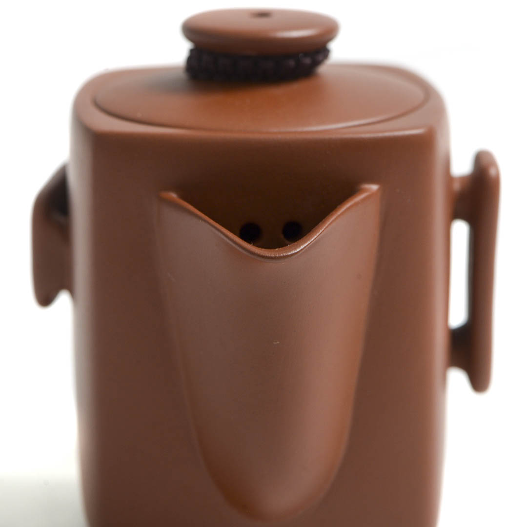 Традиционный японский чайник из исинской глины Чжу Ни. Вариация формы Сы Фан - четырехугольник. Стенки тоньше средних. Крышечка утоплено в тело хохина, сидит плотно. Одна из ручек немного смещена, что делает процесс разлива более удобным.