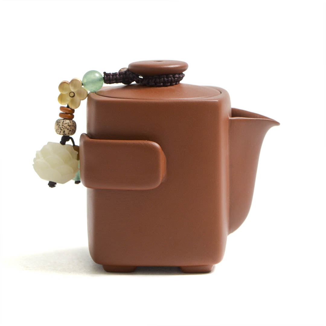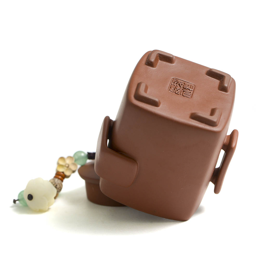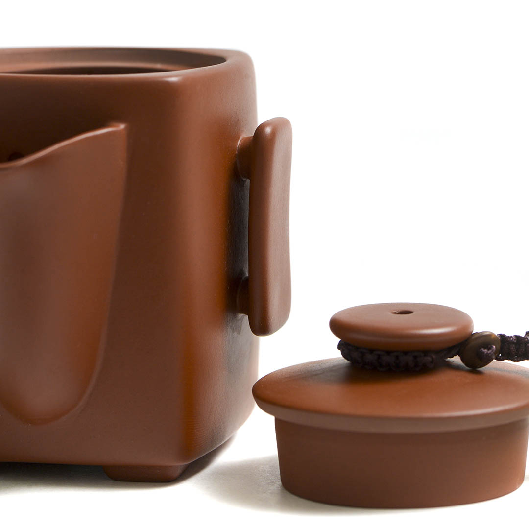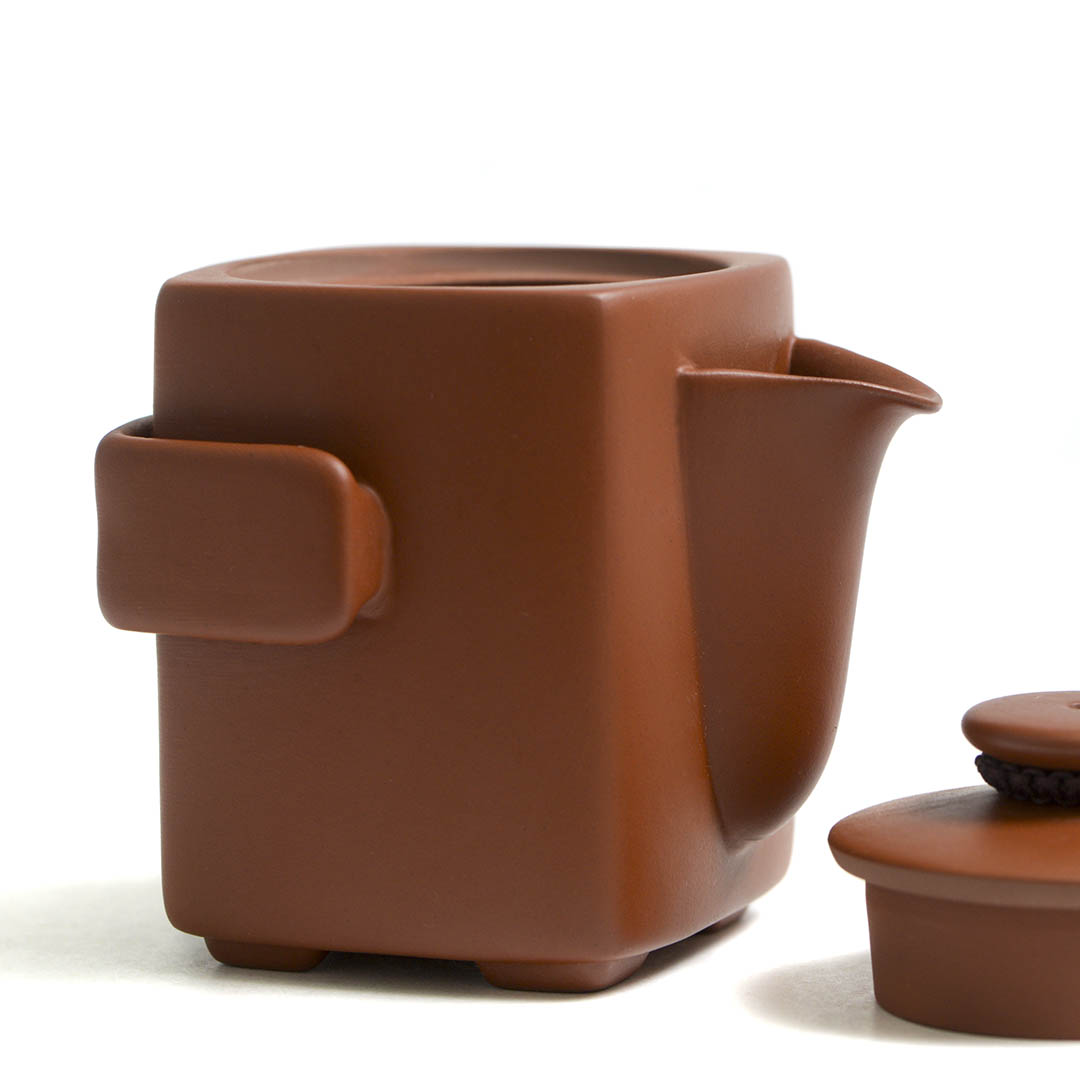 Традиционный японский чайник из исинской глины Чжу Ни. Вариация формы Сы Фан - четырехугольник. Стенки тоньше средних. Крышечка утоплено в тело хохина, сидит плотно. Одна из ручек немного смещена, что делает процесс разлива более удобным.