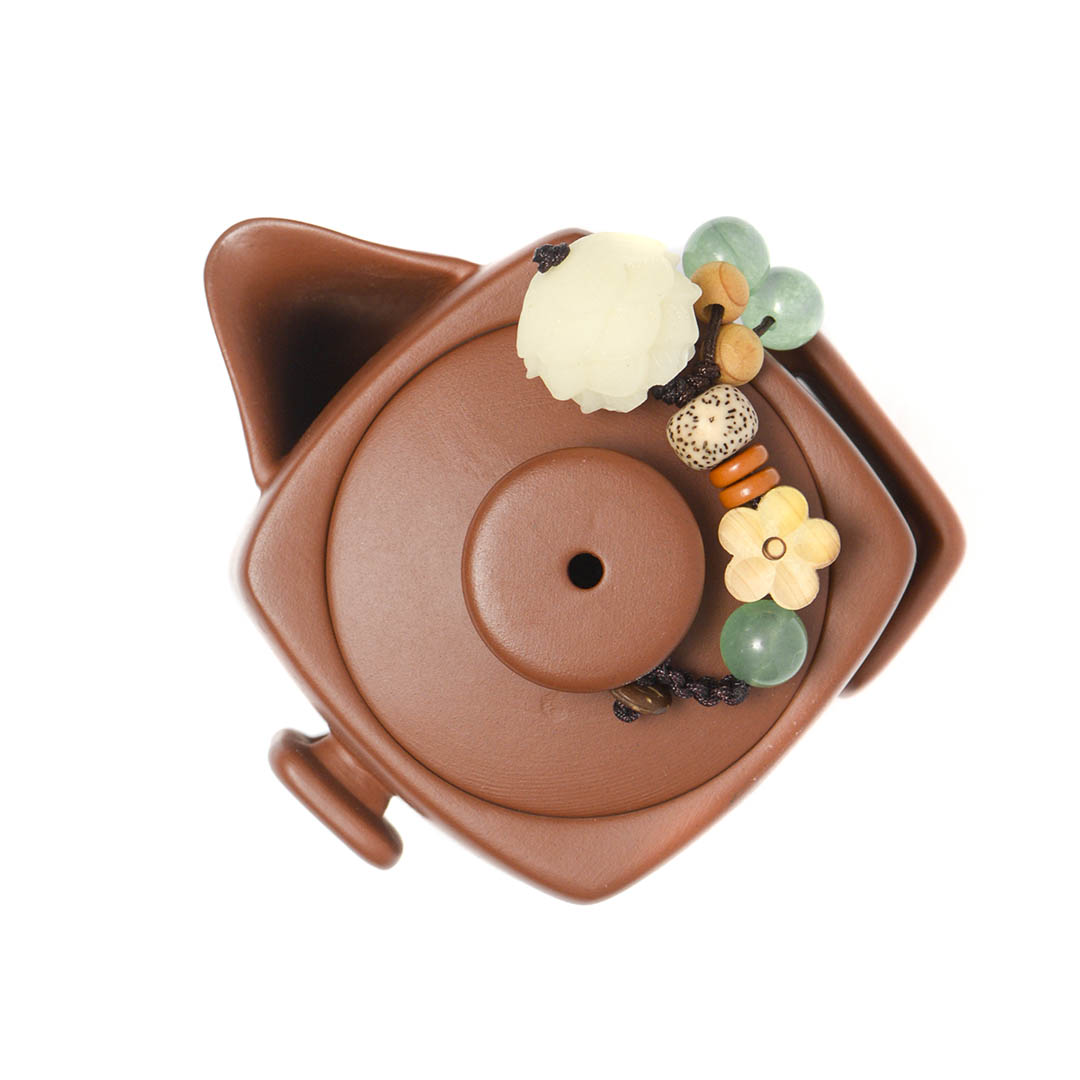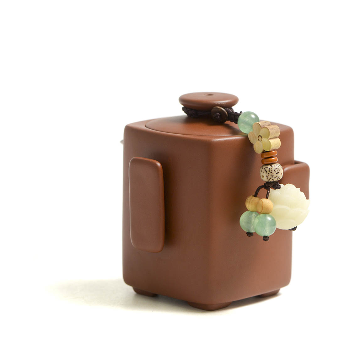 Объем - 120 мл. Сито классическое, 27 отверстий. На крышке присутствует Даоши — шнурок с декором, включающим бусины и цветы, для более удобного использования крышечки.