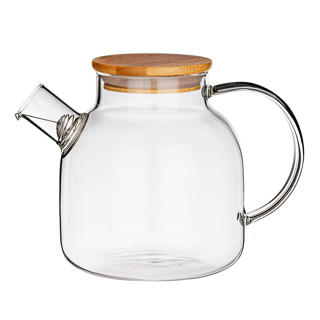 Большой чайник из термостойкого стекла. Можно использовать как на электроплитах, так и с открытым пламенем. Рабочий диапазон температур от -20 до +150 градусов Цельсия.Крышка полностью выполнена из бамбука. Объем - 1000 мл. Съемное спиралевидное металлическое сито.Приятного чаепития! Читать полностью