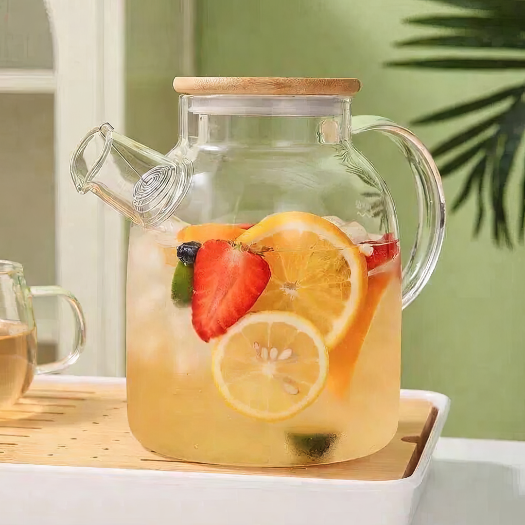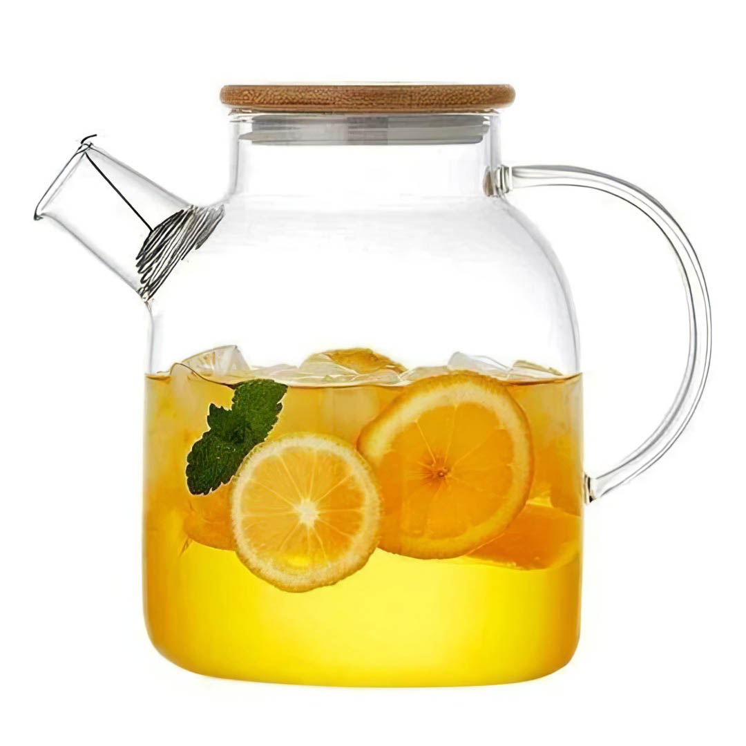 Большой чайник из термостойкого стекла. Можно использовать как на электроплитах, так и с открытым пламенем. Рабочий диапазон температур от -20 до +150 градусов Цельсия.Крышка полностью выполнена из бамбука. Объем - 1600 мл. Съемное спиралевидное металлическое сито.Приятного чаепития! Читать полностью