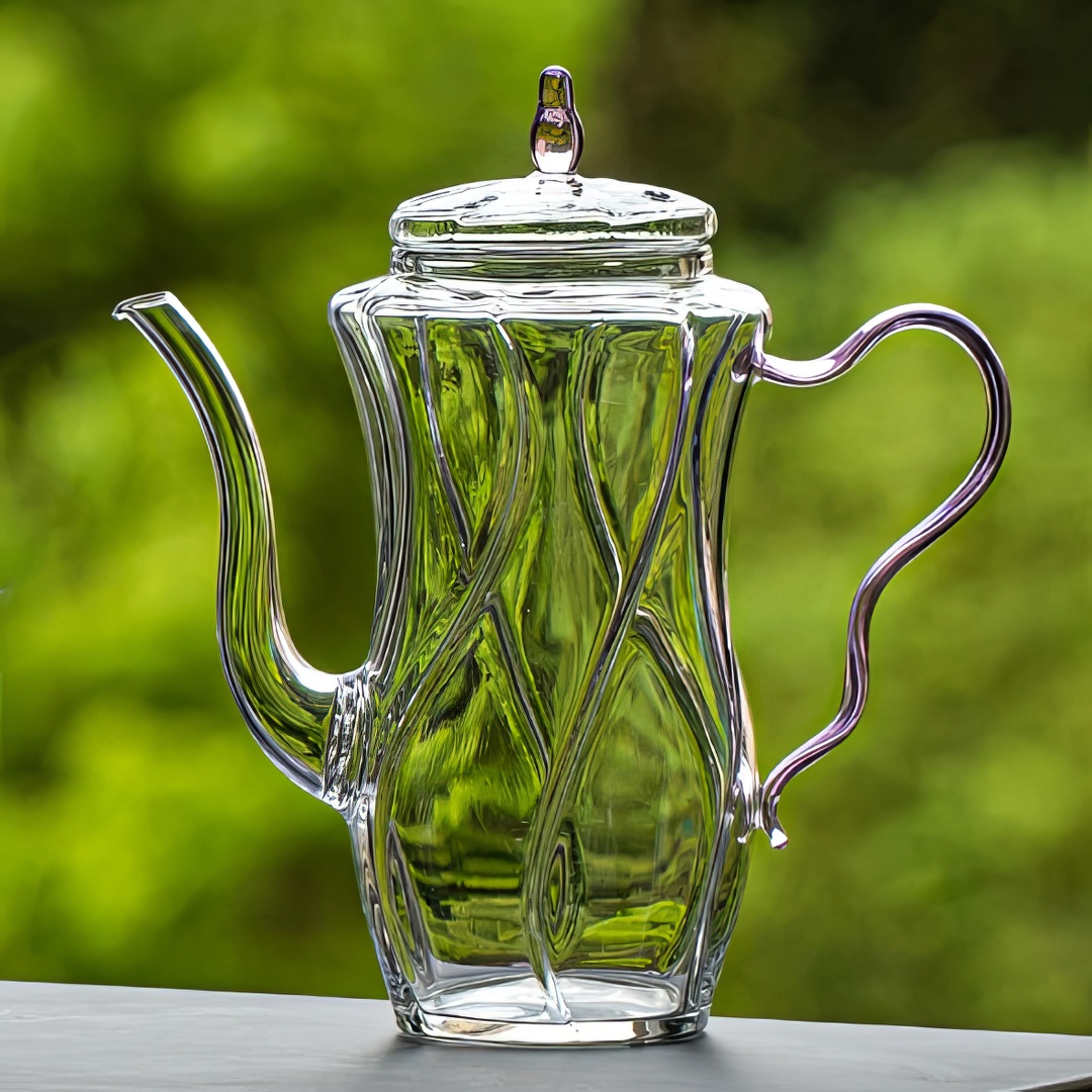 Изящный чайник из термостойкого стекла. Можно использовать как на электроплитах, так и с открытым пламенем.