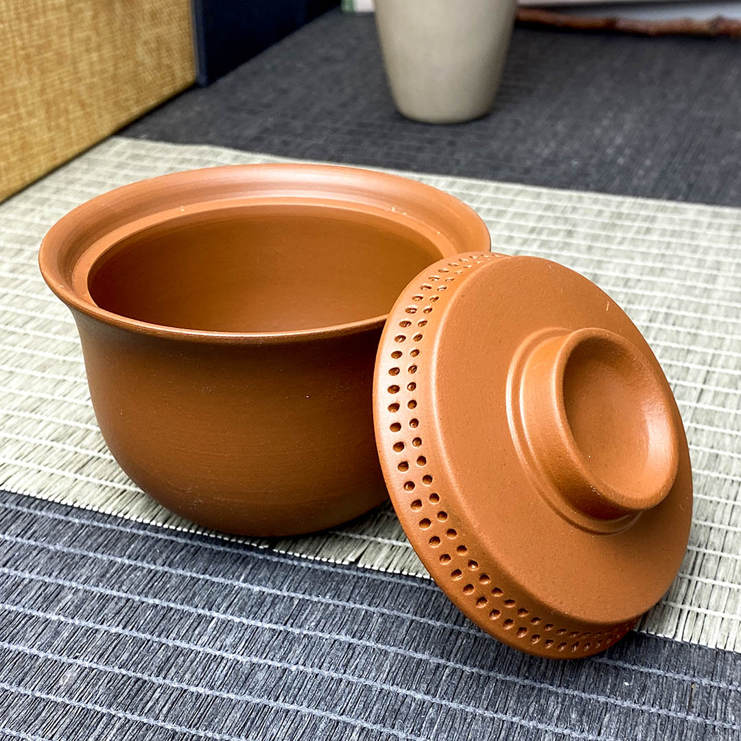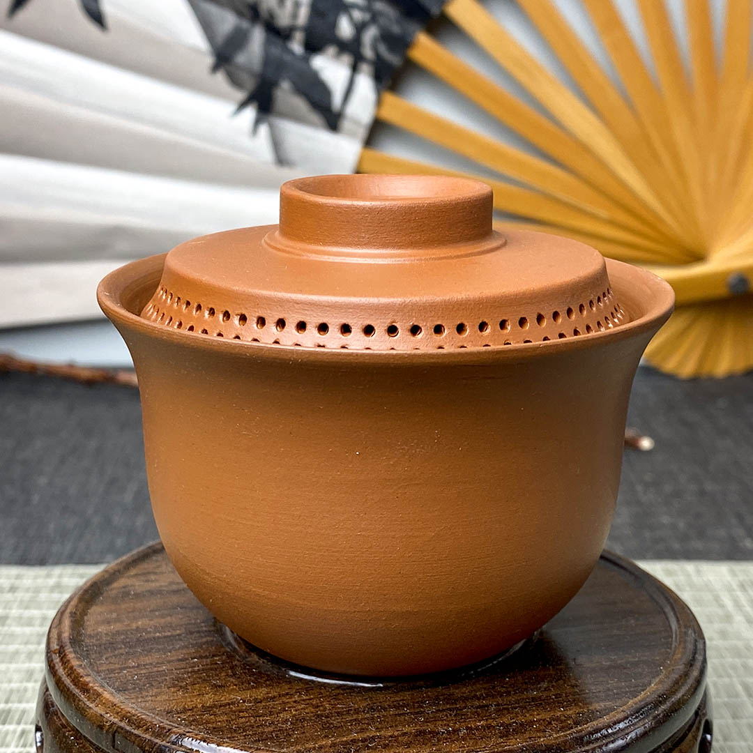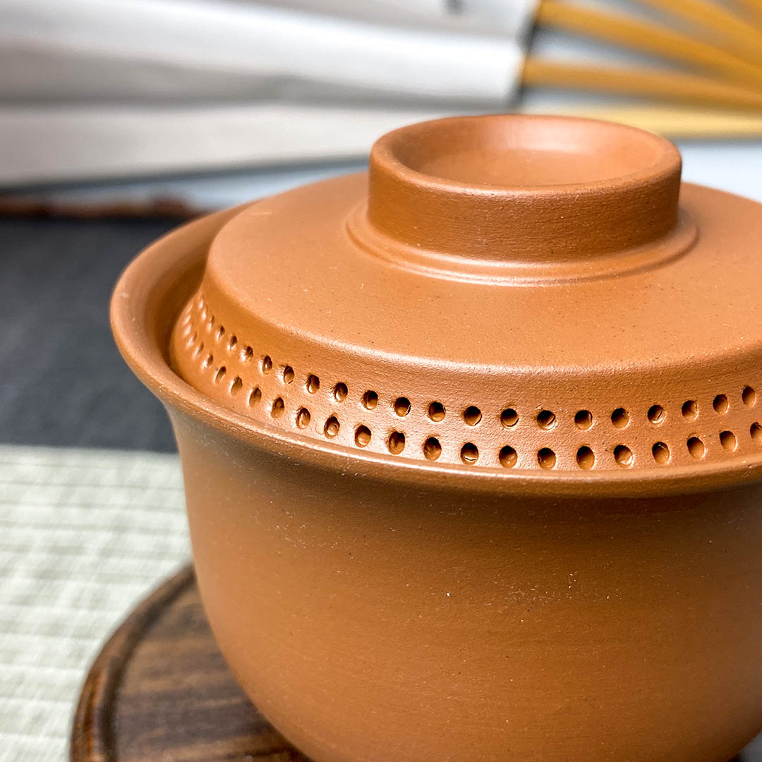 Гайвань из города Чаочжоу, провинция Гуандун - родина знаменитейших улунов - Дань Цунов. Изготавливаются на гончарном круге, вручную. Стенки тоньше средних.Сито расположено по кромке на 360 градусов, что обеспечивает очень быстрый слив. Двигать крышечку нет необходимости.Гайвань поставляется в картонной коробке.Материал: глина из Чаочжоу.Объем до крышки: 120 мл.Приятного чаепития! Читать полностью