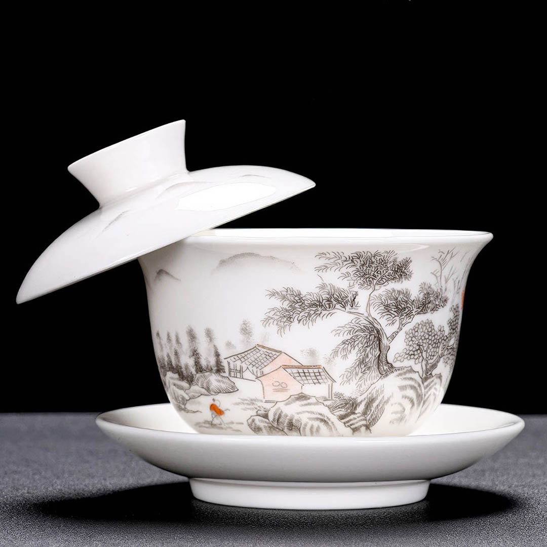 Фарфоровая гайвань с блюдцем, родом из уезда Дэхуа – фарфоровой столицы Китая.Стенки средней толщины. Гайвань украшена красивейшим пейзажем.Материал: фарфор.Объем: 160 мл.Приятного чаепития! Читать полностью