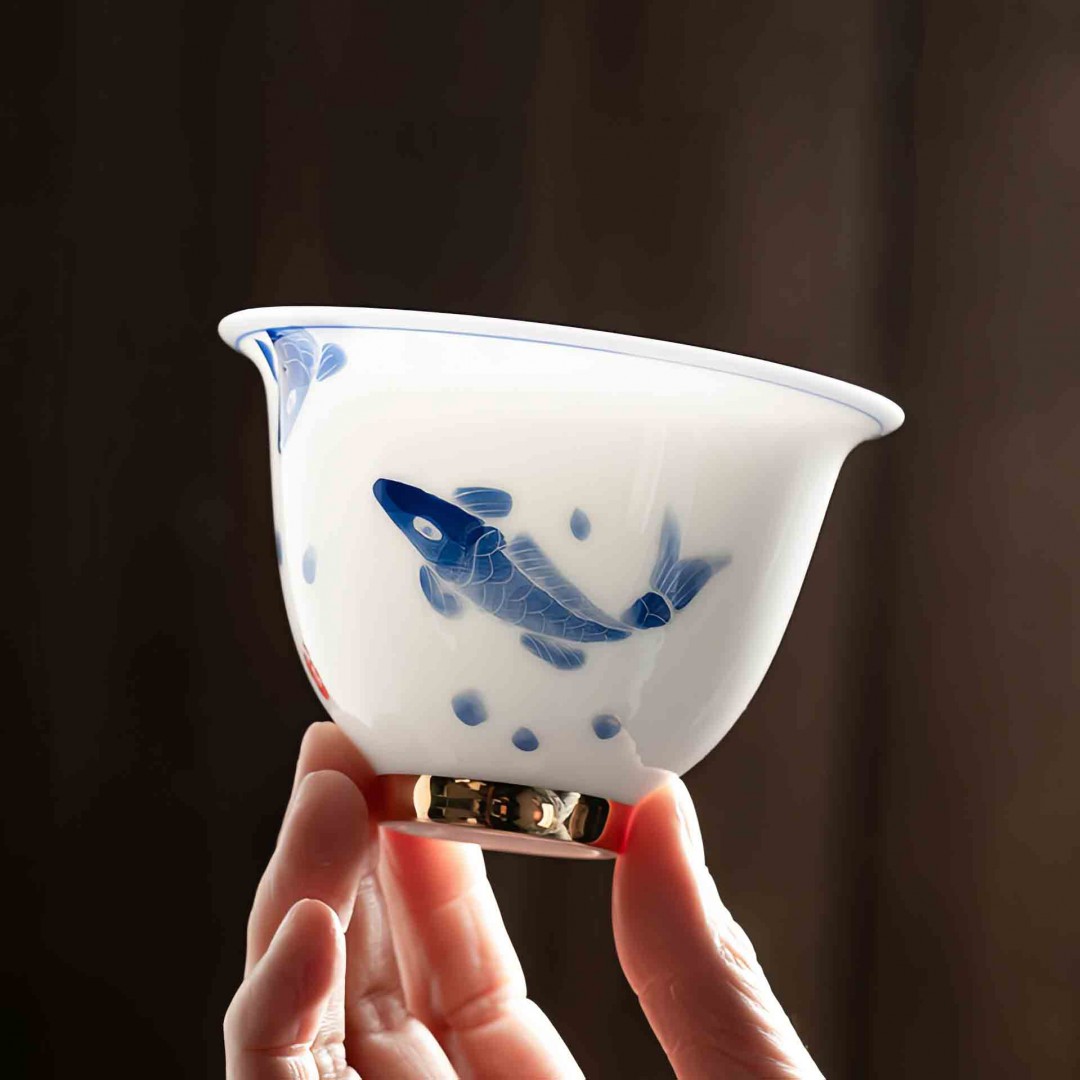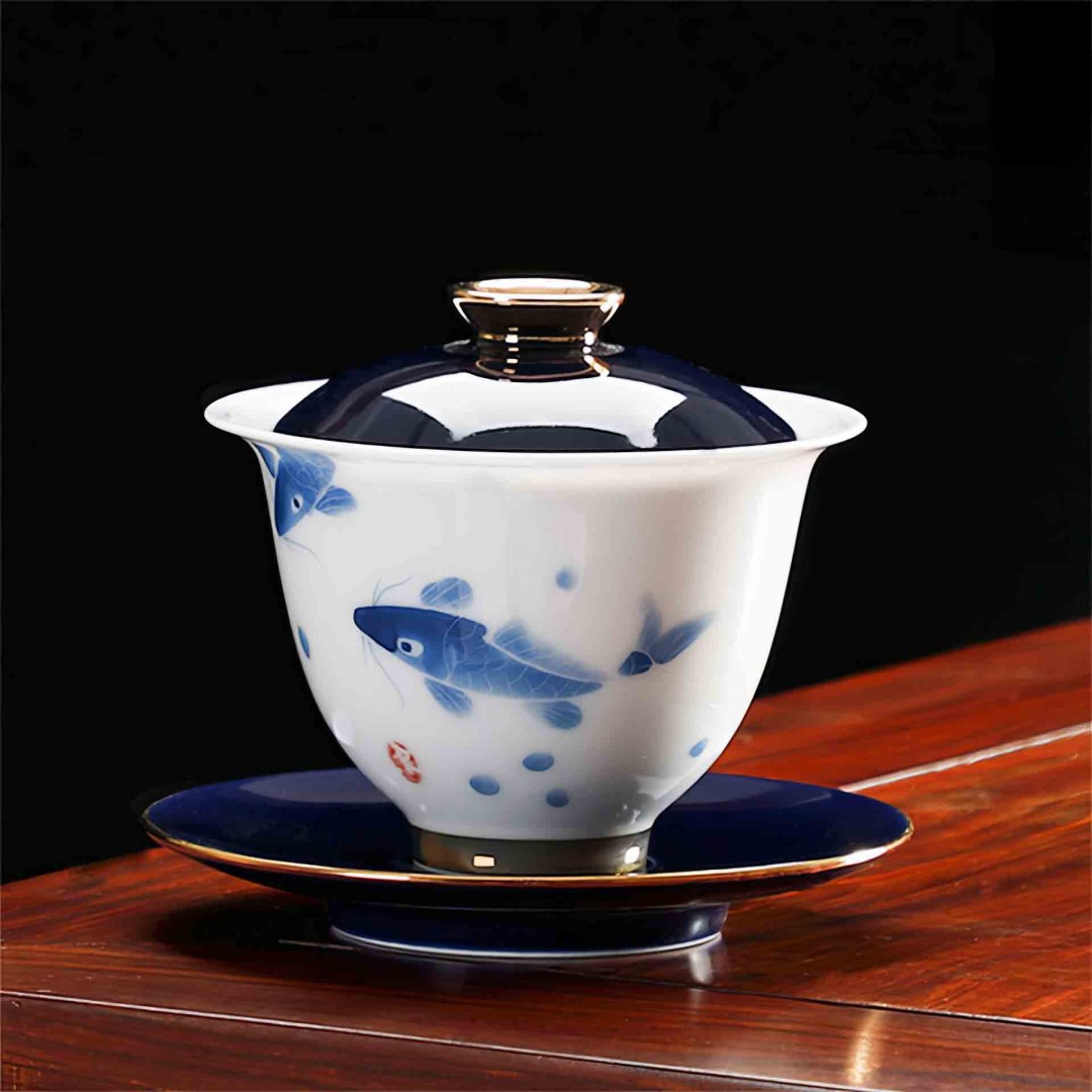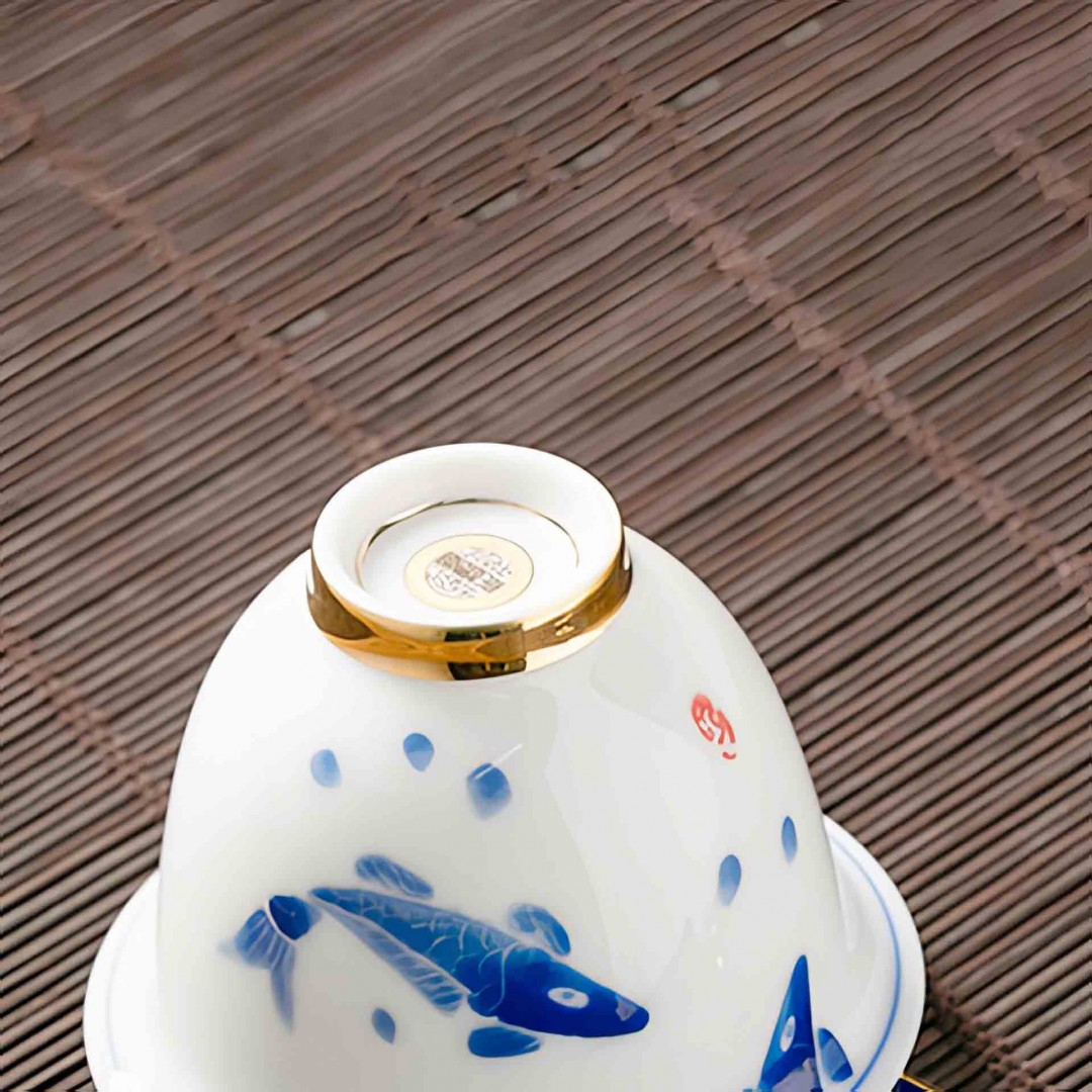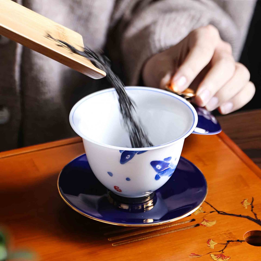 Фарфоровая гайвань с блюдцем, родом из Дэхуа. Ручная роспись, тонкостенные.Технология Сань-Цай — это трехцветное глазурование керамики, где каждый предмет получает уникальную комбинацию оттенков. Ваши гайвани построены по принципу «белая основа + акцентный цвет + золотой (жёлтый)» как третий обязательный компонент. Цвета также имеют культурное значение: синий — бесконечность неба и глубина воды, золото — власть. Оберег от хаоса, символ контроля и порядка.Полный объем: 170 мл.Рабочий объем: 140 м Читать полностью