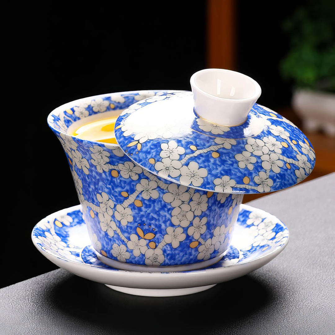Стенки средней толщины. Гайвань украшена Сливой, которая укрылась под снегом. Слива символизирует жизнелюбие, выносливость, возрождение жизни. Является одним из четырех благородных растений Китая.