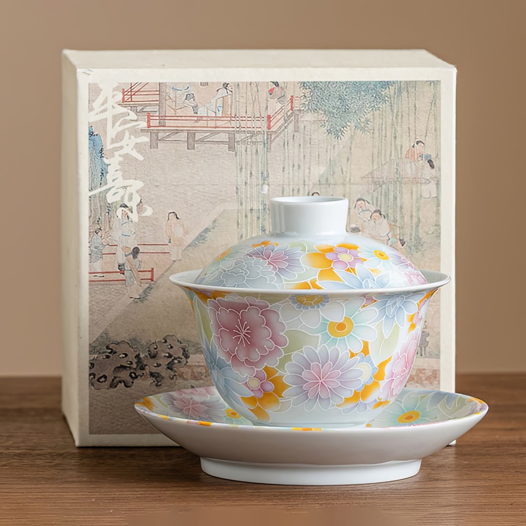 Фарфоровая гайвань с блюдцем, родом из уезда Цзиндэчжэнь. Стенки тоньше средних. Гайвань покрыта нежной глазурью небесного цвета и украшена рельефными изображениями цветов.Поставляется в подарочной коробке.Материал: фарфор.Объем: 180 мл.Приятного чаепития! Читать полностью
