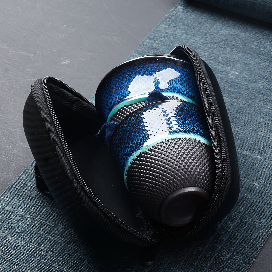 Дорожный набор для чайной церемонии из глины рассчитанный на четыре персоны.