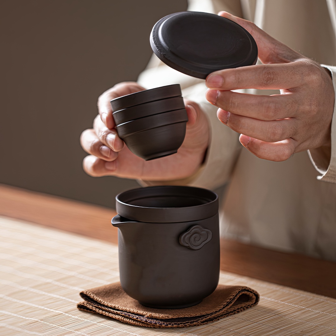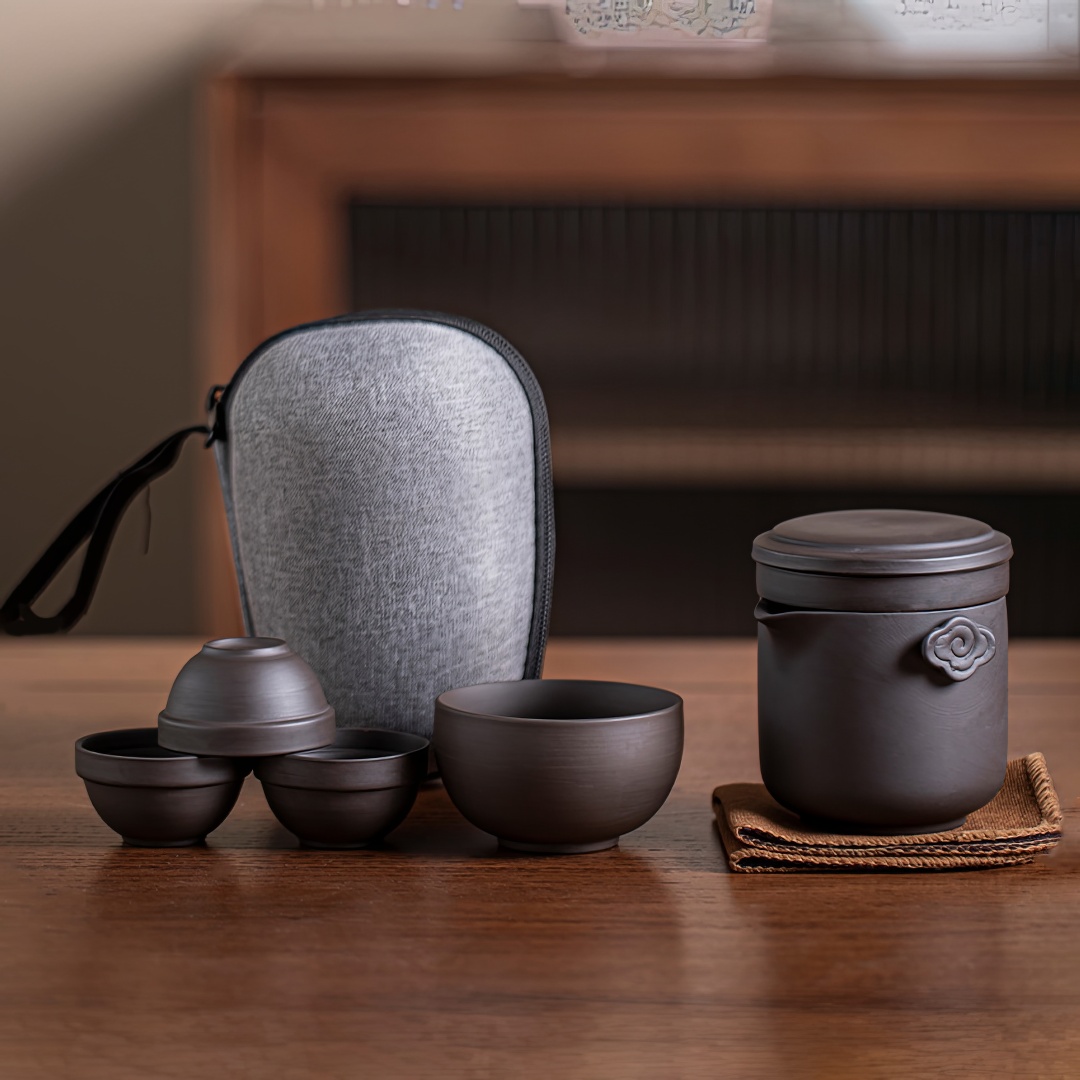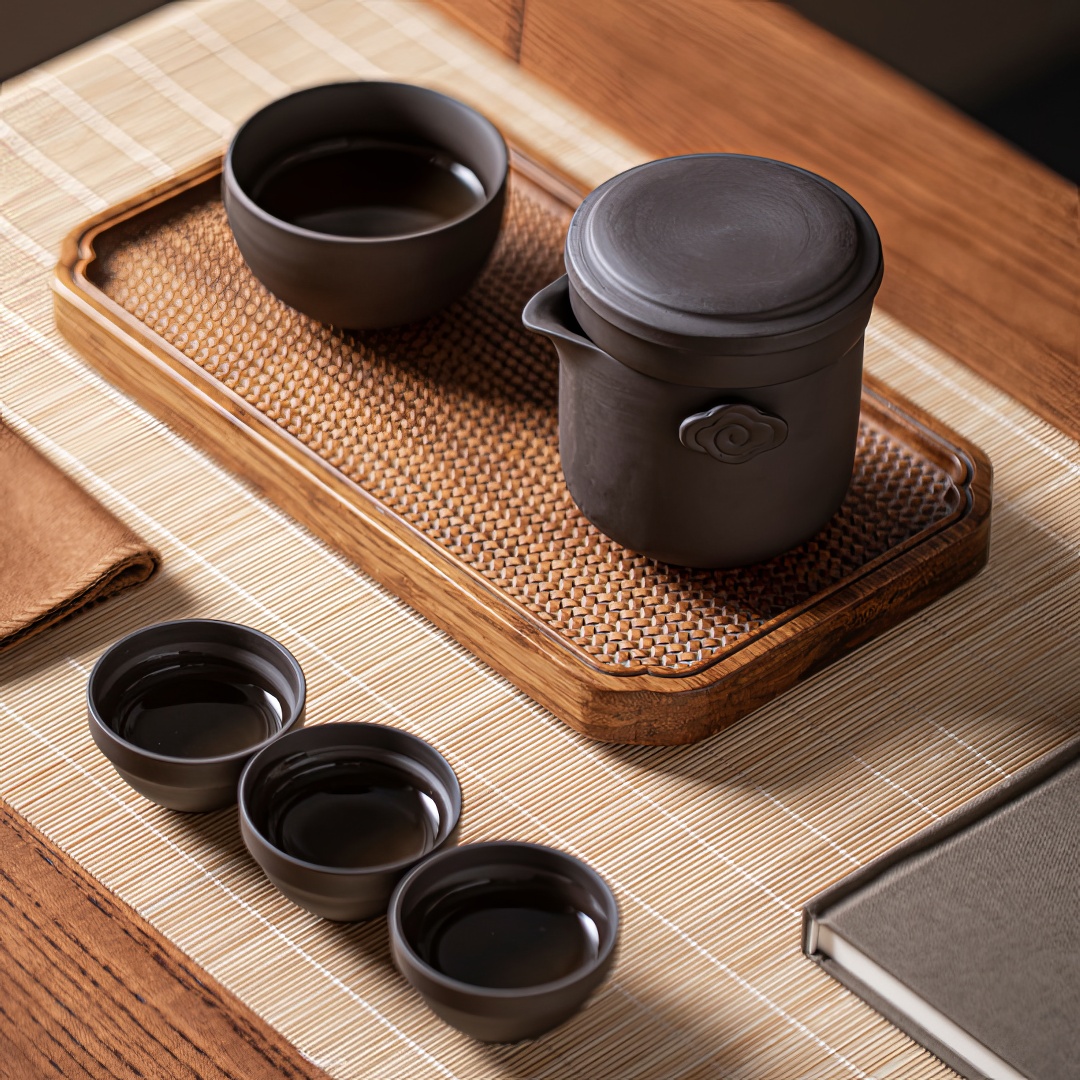 Дорожный набор для чайной церемонии из глины рассчитанный на четыре персоны.