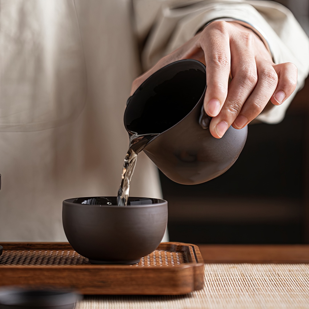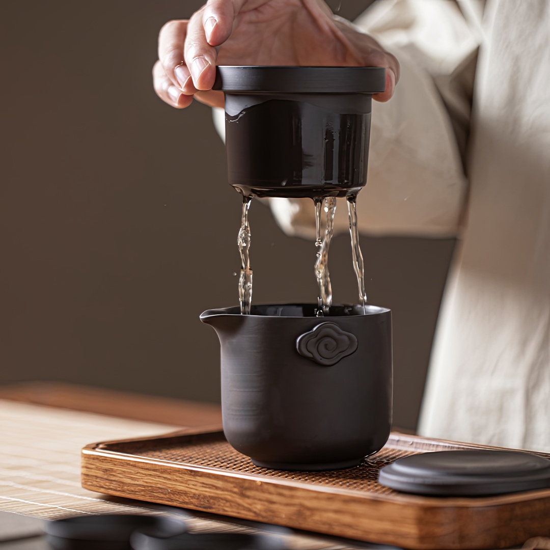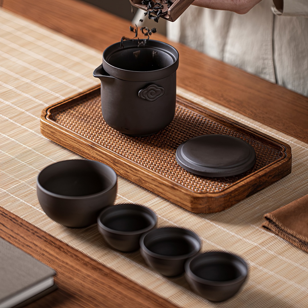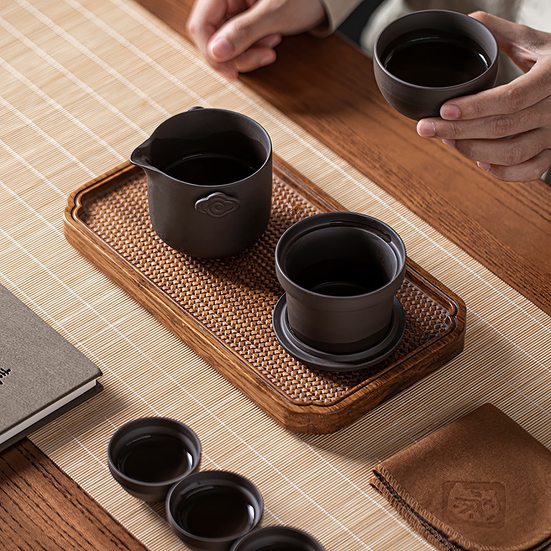Дорожный набор для чайной церемонии из глины рассчитанный на четыре персоны.