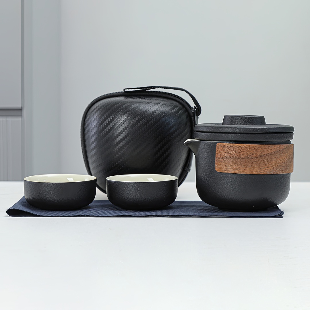 Дорожный набор для чайной церемонии из керамики рассчитанный на две персоны.