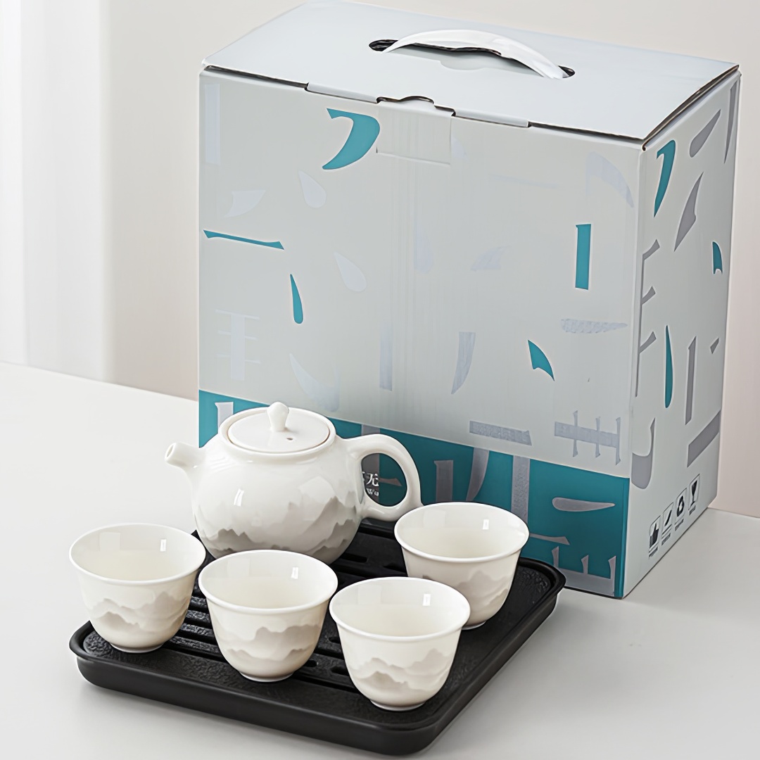 Фарфоровый набор для чайной церемонии, рассчитанный на четыре персоны.