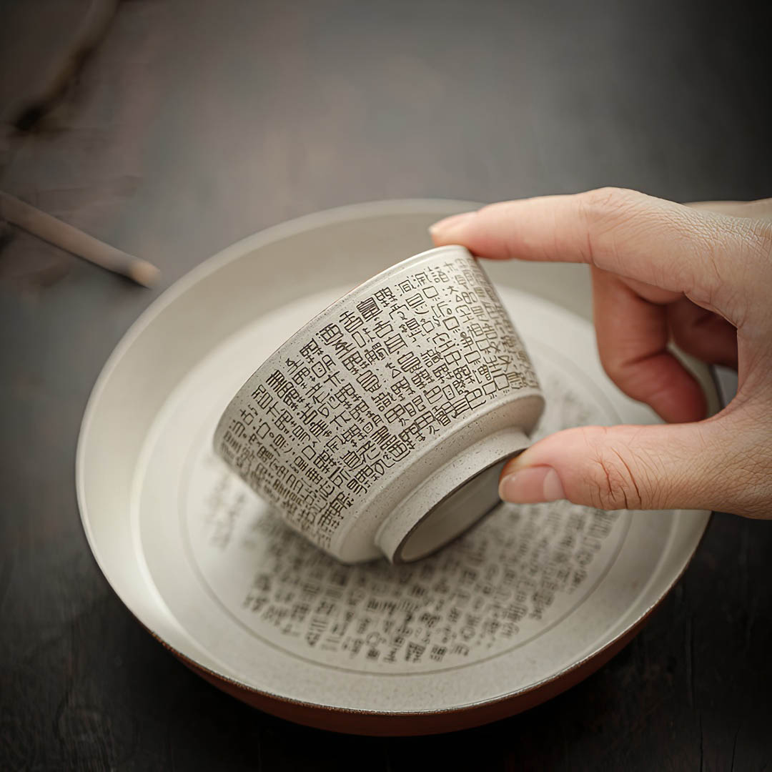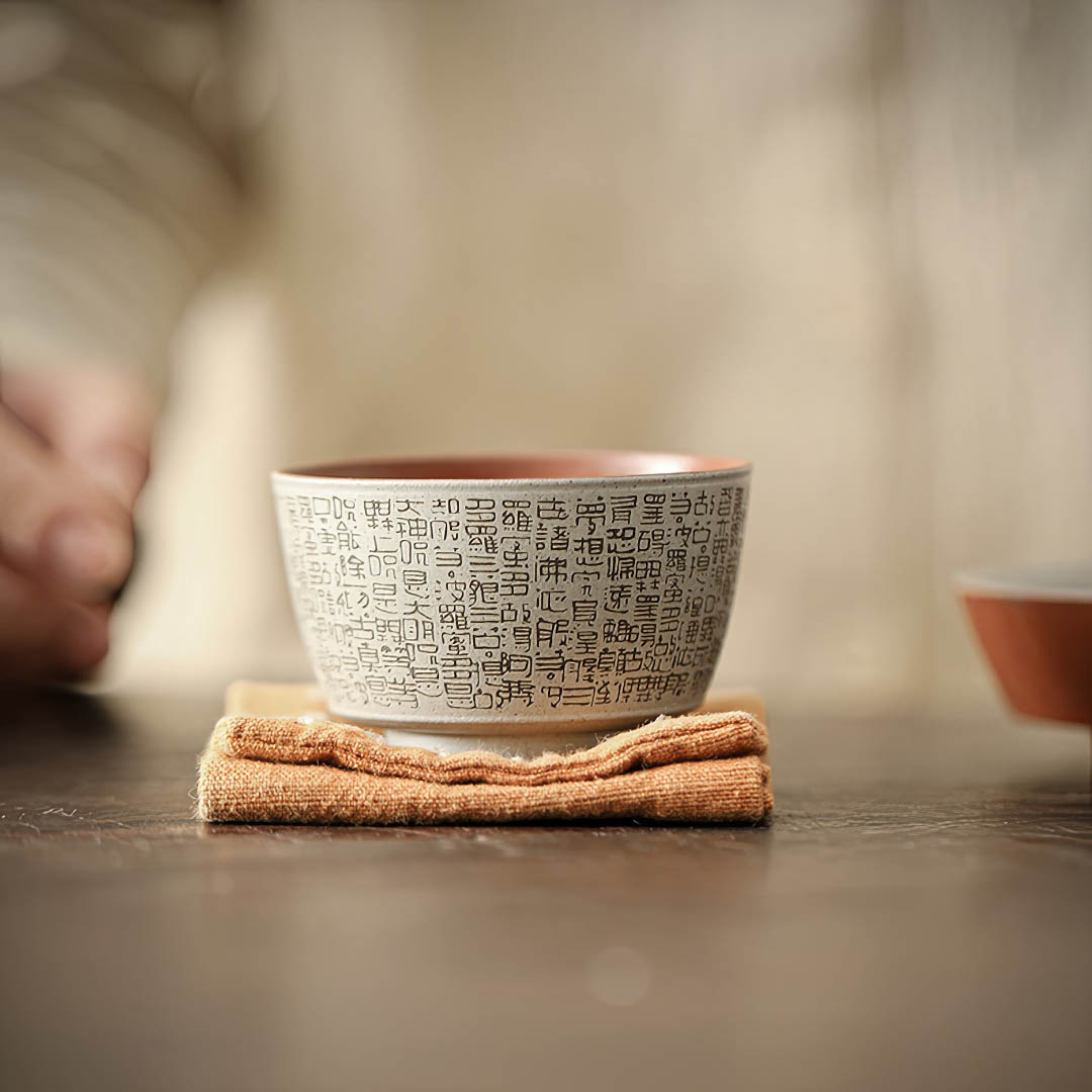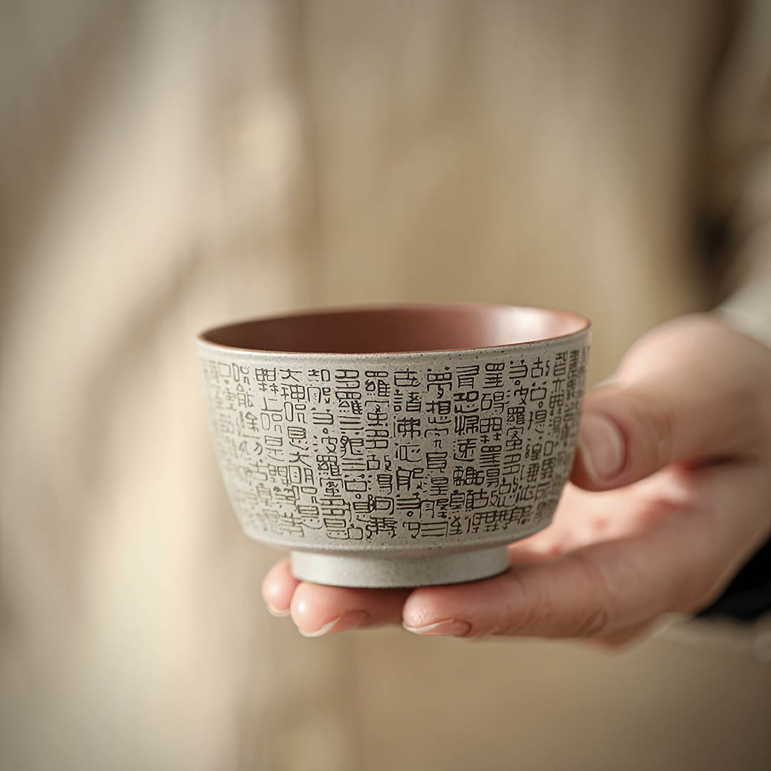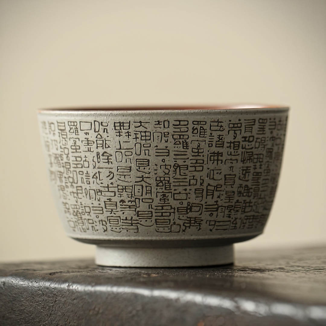 По всему диаметру украшена изящной гравировкой «Сутры Сердца», одного из самых почитаемых буддийских текстов, символизирующего пустотность и просветление. Каждый глоток из такой пиалы становится напоминанием о настоящем моменте и внутреннем равновесии.