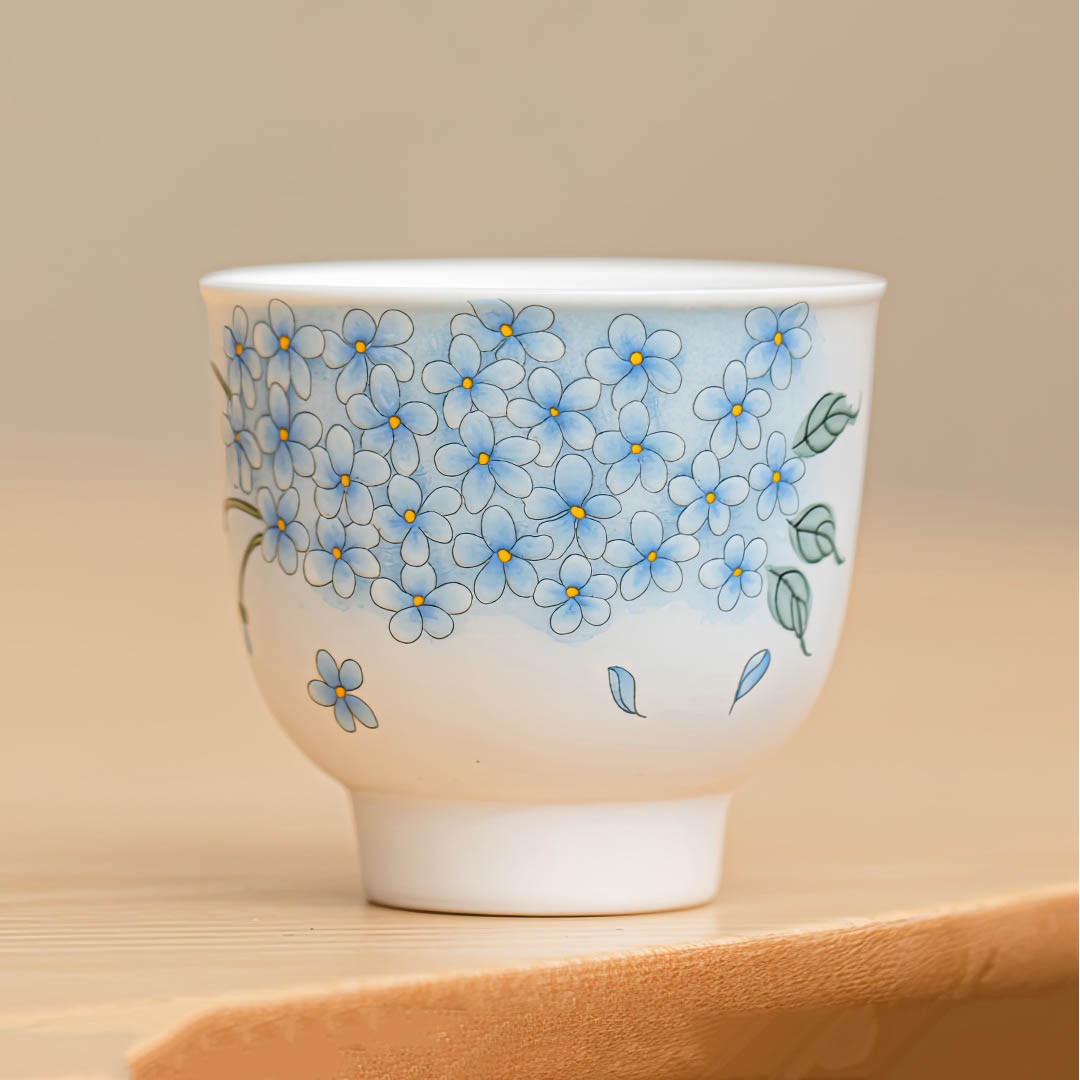 Украшена нежным изображением голубой гортензии. В китайской культуре голубая гортензия символизирует искреннюю любовь, процветание и душевное спокойствие, но из-за ее способности менять цвет она иногда может ассоциироваться с непостоянством.