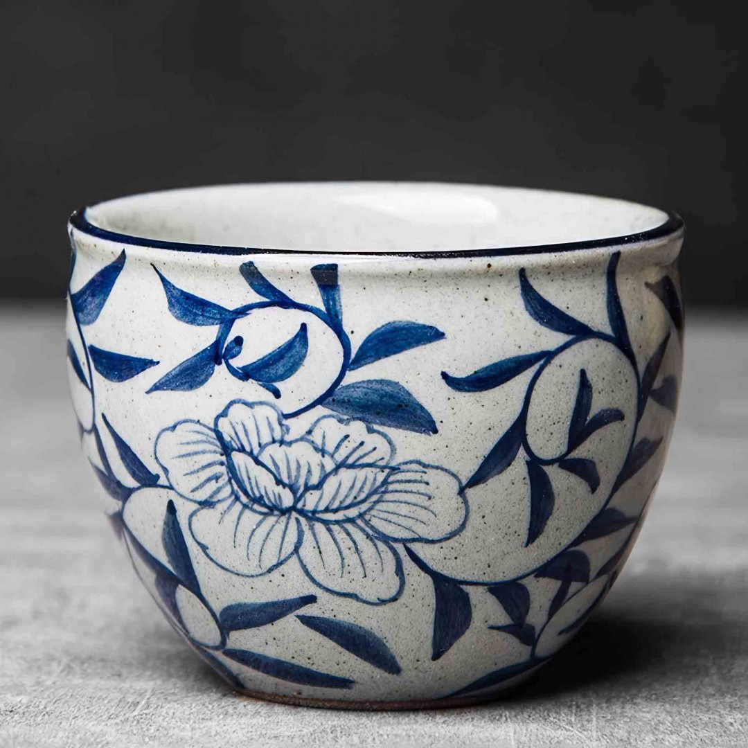 Пиала выполнена из грубой керамики и украшена аутентичным рисунком, что придает изделию древнюю эстетику.