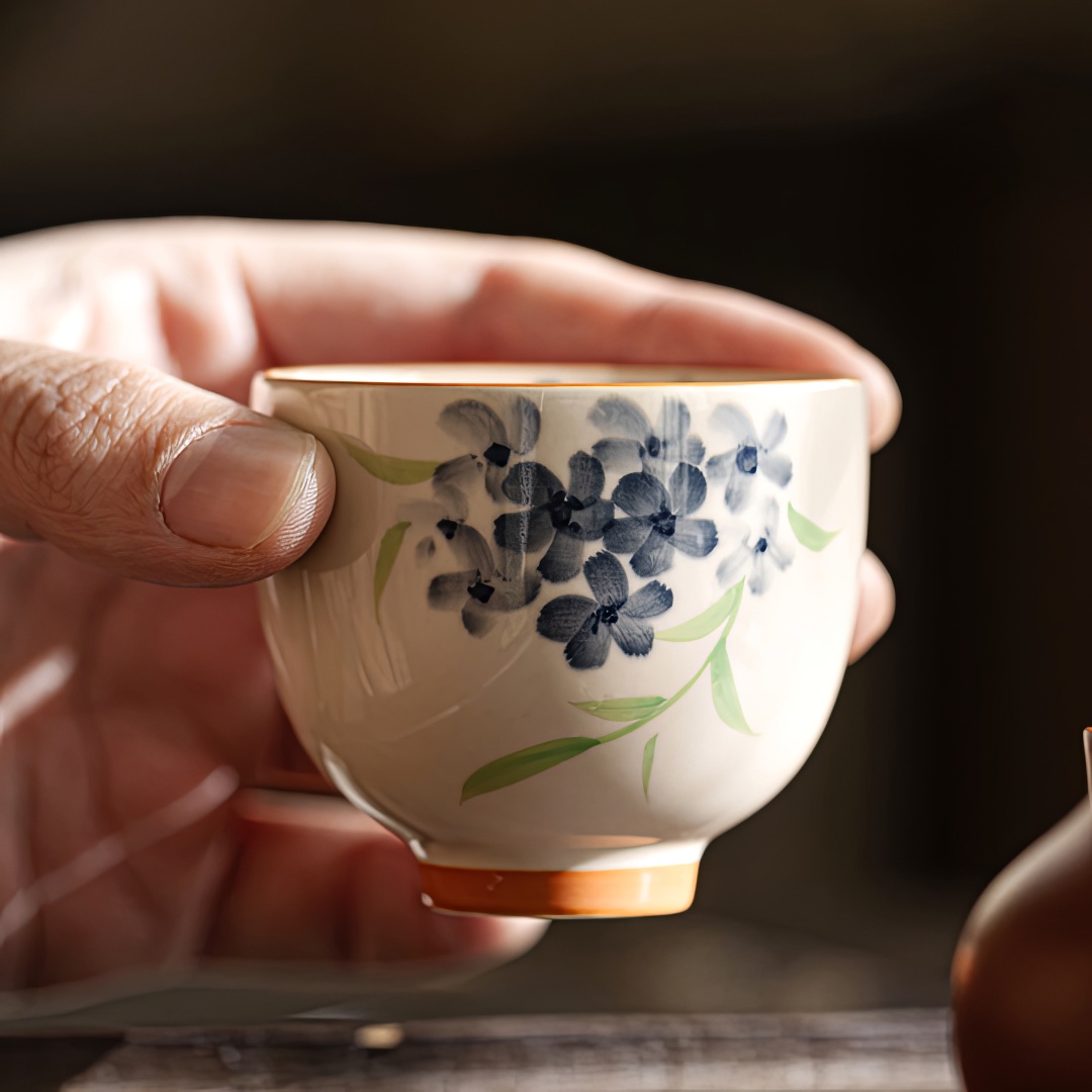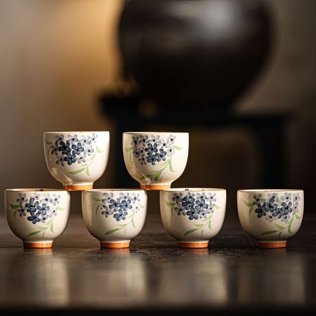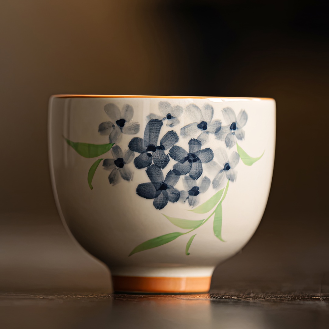Пиала покрыта кремовой нежной глазурью, а также каймой, имитирующей чайную патину. Украшена изображением Гортензии. Ручная роспись. Гортензия в китайской культуре часто символизирует переменчивость и холодную красоту из-за её способности менять цвет в зависимости от кислотности почвы. Это растение также ассоциируется с искренними эмоциями и благодарностью, его нередко дарят, чтобы выразить признательность или прощение. Гортензия символизирует переменчивость и холодную красоту из-за ее способности менять цвет. Также ассоциируется с искренними эмоциями и благодарностью, его нередко дарят, чтобы выразить признательность или прощение.