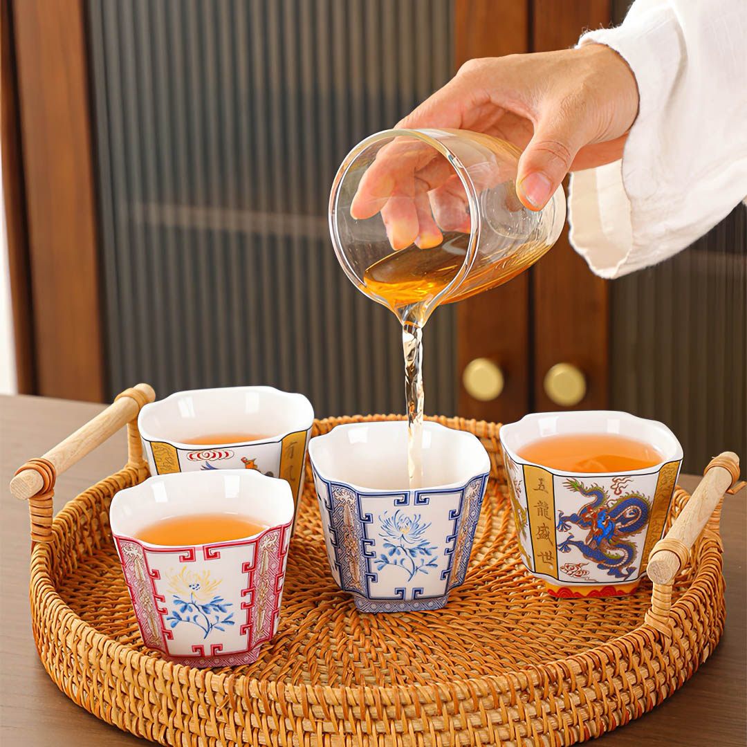 Форма пиал отсылает к «Небесной печати» — это легендарная реликвия Китая, вырезанная из нефрита для императора Цинь Шихуанди. Она воплощала «мандат Небес» и легитимность власти, переходя от династии к династии. После ее таинственного исчезновения в X веке печать стала мифом, а на смену ей пришли другие символы власти.