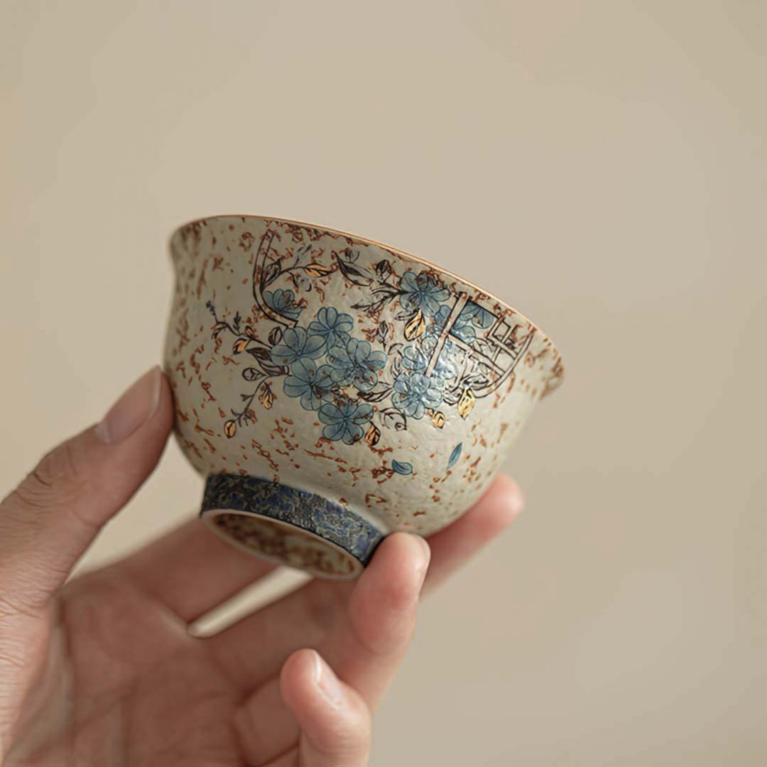 Керамическая пиала родом из провинции Фуцзянь. Стенки чуть тоньше средних. Пиала покрыта авторской глазурью, имитирующей древний камень с золотой инкрустацией.Украшена изображением Оконного Узора. Это народное искусство вырезания из бумаги, которым украшают окна, особенно во время празднования Китайского Нового года. Символизирует счастье и удачу.Материал: керамика. Полный объем: 70 мл.Приятного чаепития! Читать полностью