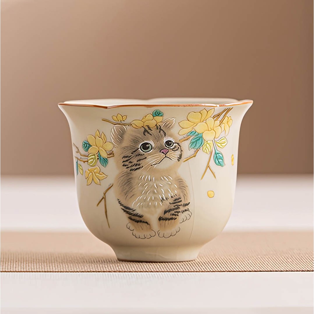 Пиала Жу Яо "Котенок среди Цветов №2"