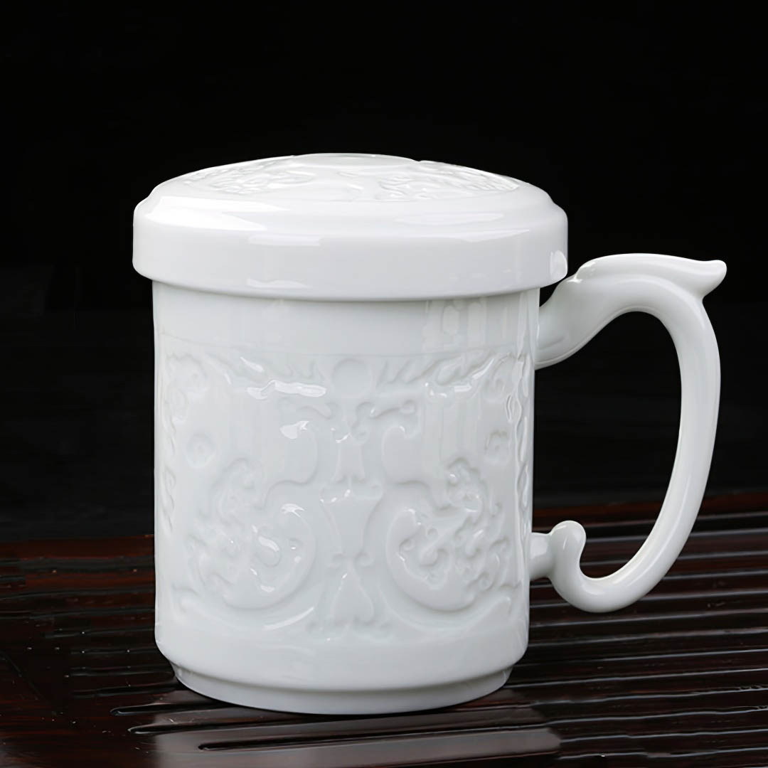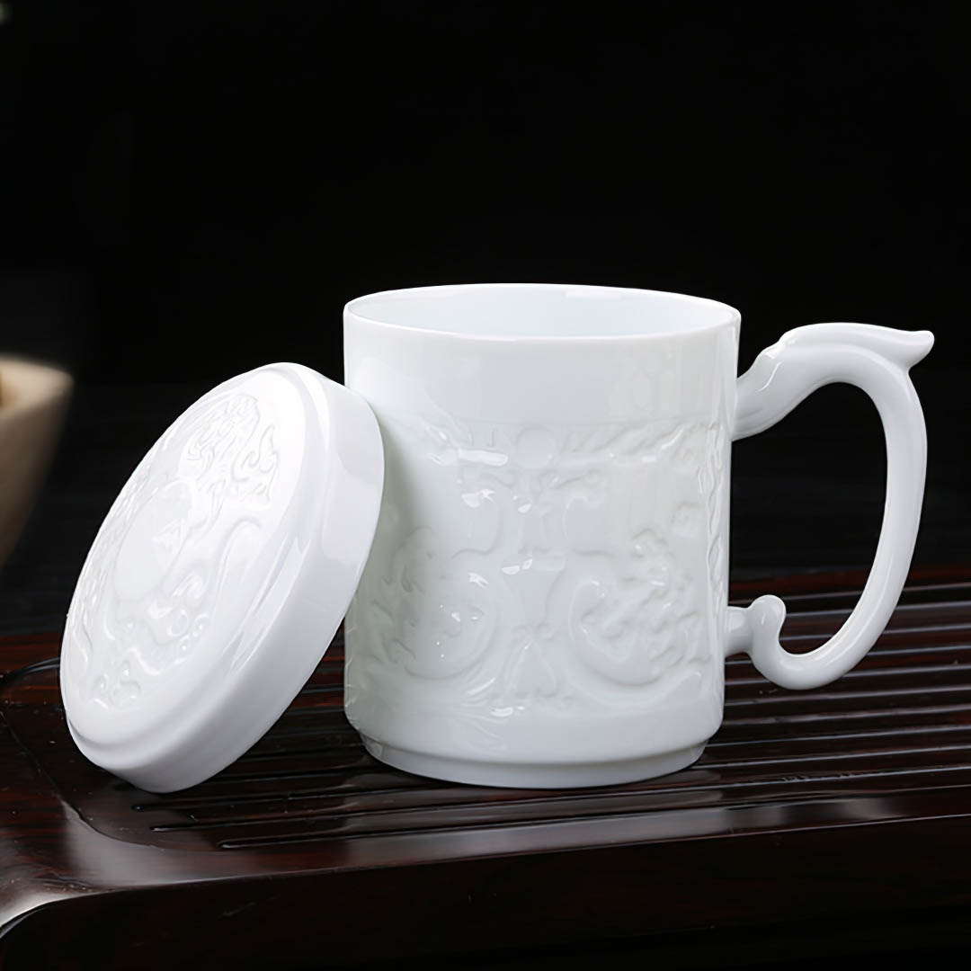 Фарфоровая чашка с крышечкой. Покрыта глянцевой глазурью.Украшена фактурным изображением Дракона.Объем:Рабочий объем - 340 мл.Приятного чаепития! Читать полностью