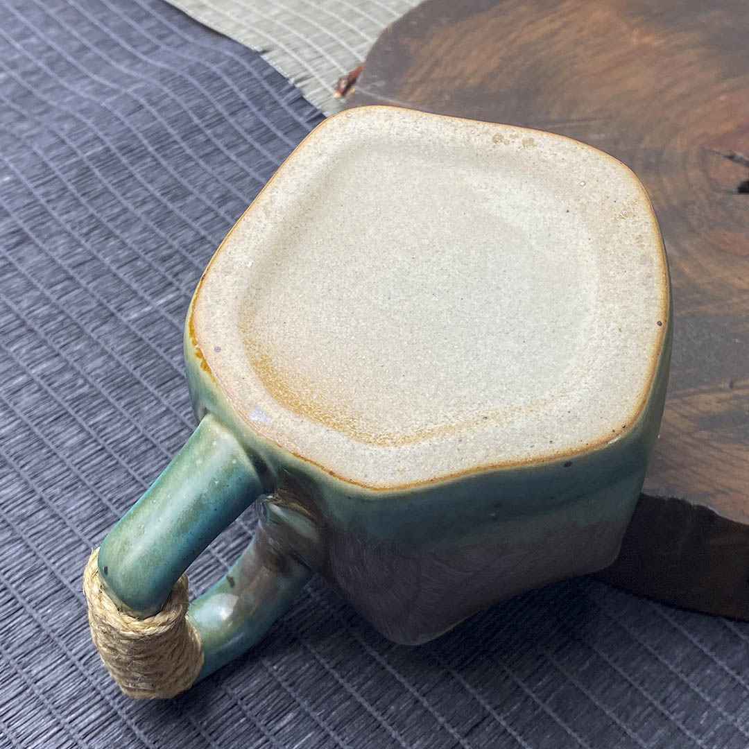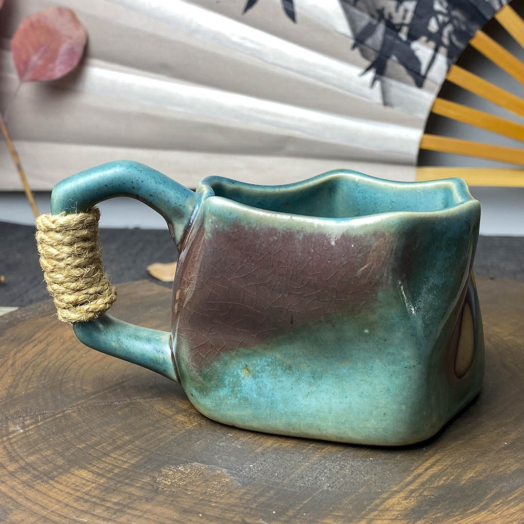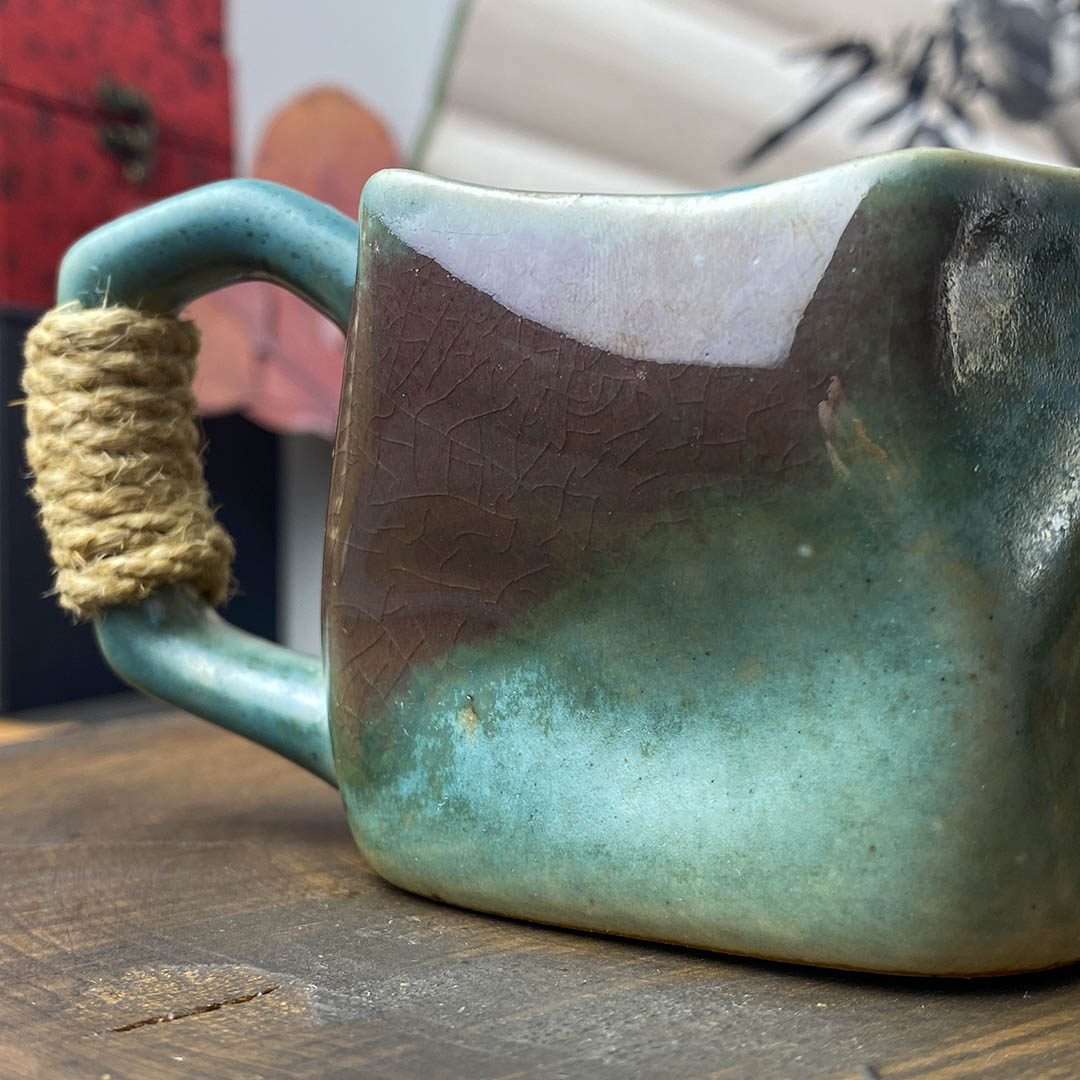 Керамическая чашка родом из Дэхуа. Стенки средней толщины. Ручка перевязана небольшой веревочкой, дабы избежать ожогов при нагревании изделия.