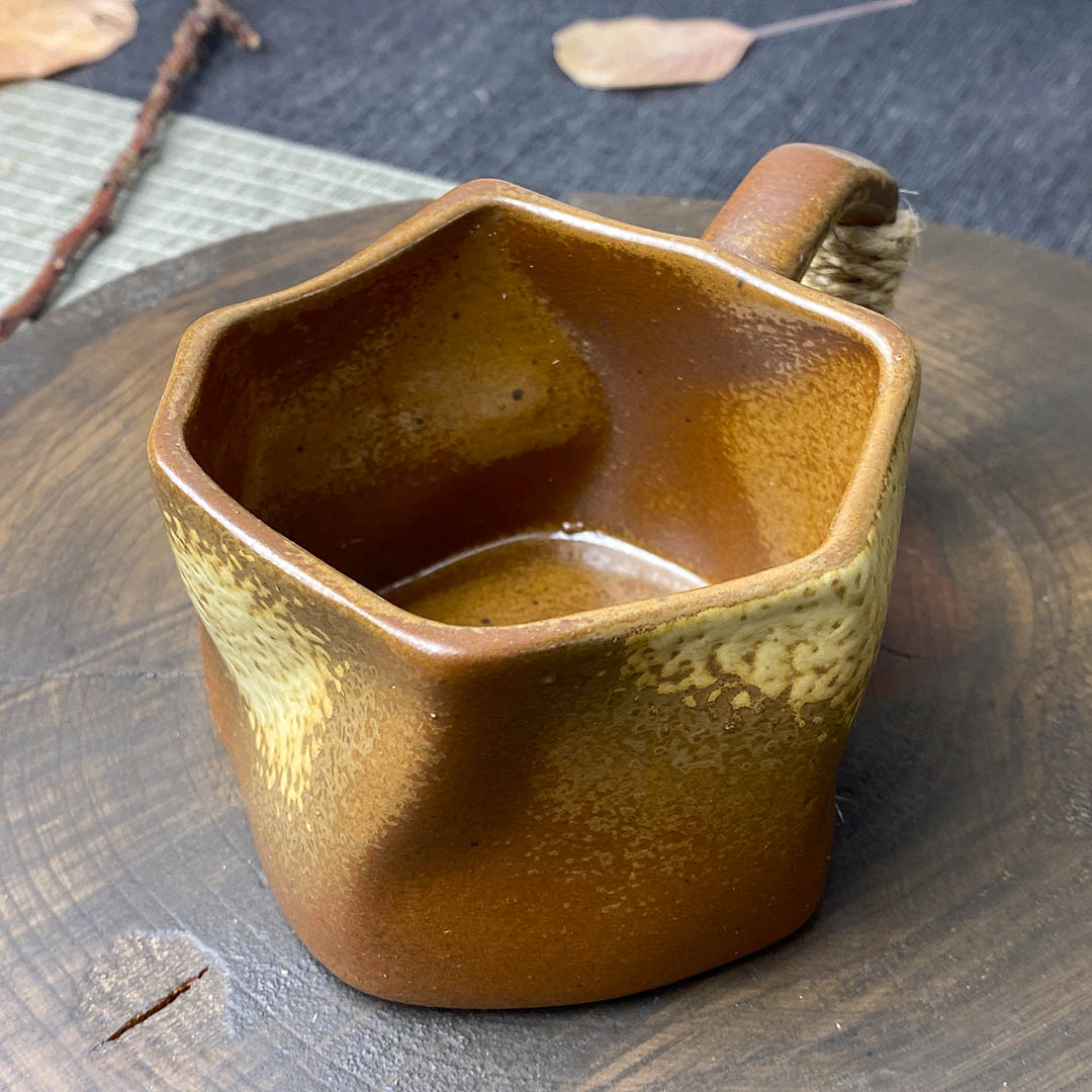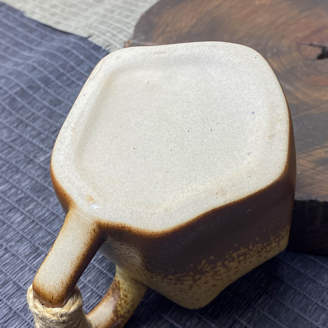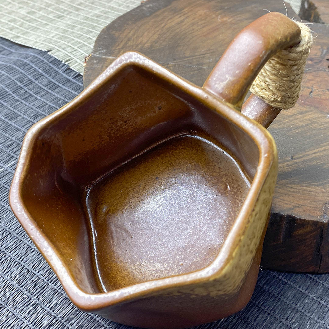 Керамическая чашка родом из Дэхуа. Стенки средней толщины. Ручка перевязана небольшой веревочкой, дабы избежать ожогов при нагревании изделия.