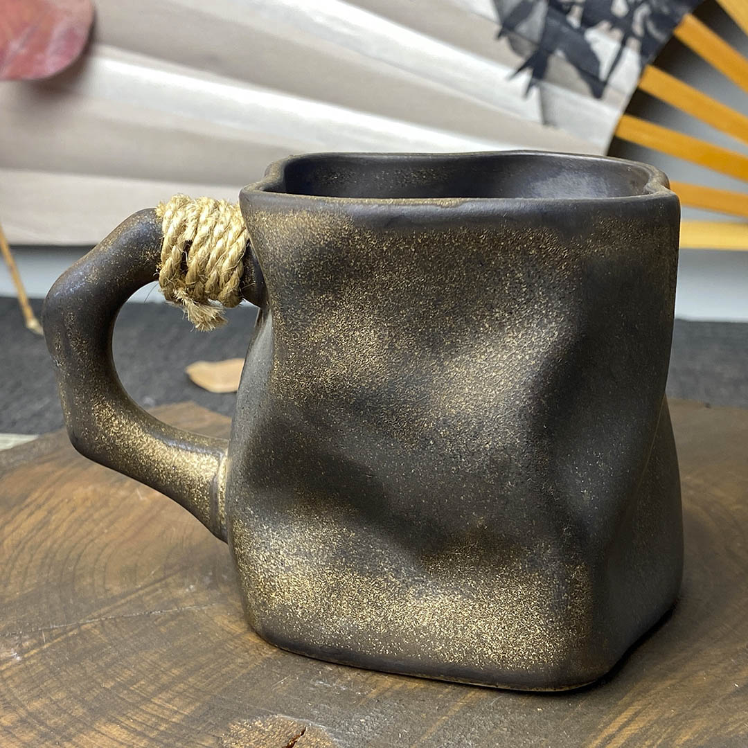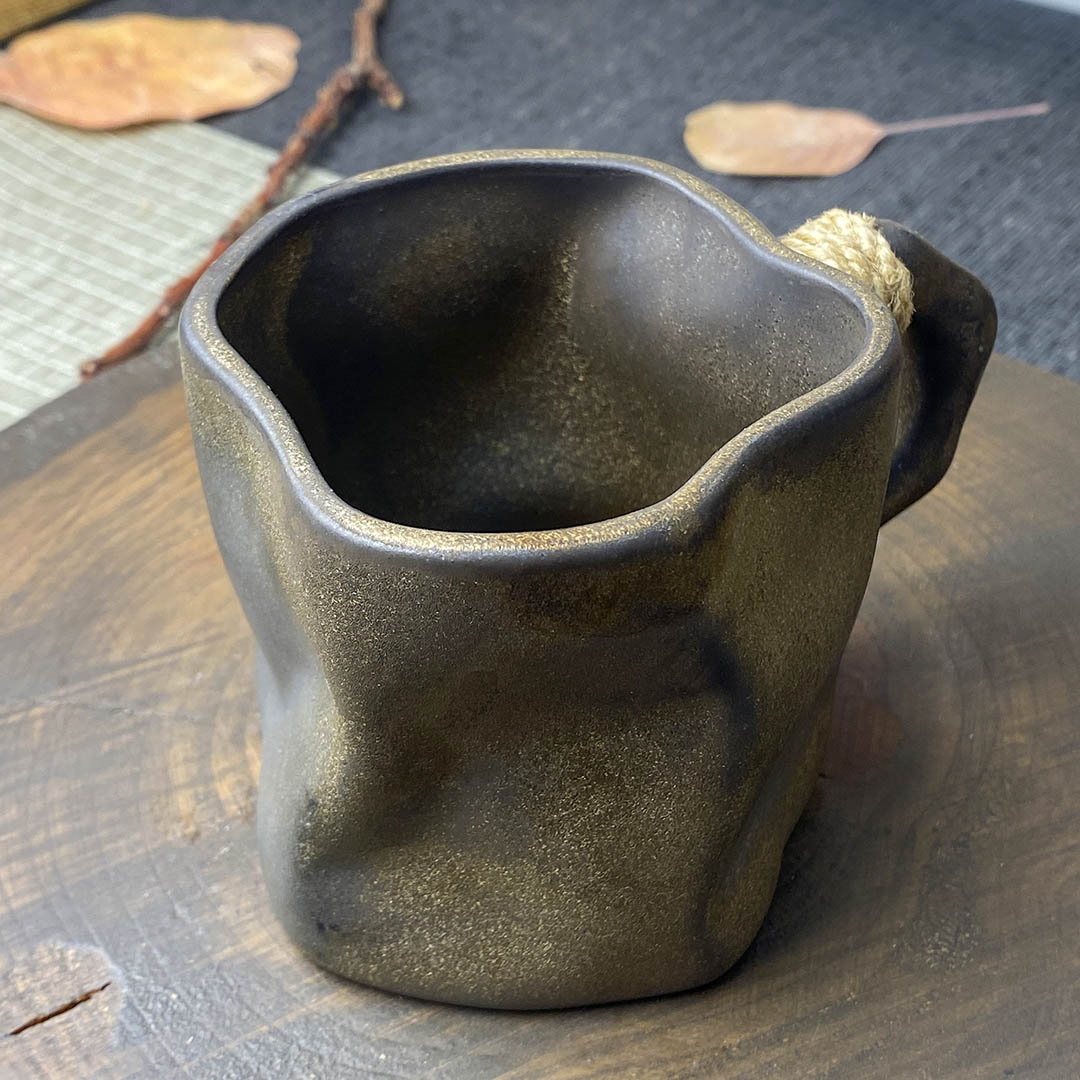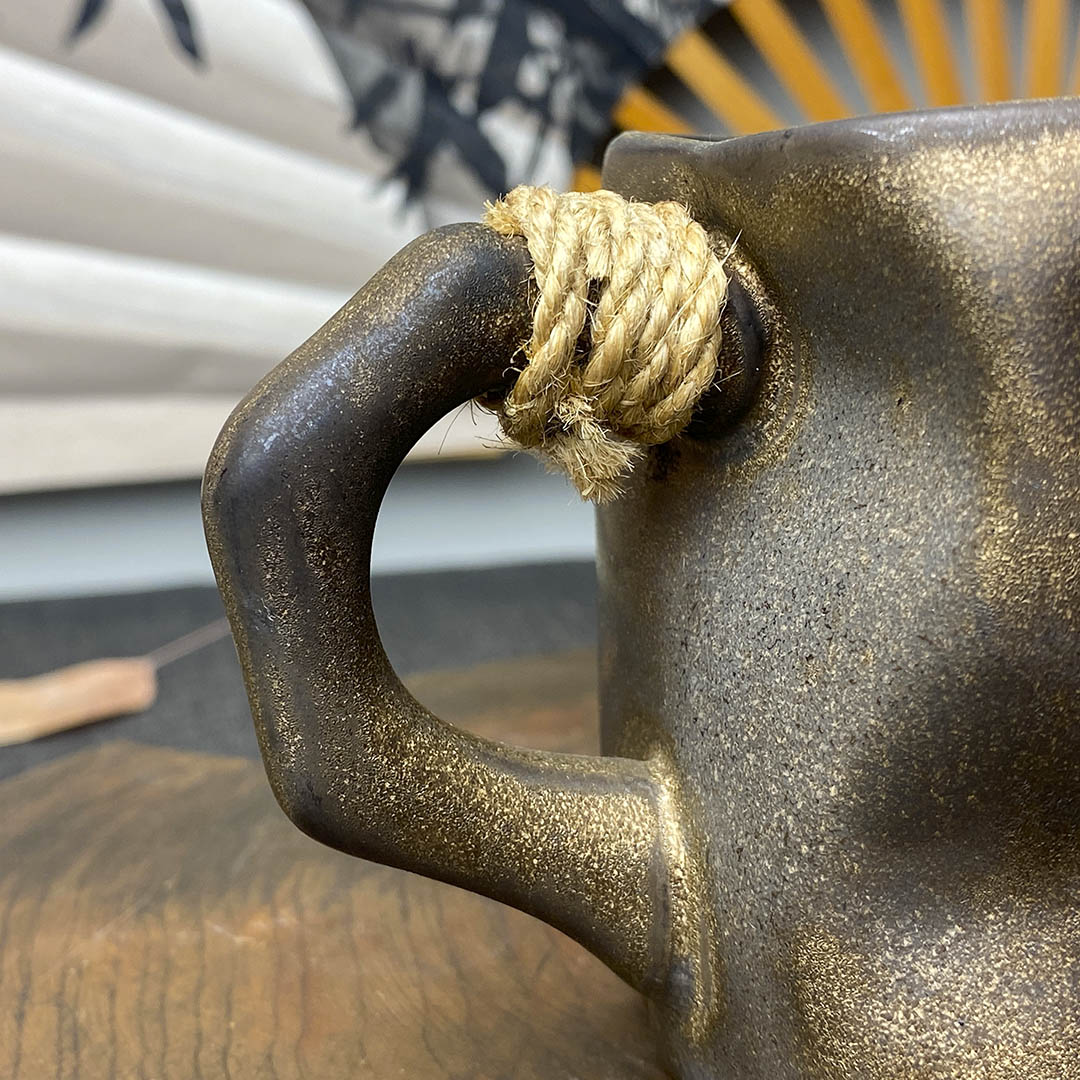 Керамическая чашка родом из Дэхуа. Стенки средней толщины. Ручка перевязана небольшой веревочкой, дабы избежать ожогов при нагревании изделия.