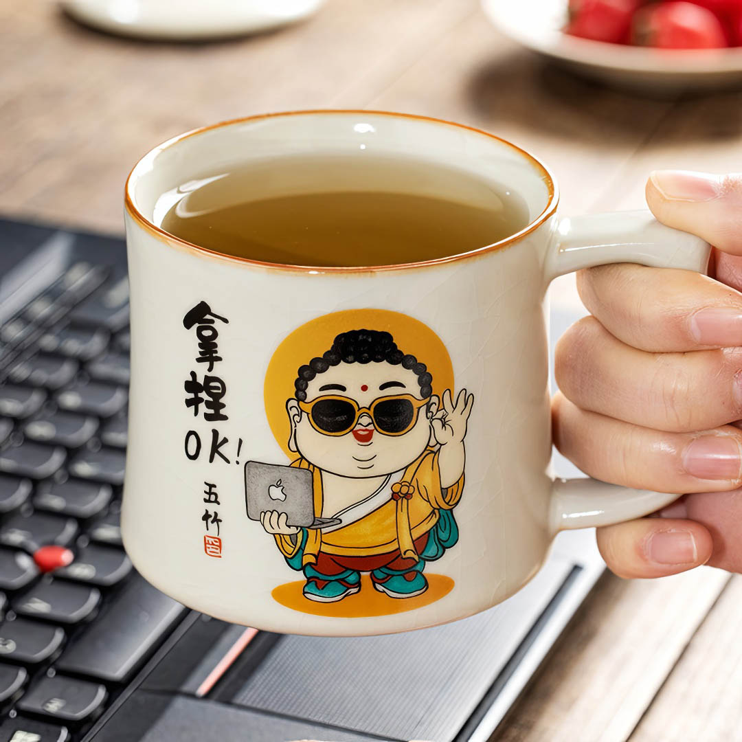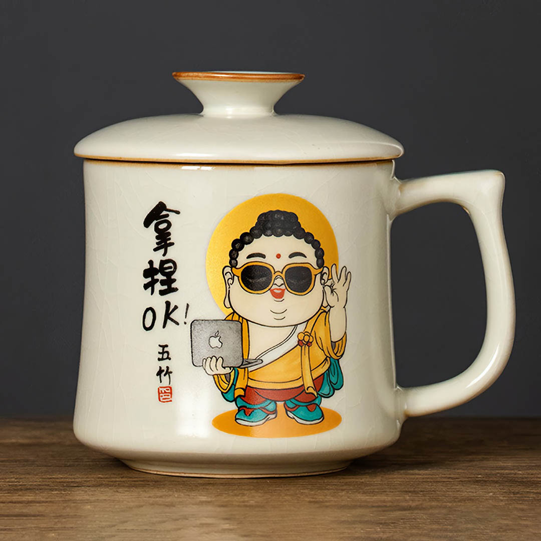 Керамическая чашка с крышечкой. Покрыта глазурью Жу Яо, ее особенность заключается в том, что она покрыта паутинкой мельчайших трещин, которые постепенно заполняются чаем и проявляют уникальный для каждой пиалы рисунок, придавая изделию особый, таинственный налет времени. Толстостенная, тяжелая. Очень удобная ручка. Отличное качество.