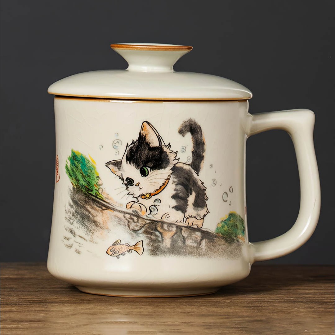 Керамическая чашка с крышечкой. Покрыта глазурью Жу Яо, ее особенность заключается в том, что она покрыта паутинкой мельчайших трещин, которые постепенно заполняются чаем и проявляют уникальный для каждой пиалы рисунок, придавая изделию особый, таинственный налет времени. Толстостенная, тяжелая. Очень удобная ручка. Отличное качество.Объем:Полный объем - 320 мл.Приятного чаепития! Читать полностью