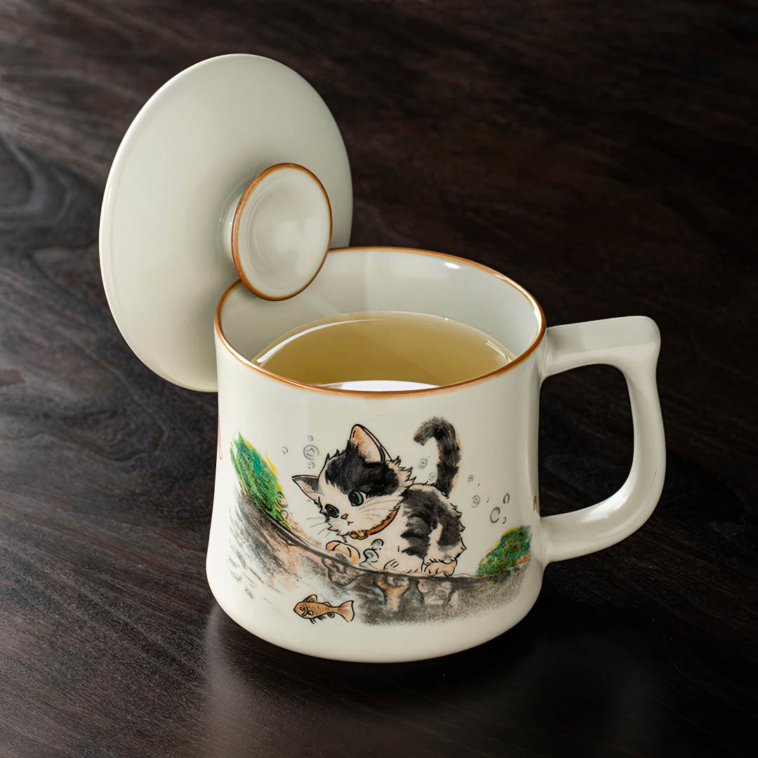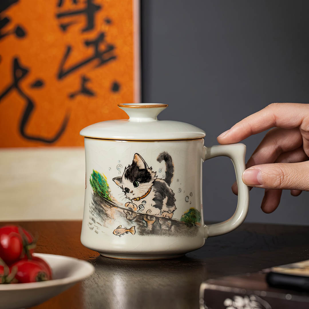 Керамическая чашка с крышечкой. Покрыта глазурью Жу Яо, ее особенность заключается в том, что она покрыта паутинкой мельчайших трещин, которые постепенно заполняются чаем и проявляют уникальный для каждой пиалы рисунок, придавая изделию особый, таинственный налет времени. Толстостенная, тяжелая. Очень удобная ручка. Отличное качество.