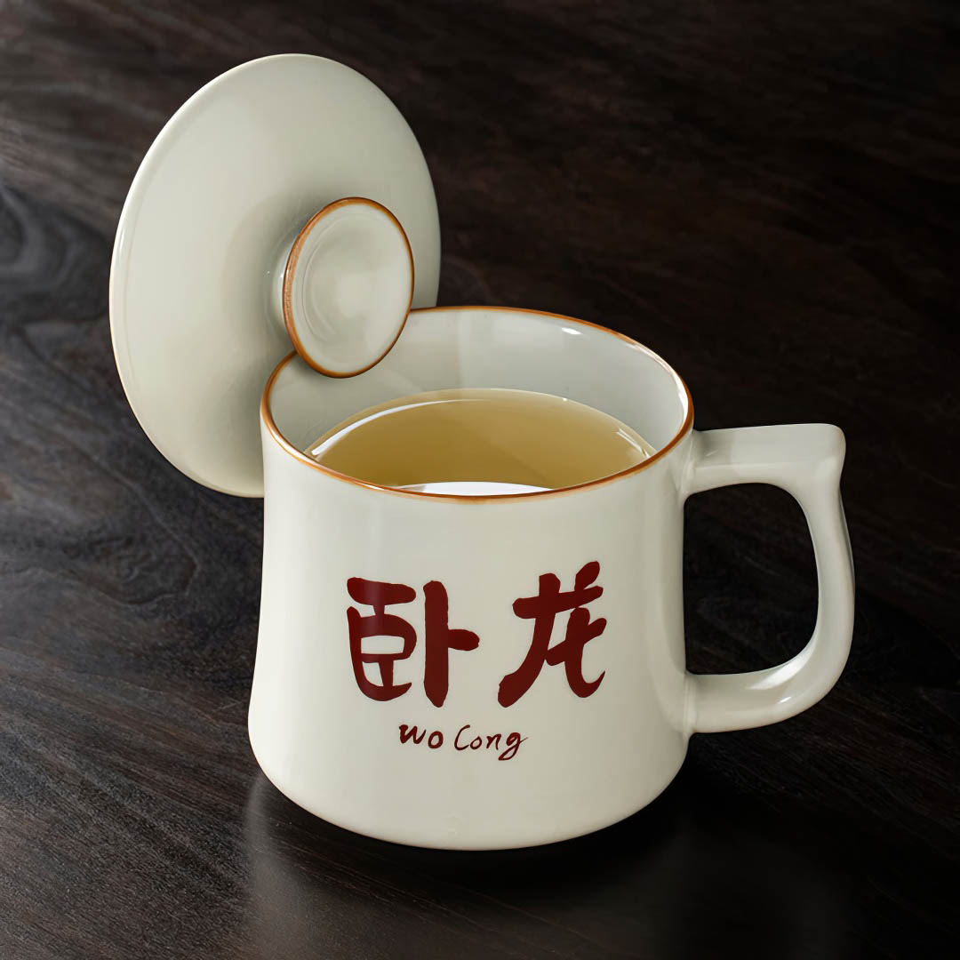 Керамическая чашка с крышечкой. Покрыта глазурью Жу Яо, ее особенность заключается в том, что она покрыта паутинкой мельчайших трещин, которые постепенно заполняются чаем и проявляют уникальный для каждой пиалы рисунок, придавая изделию особый, таинственный налет времени. Толстостенная, тяжелая. Очень удобная ручка. Отличное качество.