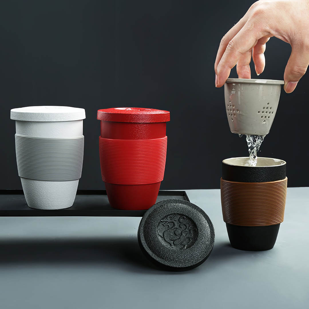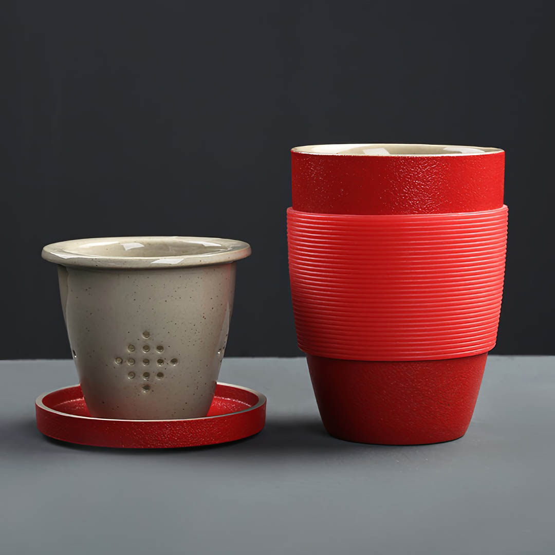 Заварник для чая из керамики с ситом. Внутри покрыта глянцевой глазурью, снаружи матовой. Середина чаши прорезиненная, для комфортного хвата и во избежание обжига пальцев.